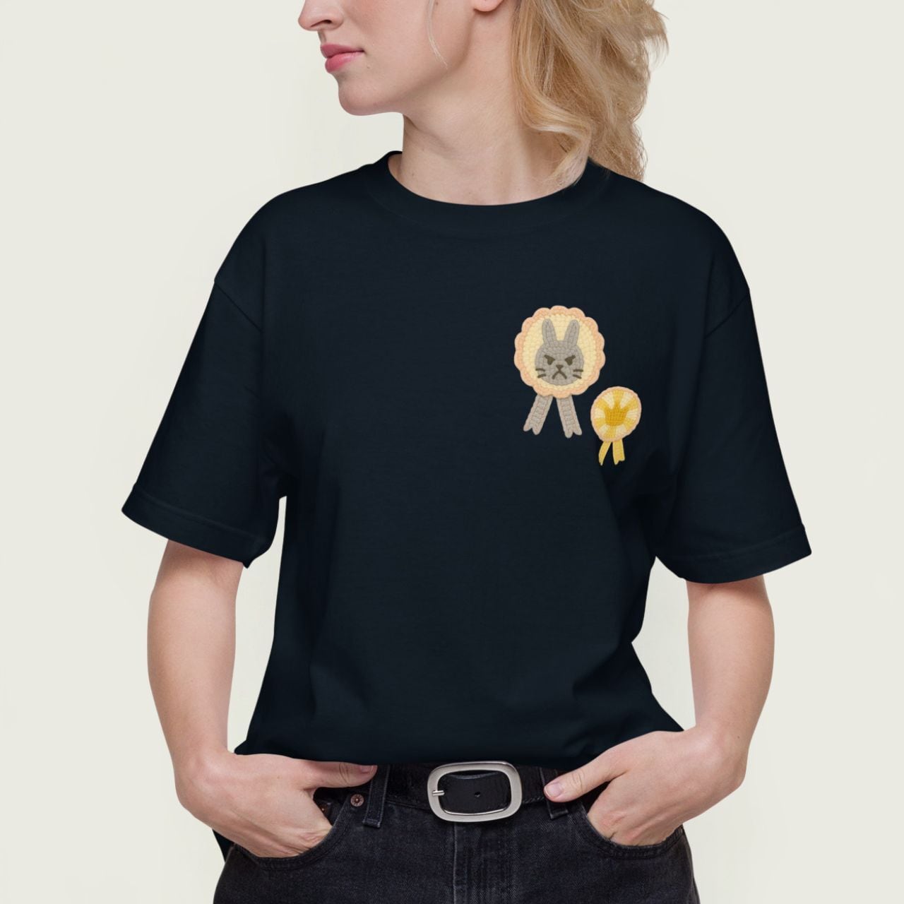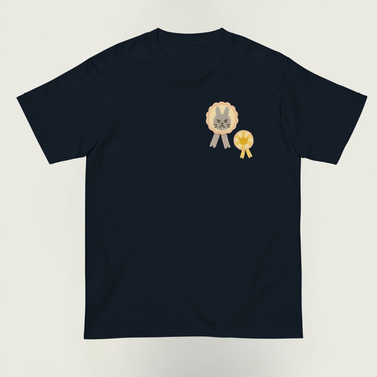 前には不機嫌うさぎの勲章、