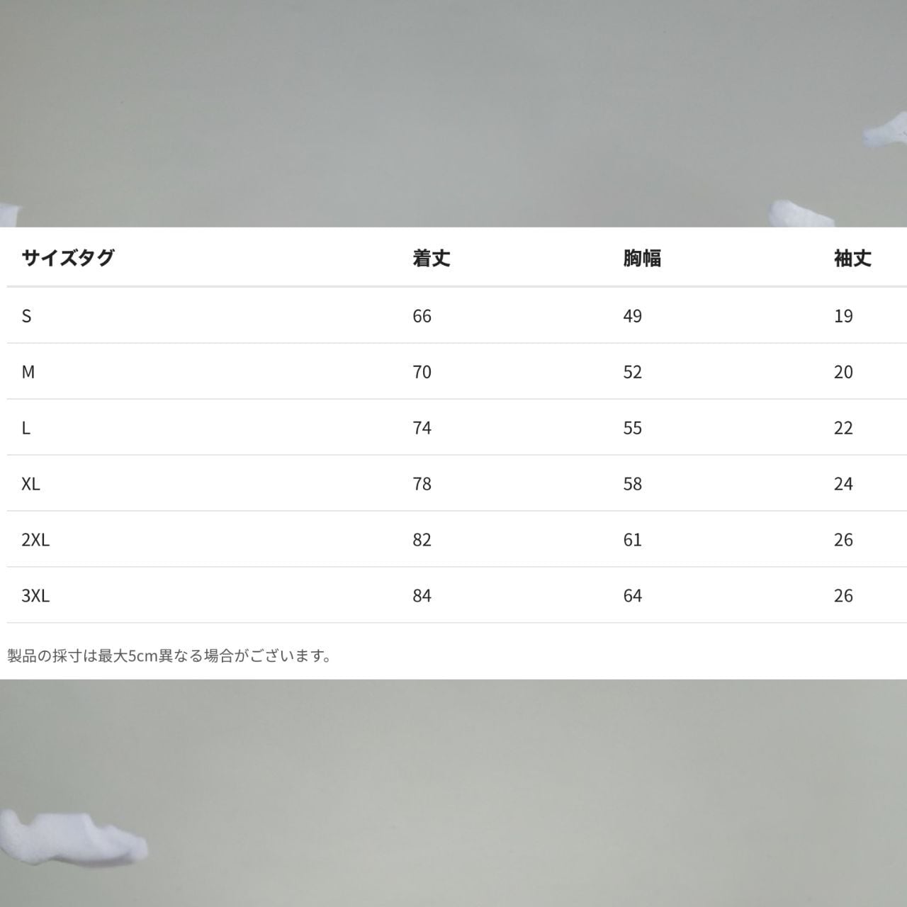 3XL 身幅:64cm 着丈 : 84cm 袖丈:26cm