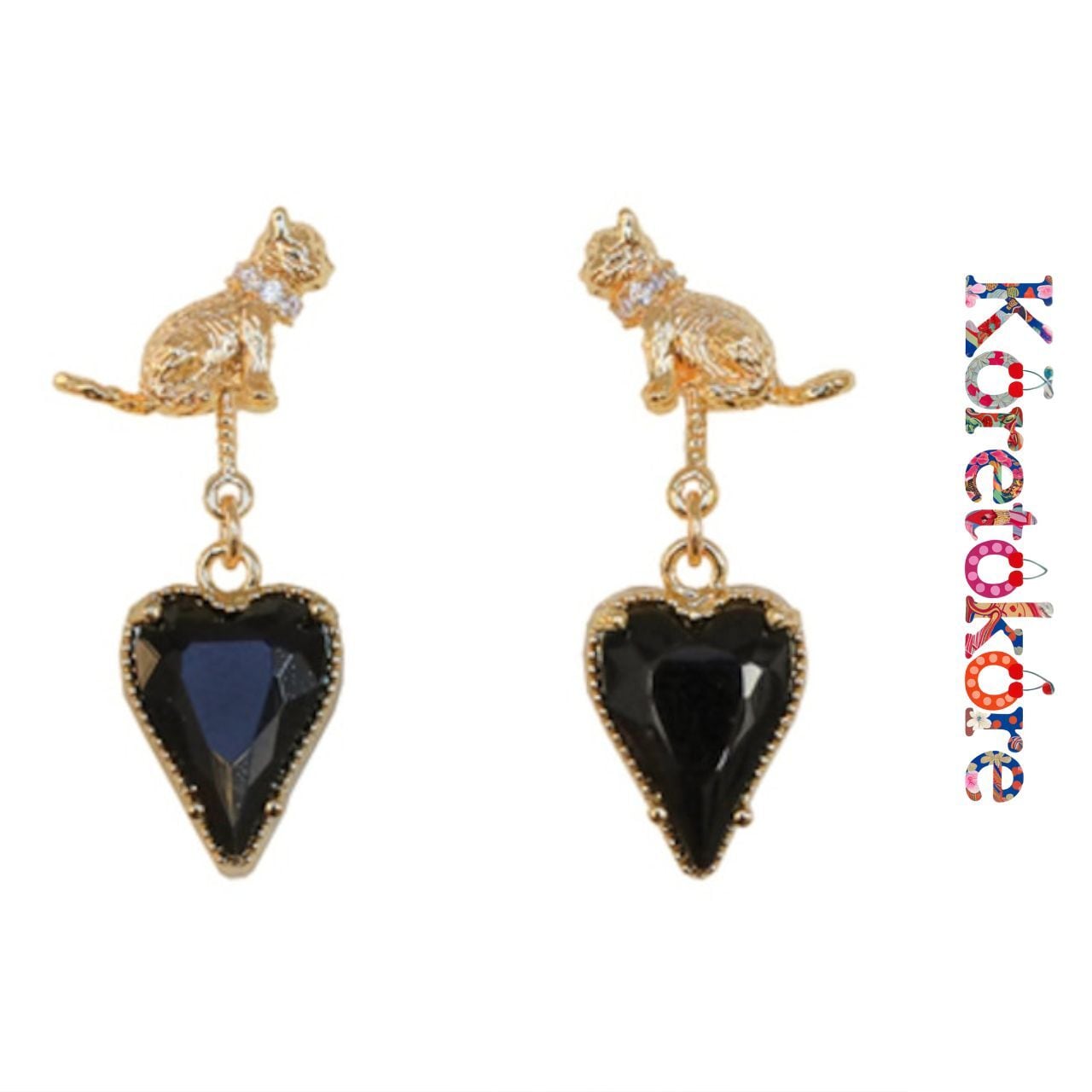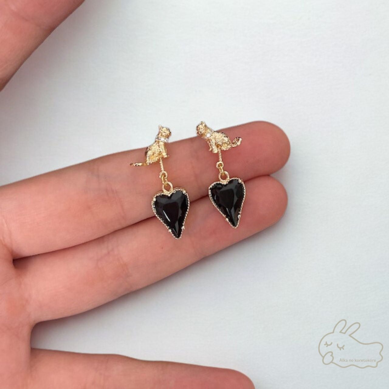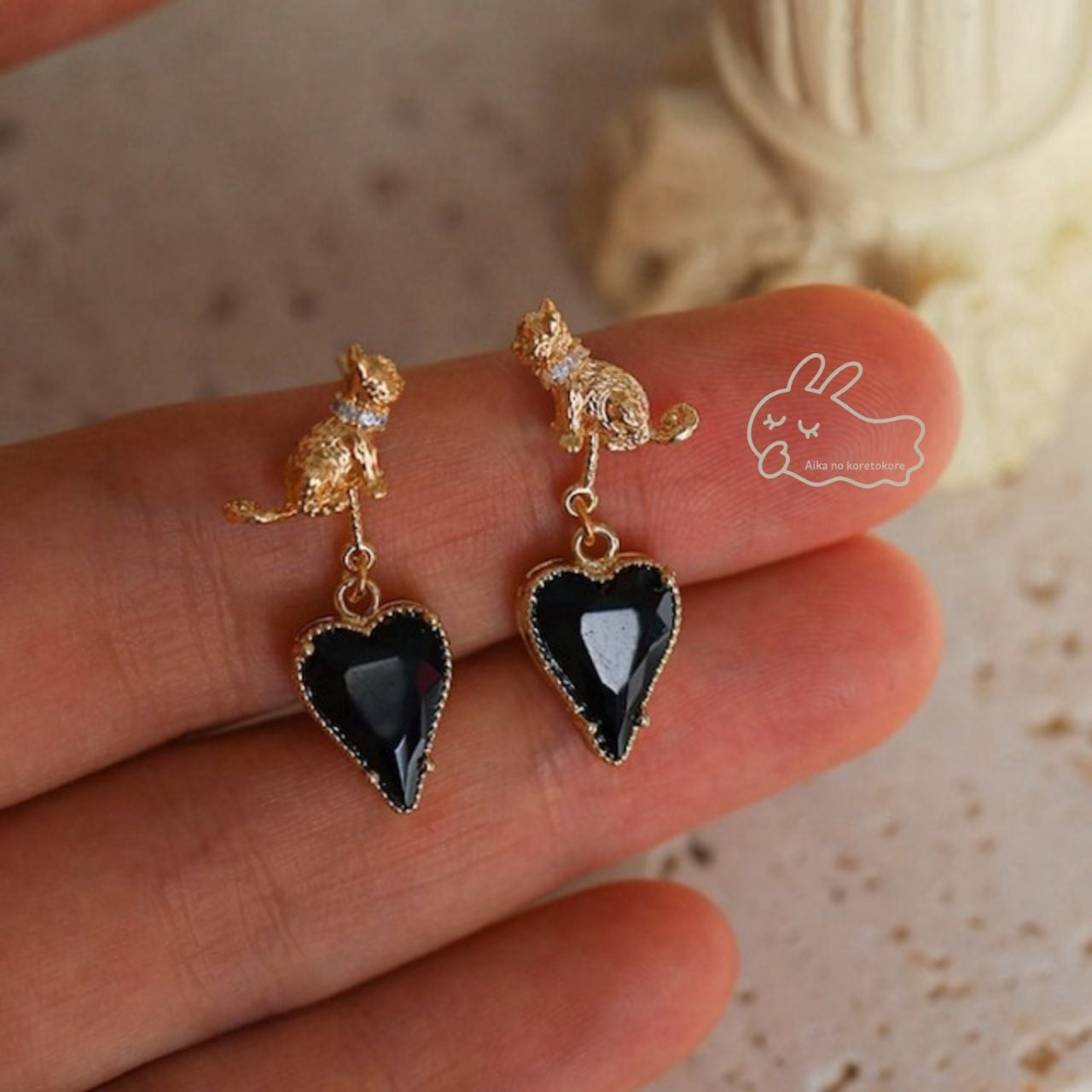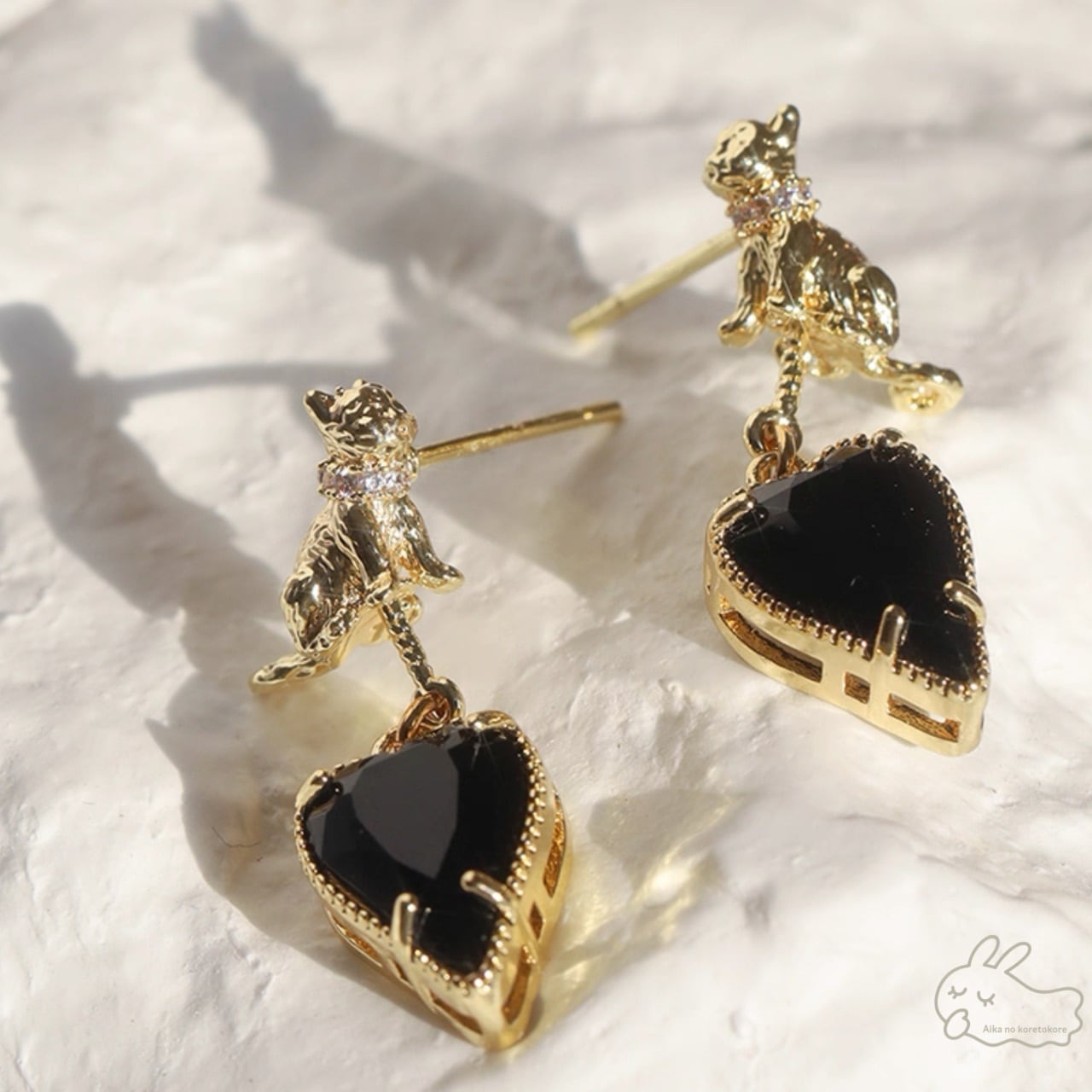 艶やかなブラックのハートストーンが揺れるたびにきらめき、