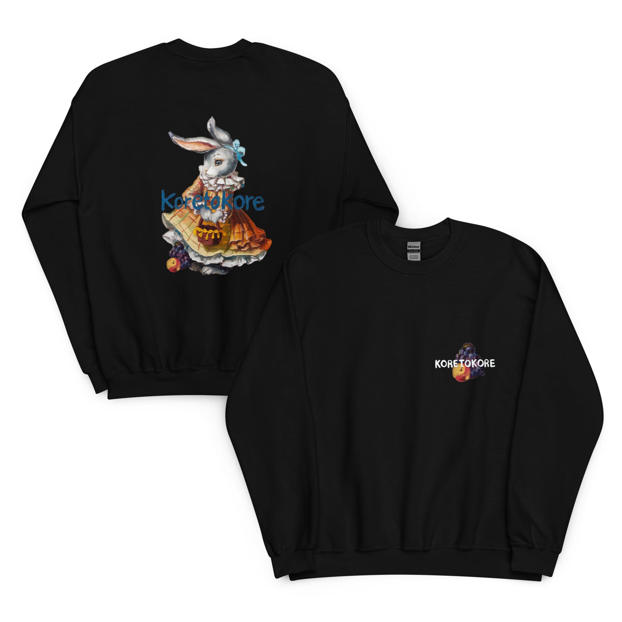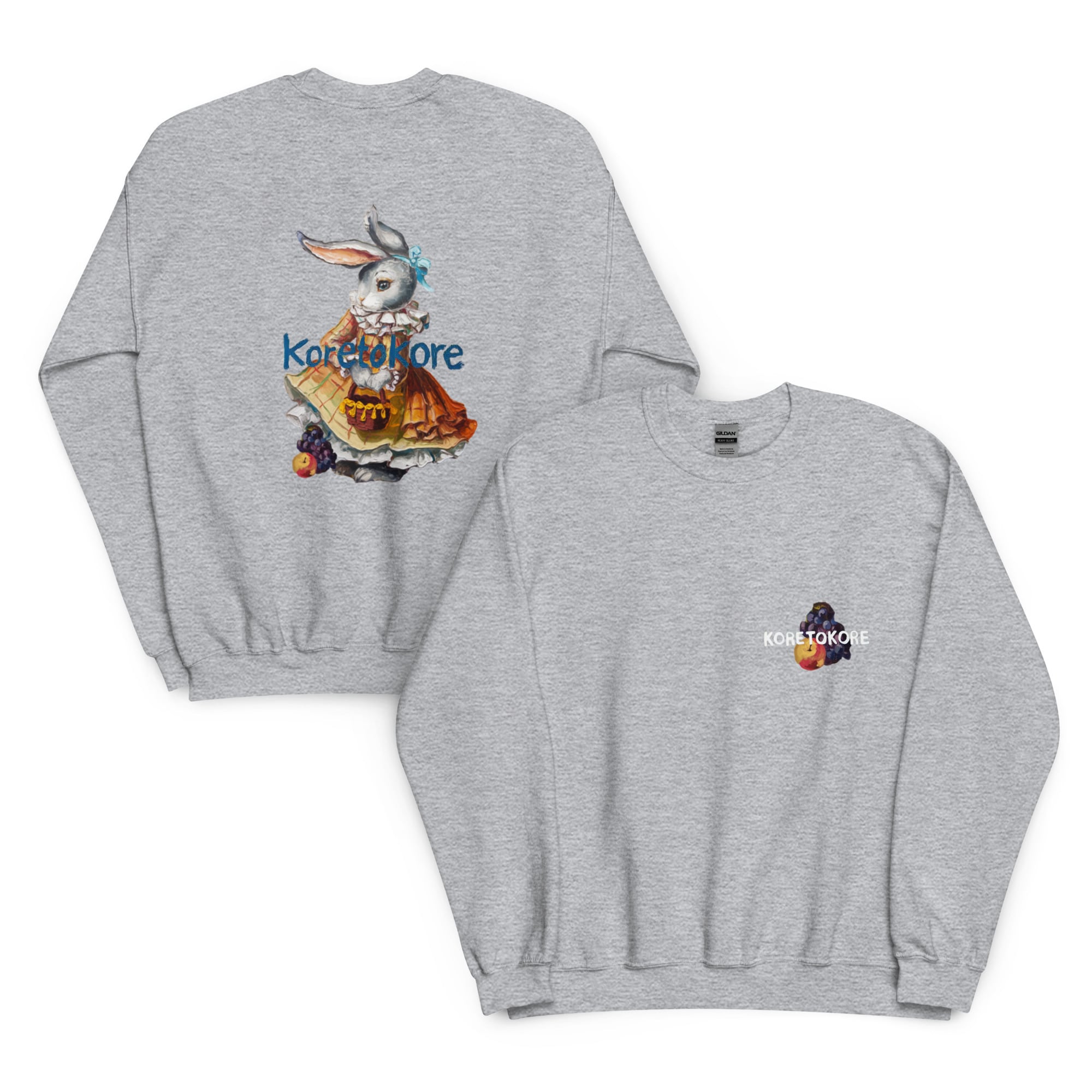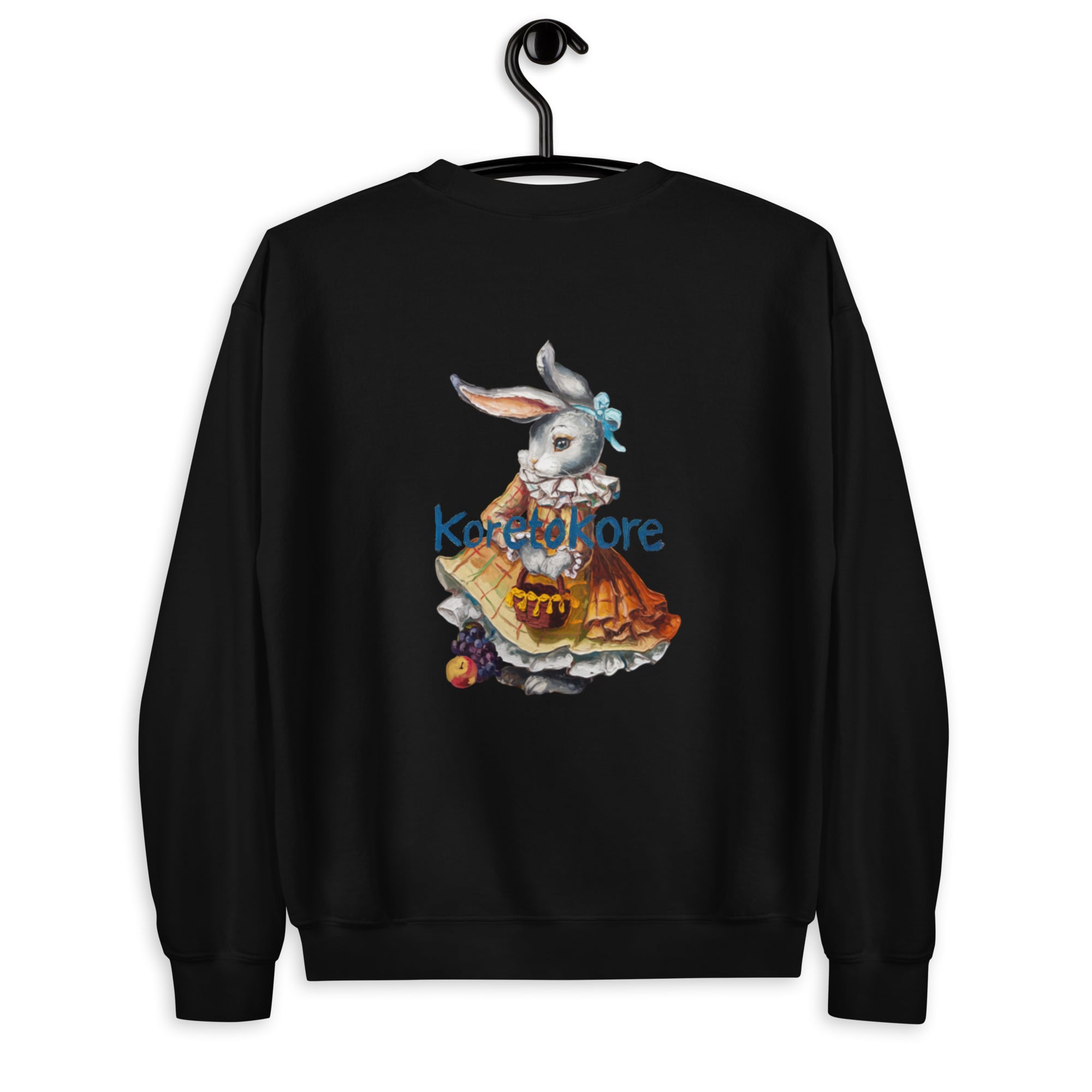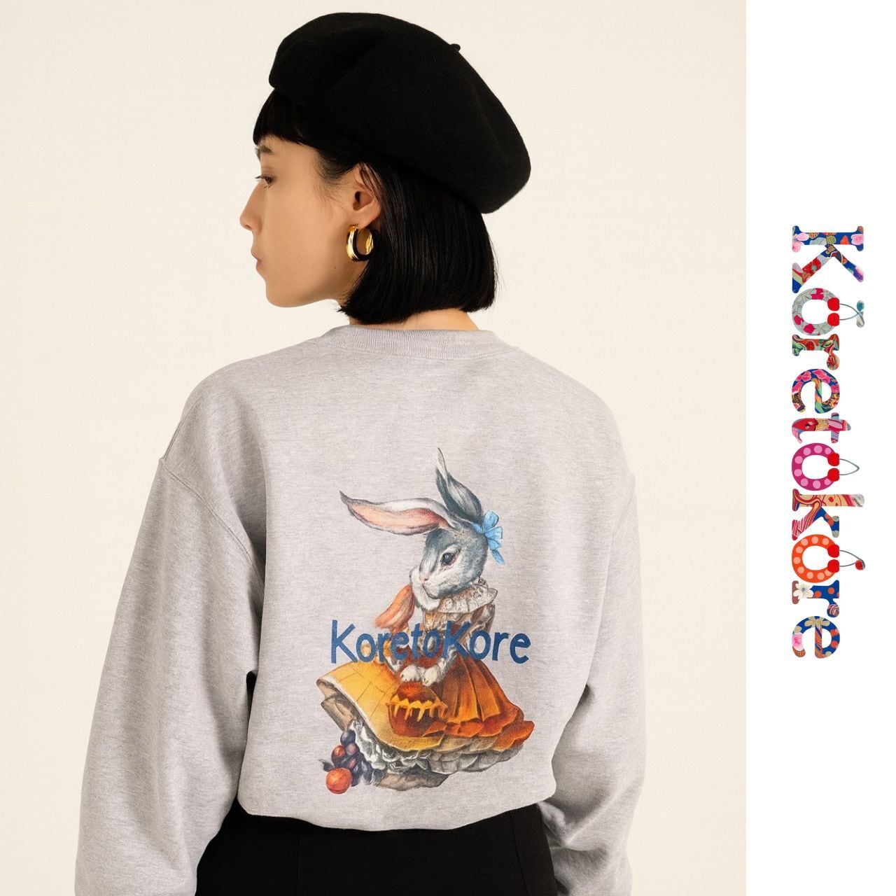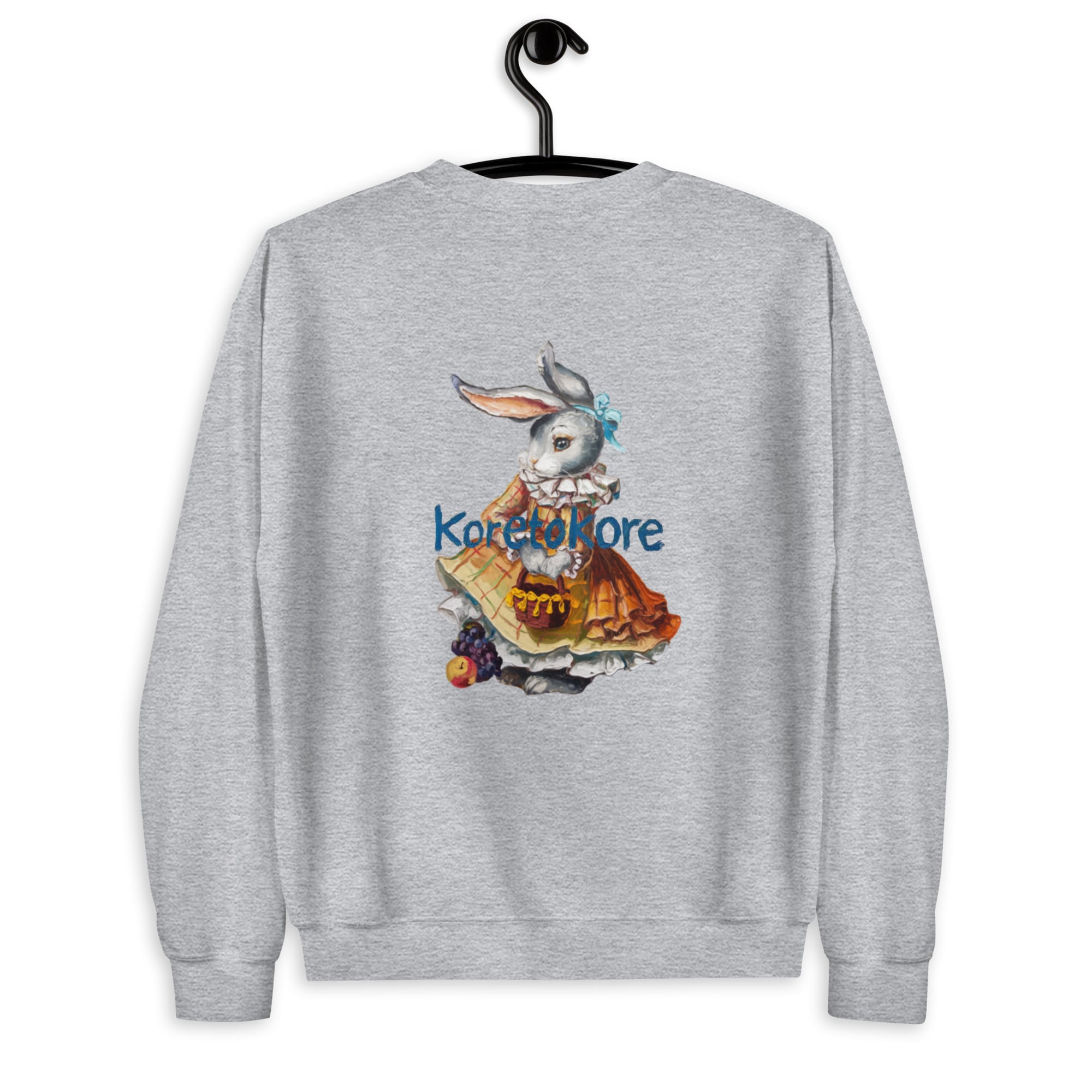 絵本の一場面のような、ヴィンテージタッチのうさぎが描かれたスウェット。