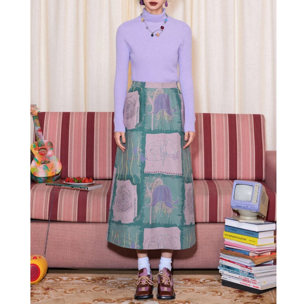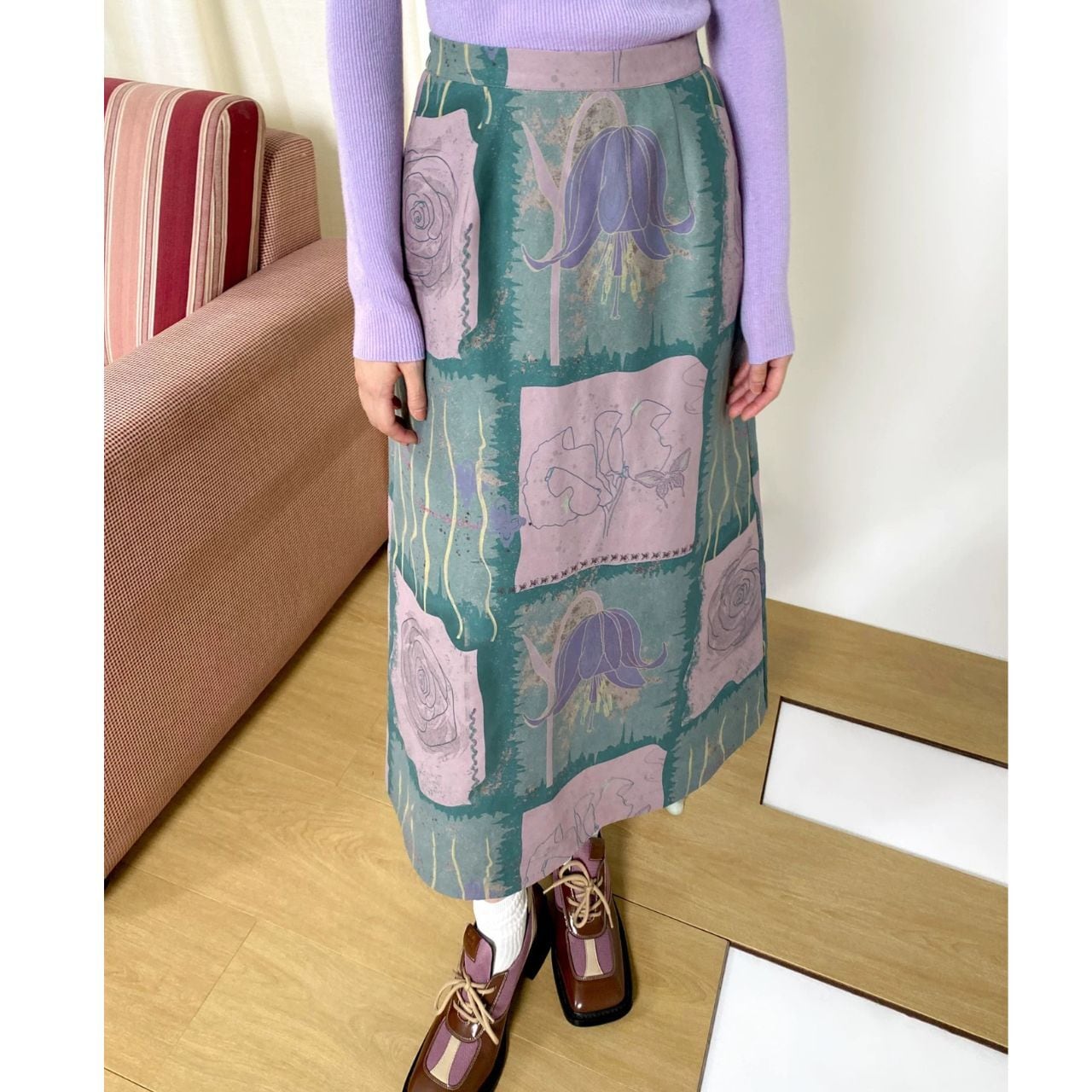 大胆に描かれたフラワーモチーフが印象的なAラインスカート。