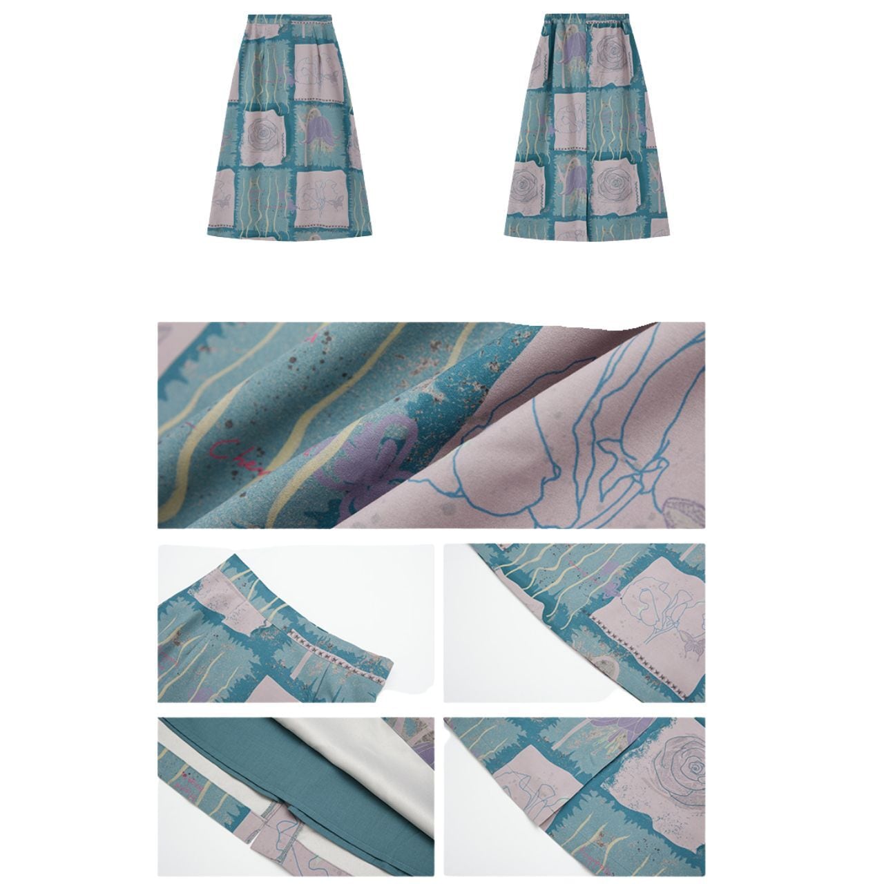Floral Art Print A-Line Skirt A1033