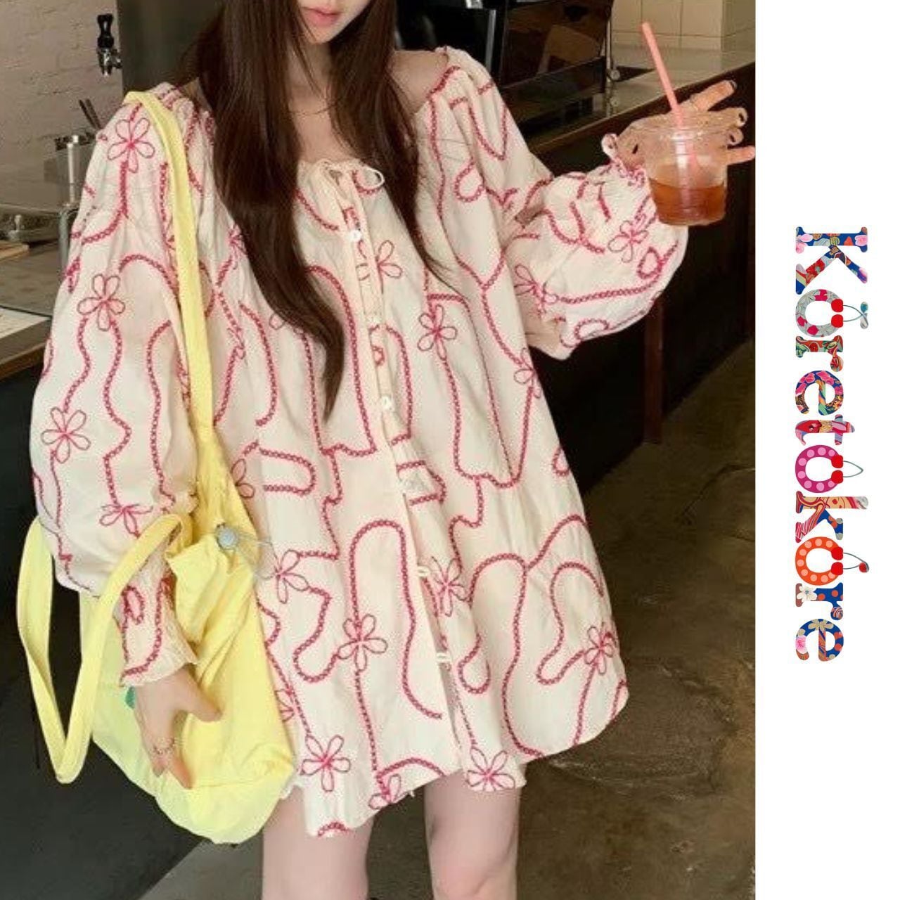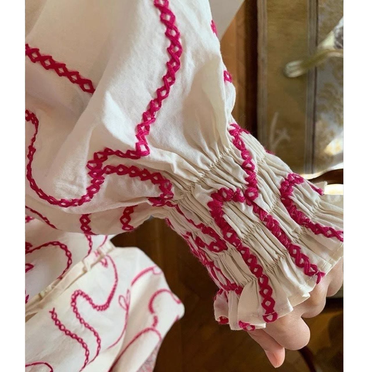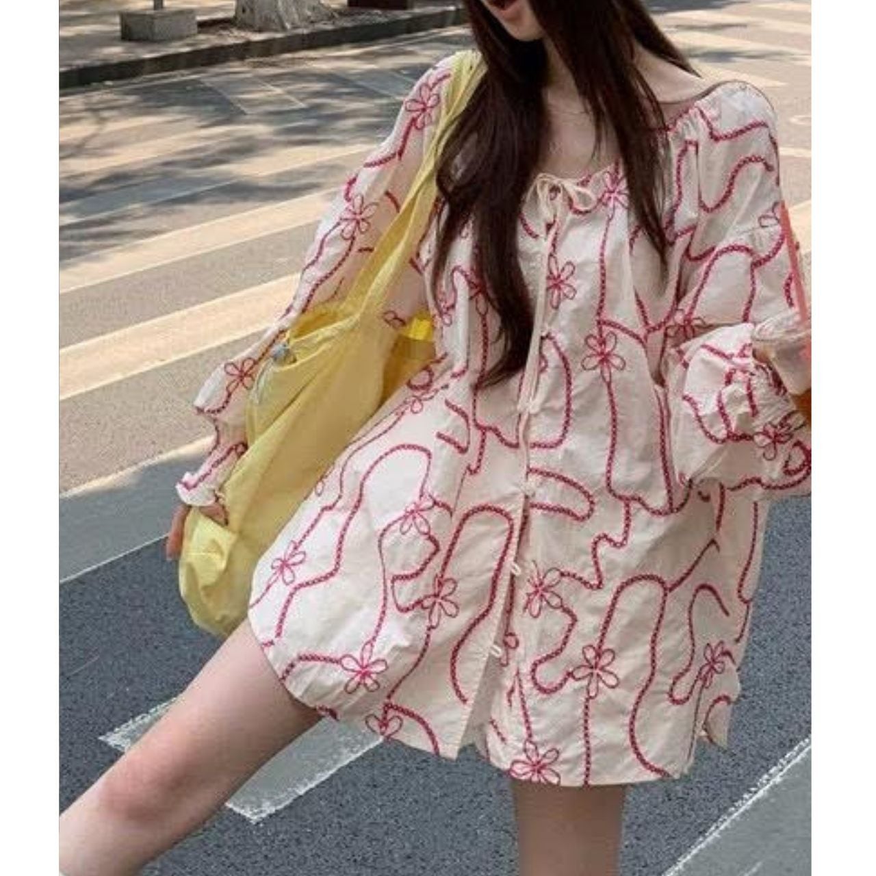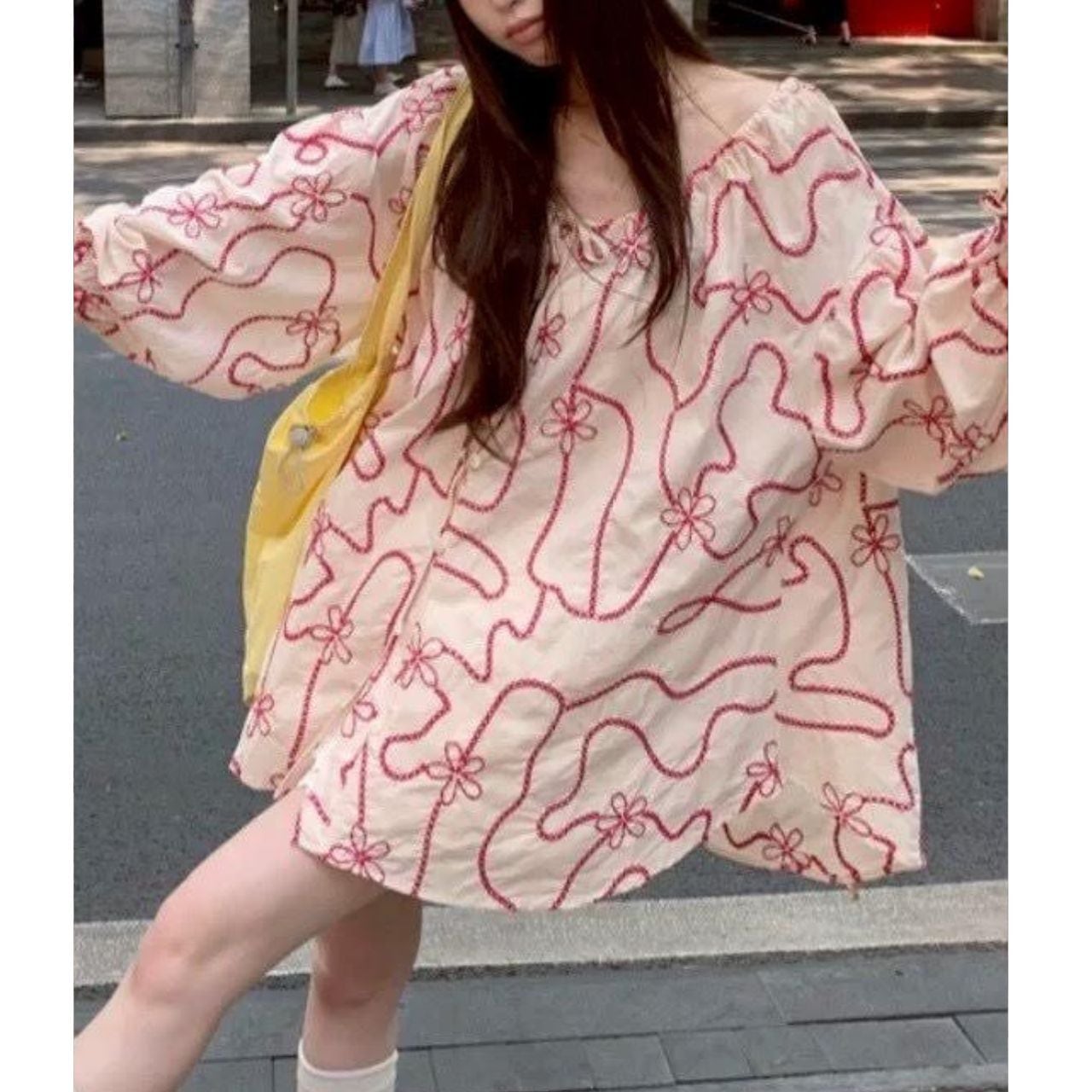 ゆるっとしたシルエットに花柄ステッチをあしらった、