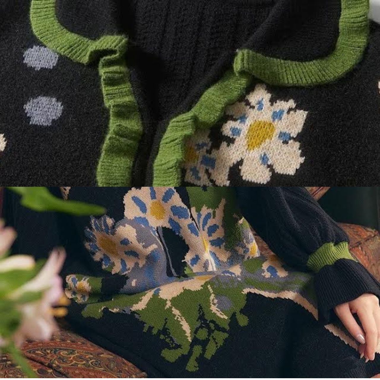 袖口の花苞デザインが、