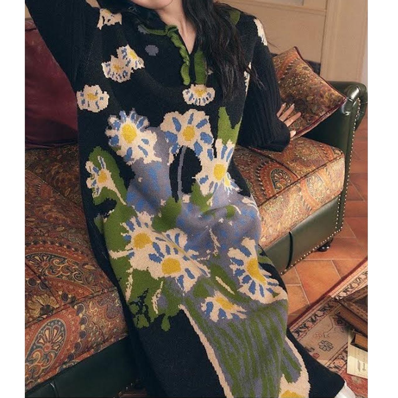 Winter Daisy Knit Long Dress A1045