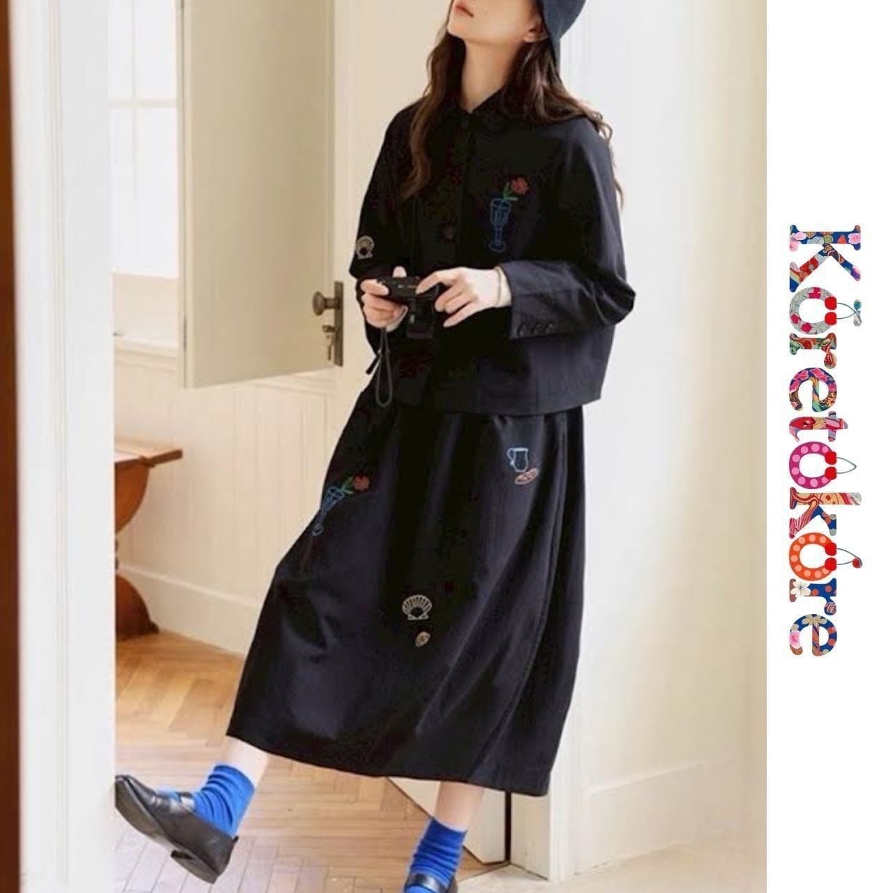 • スケッチ風刺繍でほんのりレトロムード