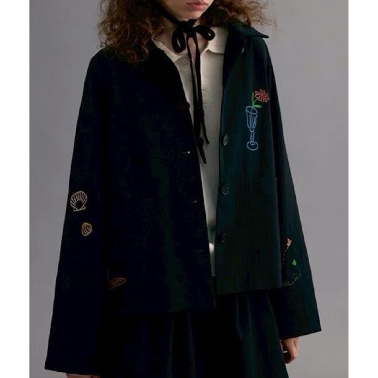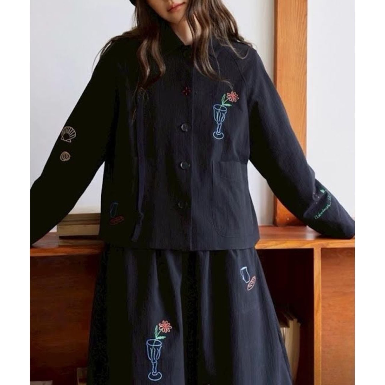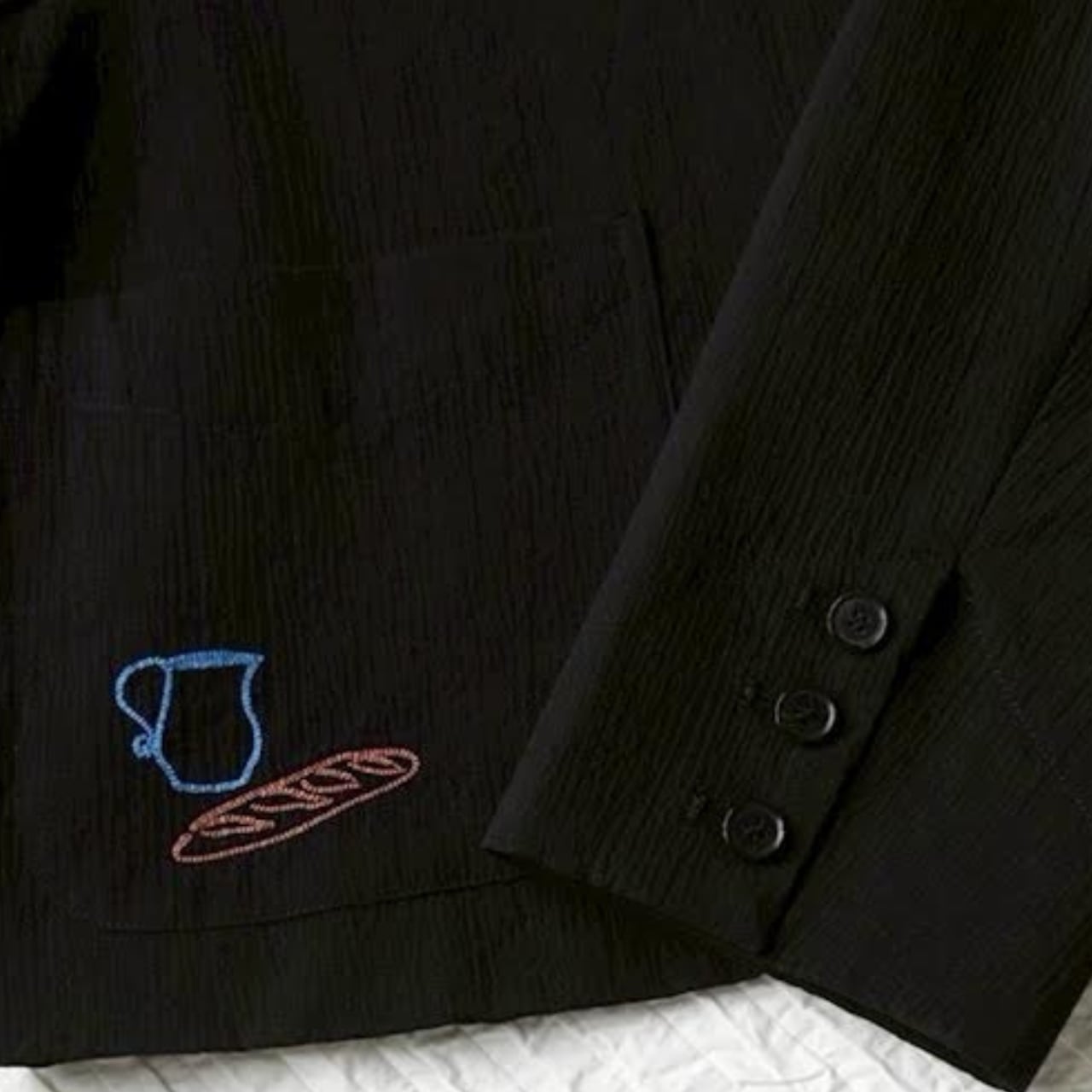 遊び心あるスケッチ風刺繍を散りばめた