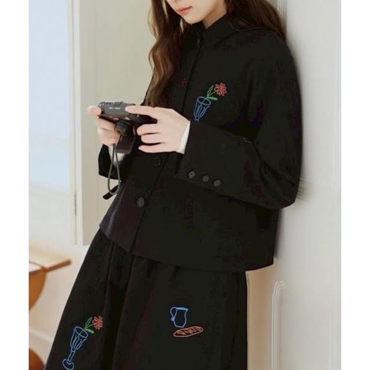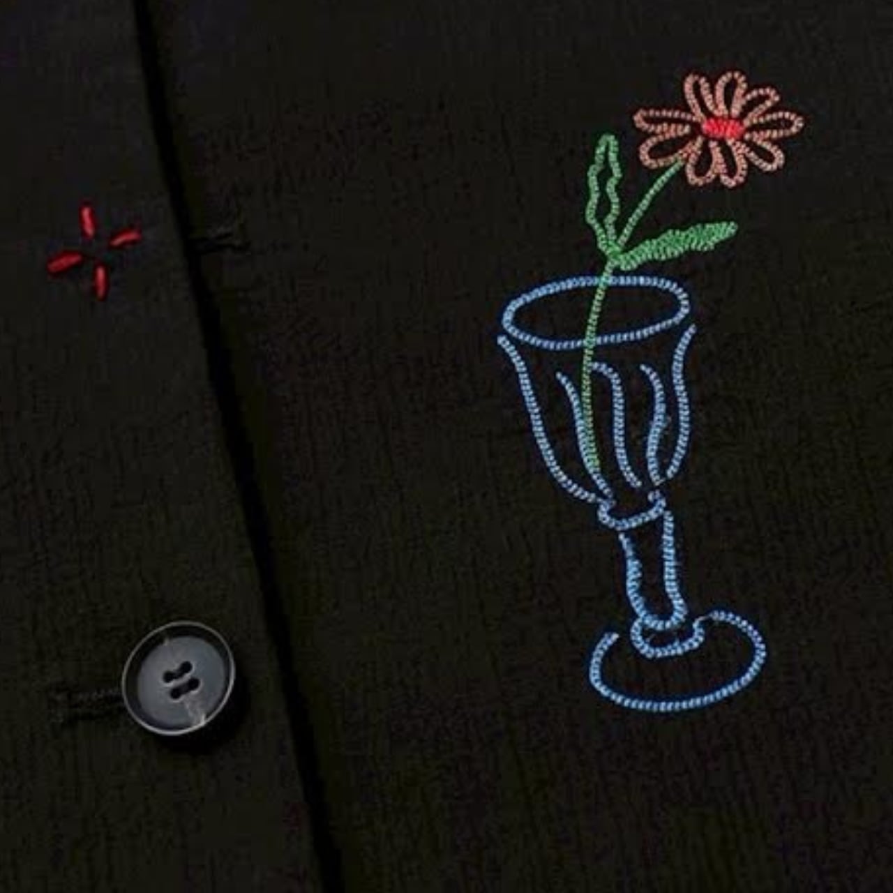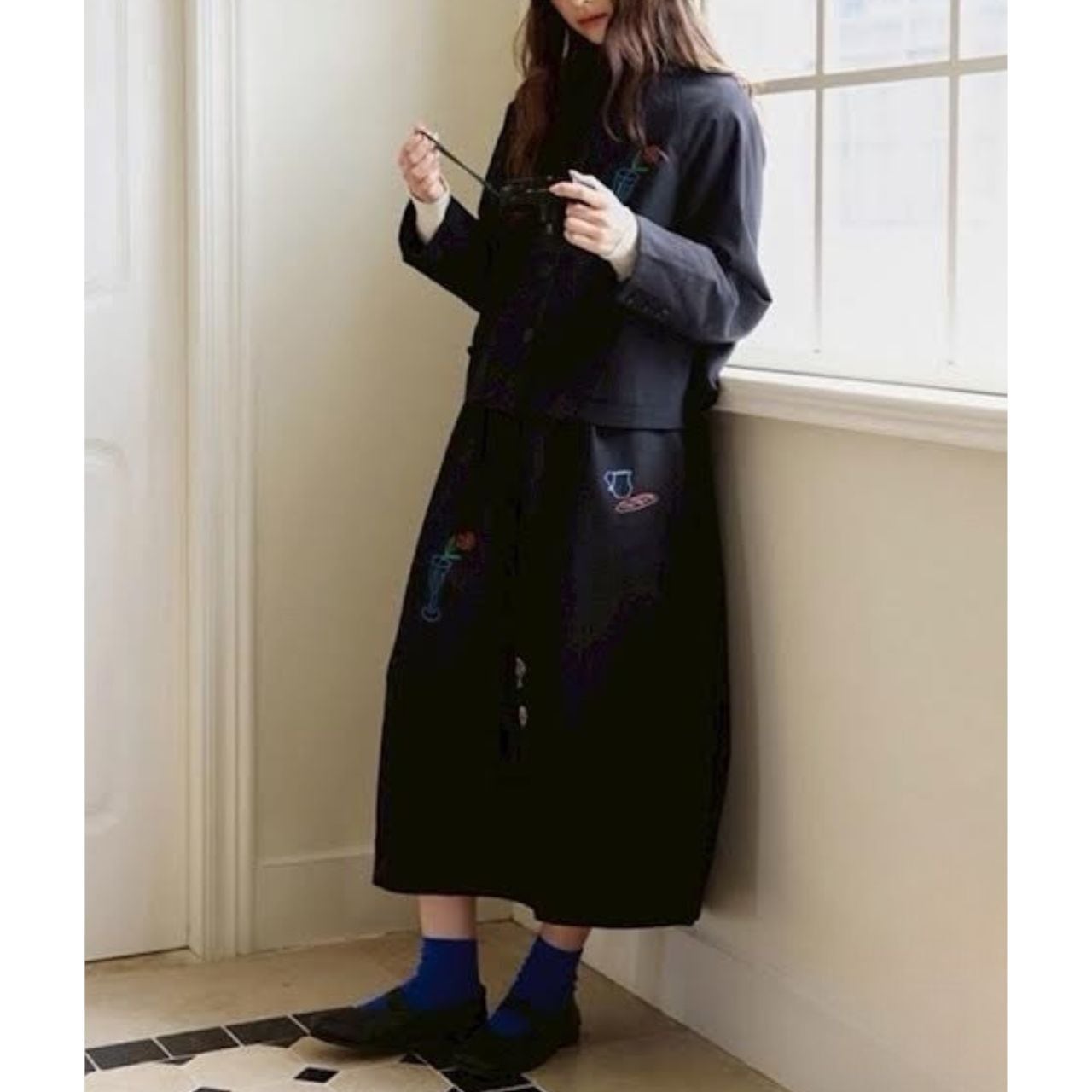 遊び心あるスケッチ風刺繍を散りばめた
