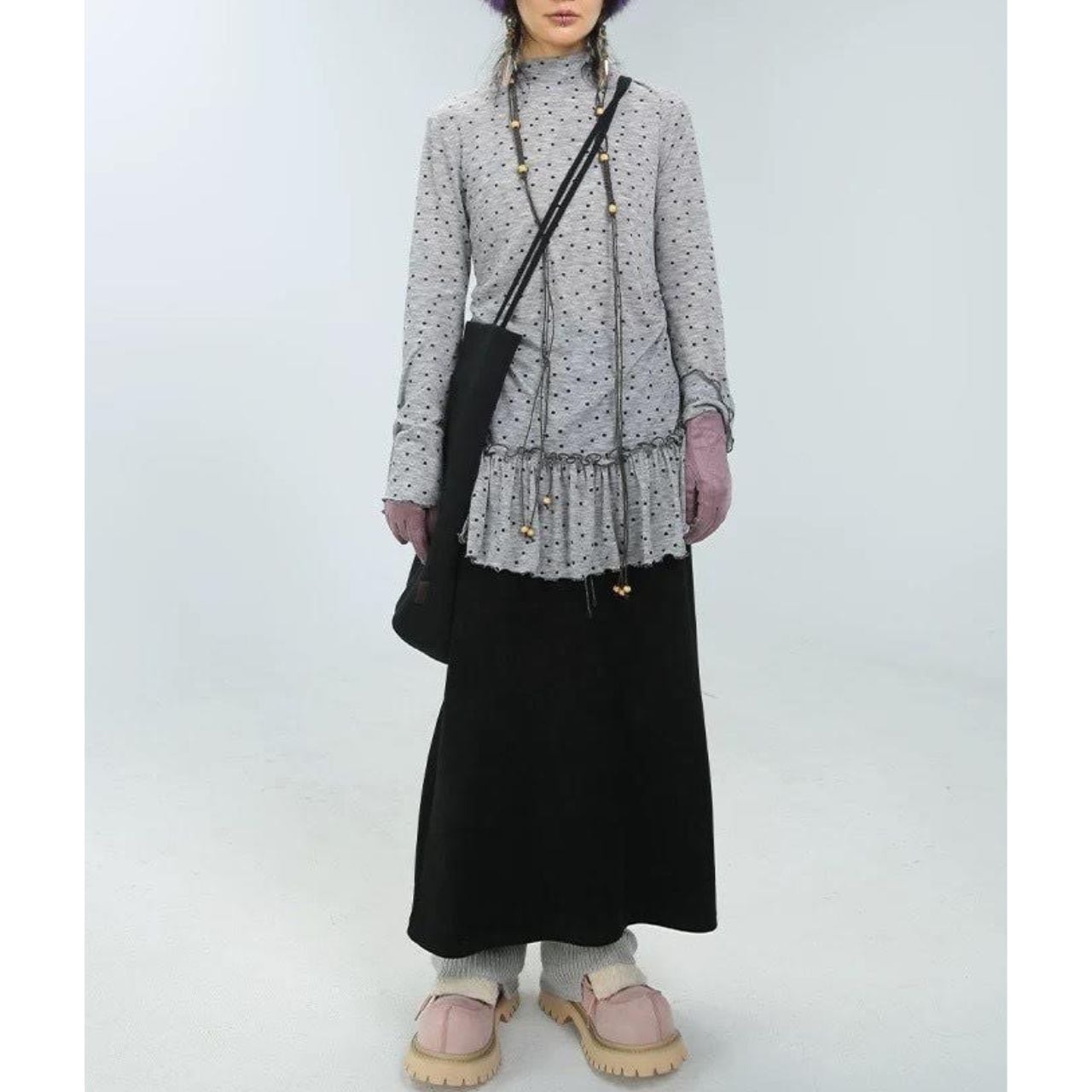 首元と袖口のメロウ加工が、さりげない甘さをプラス。