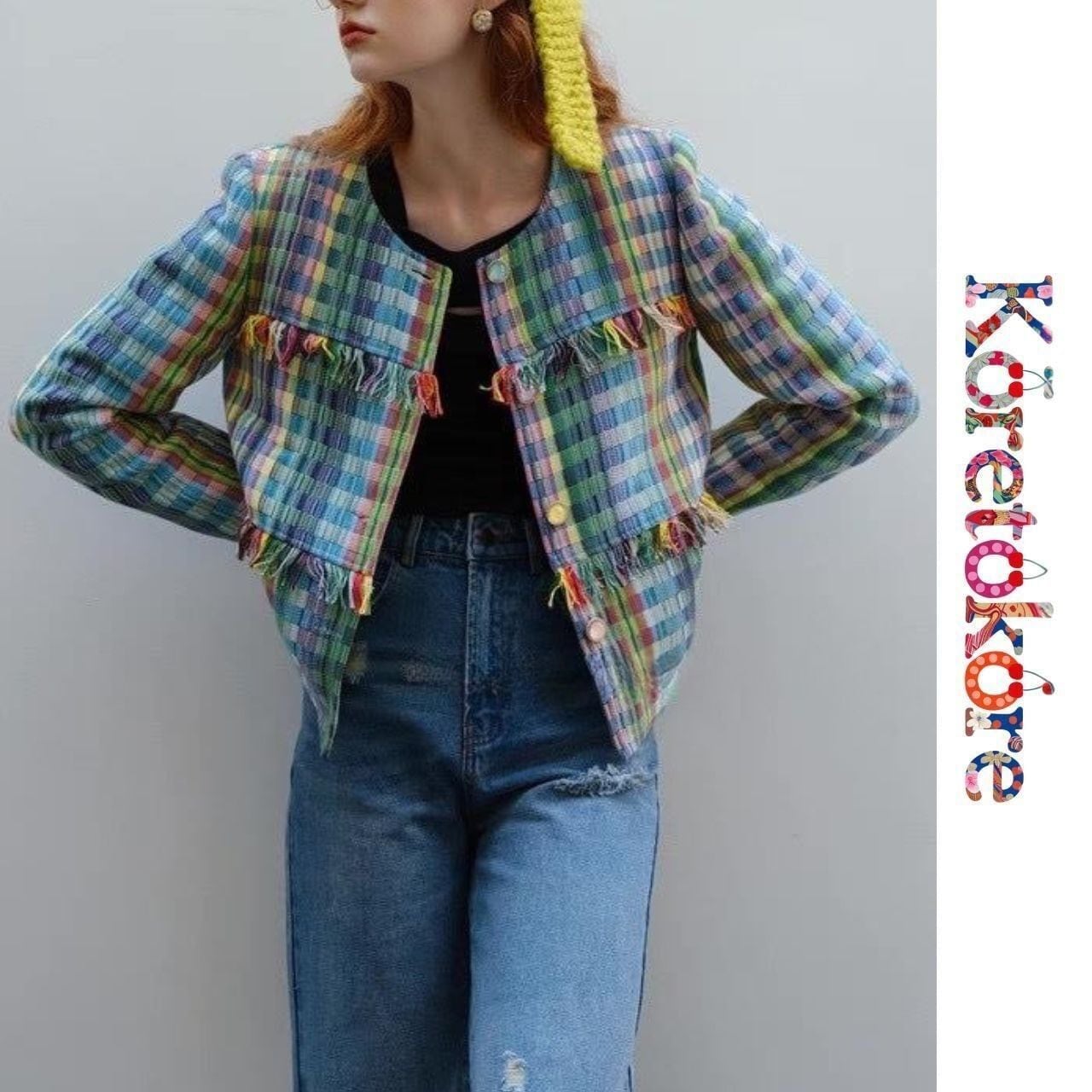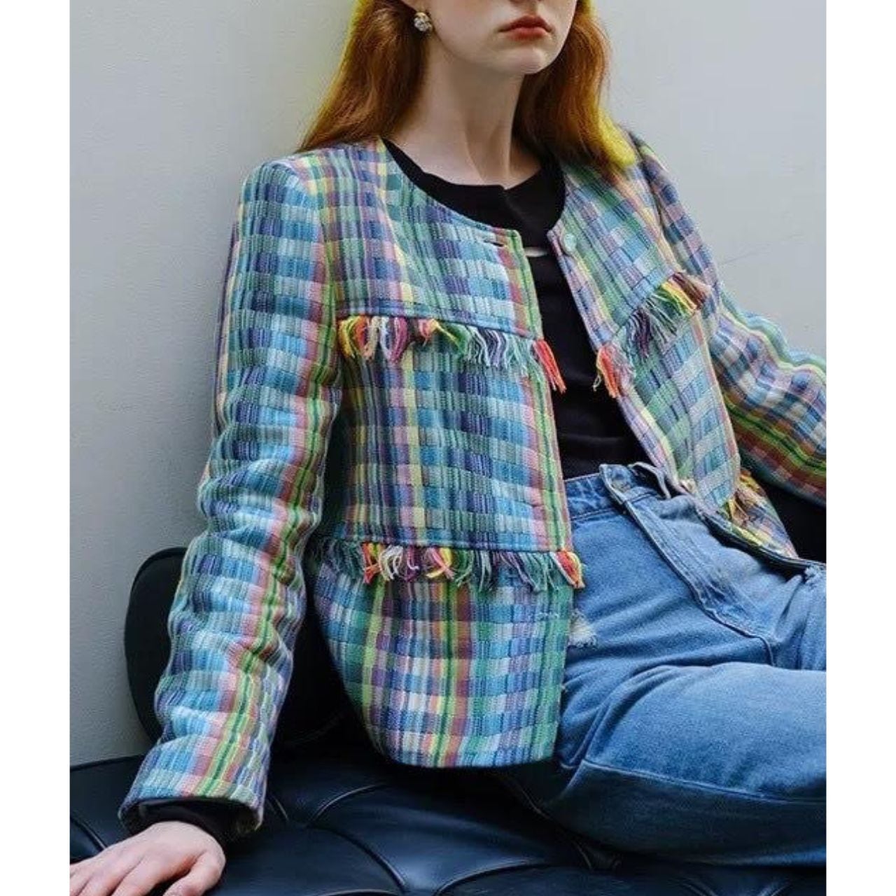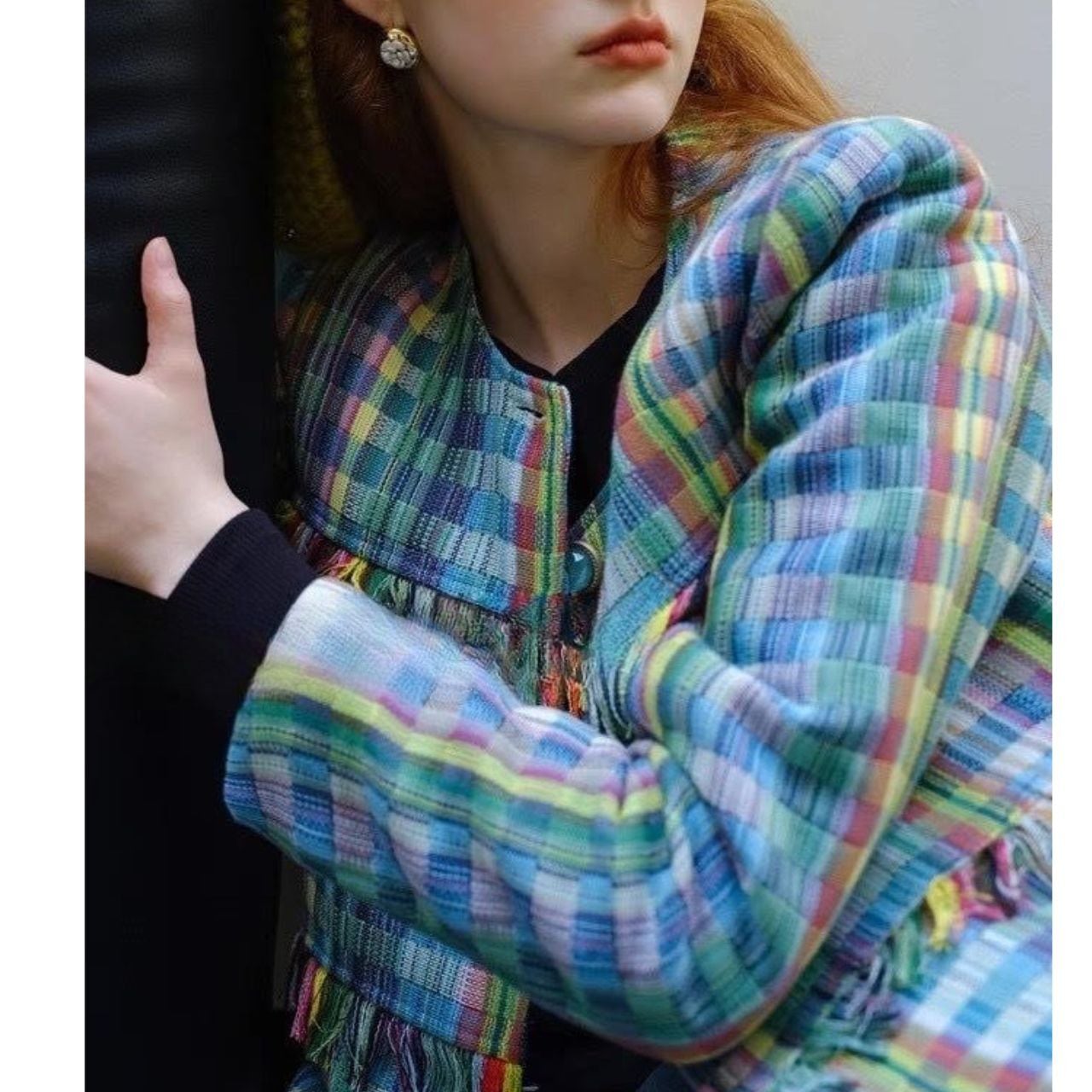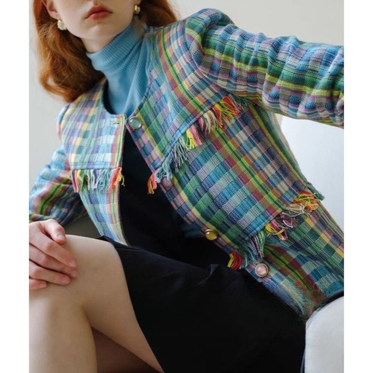 フリンジラインやマルチカラーの織り柄がアクセントになり、