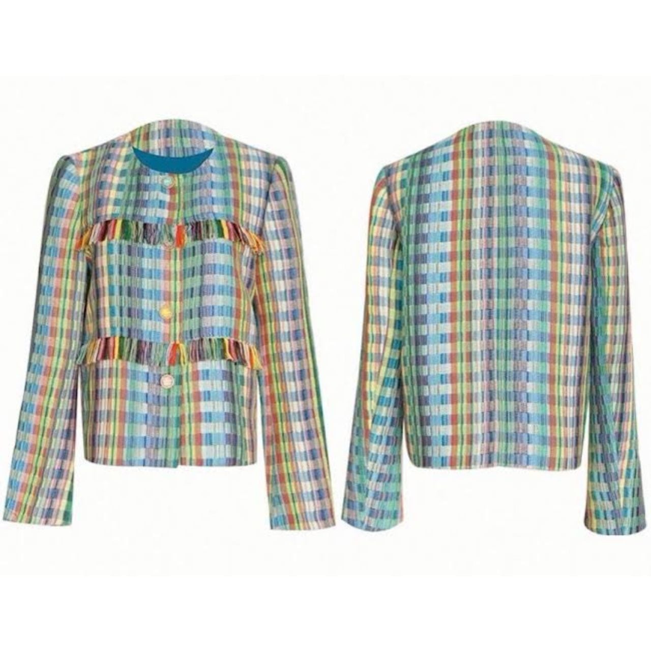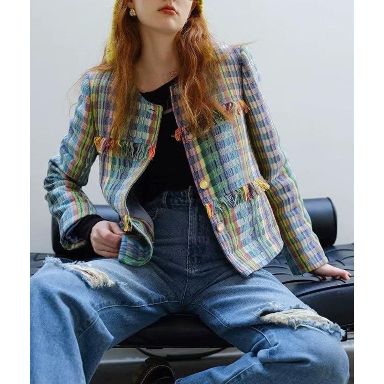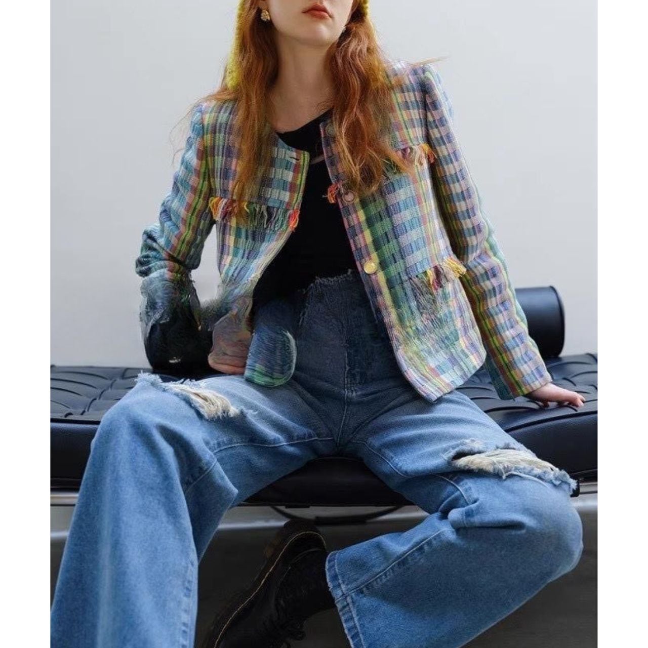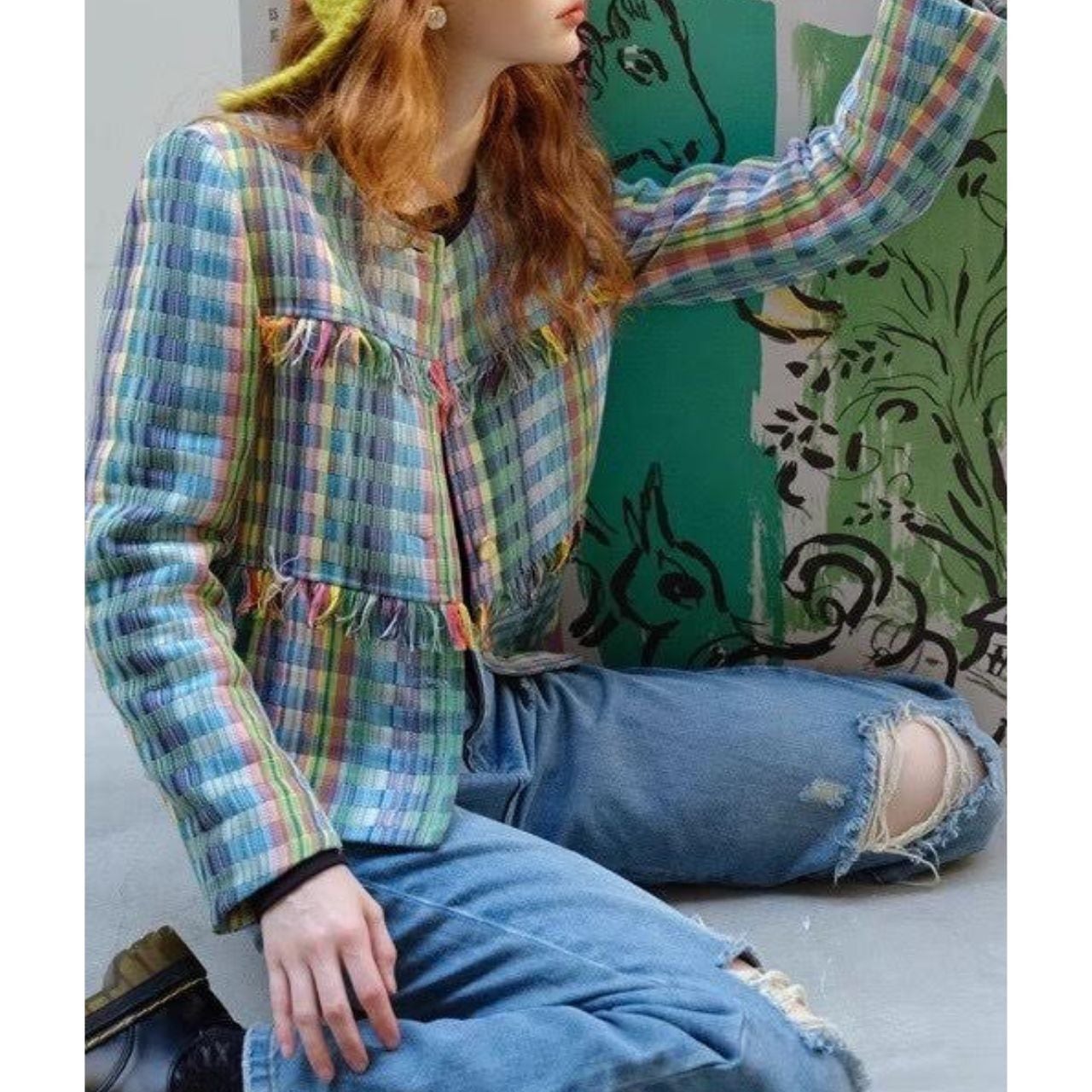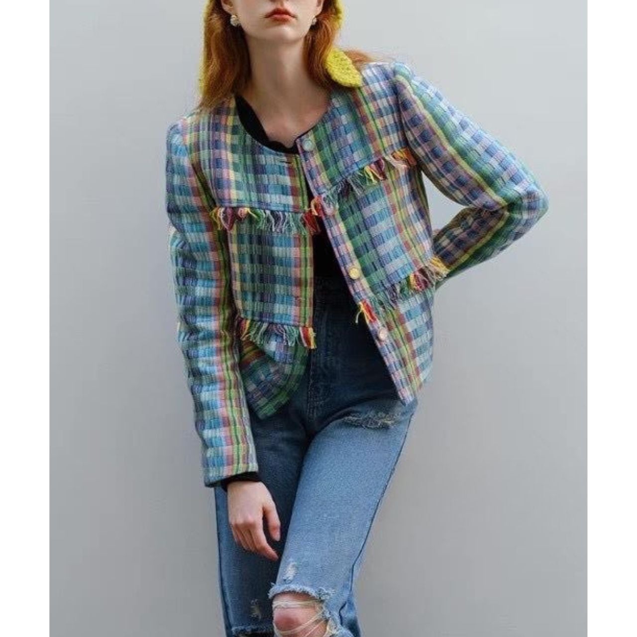 フリンジラインやマルチカラーの織り柄がアクセントになり、