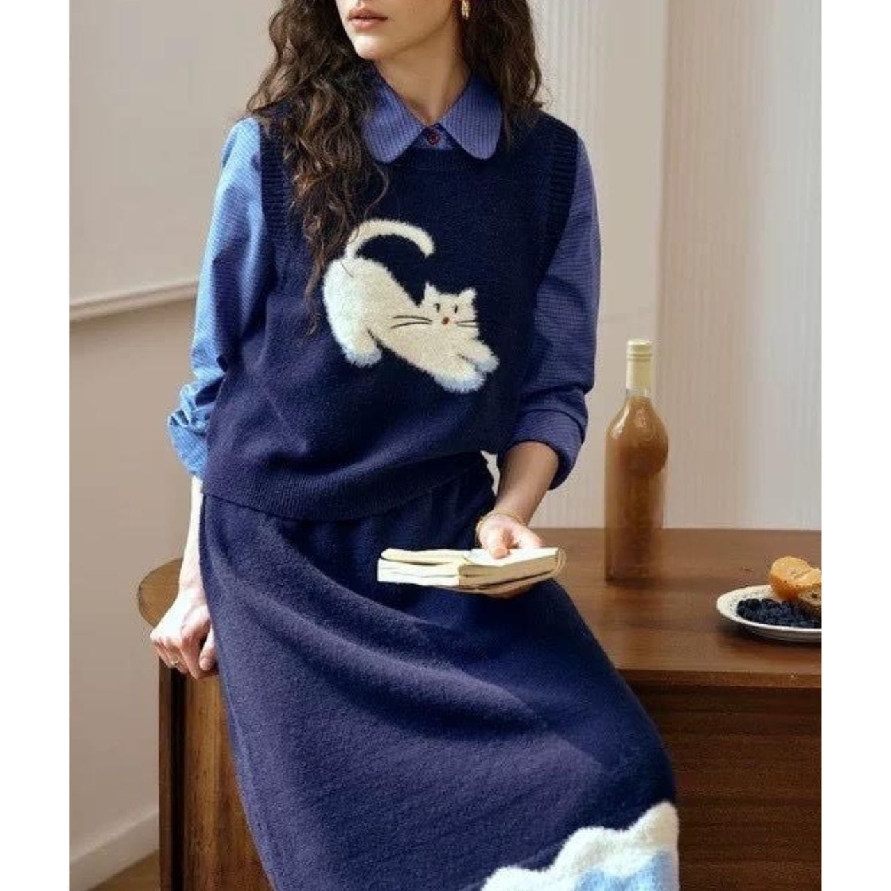 Chat Blanc Knit Setup(Tops & Skirt) A1060