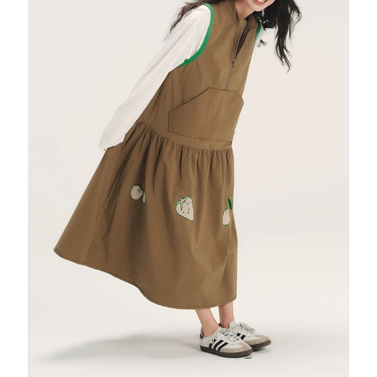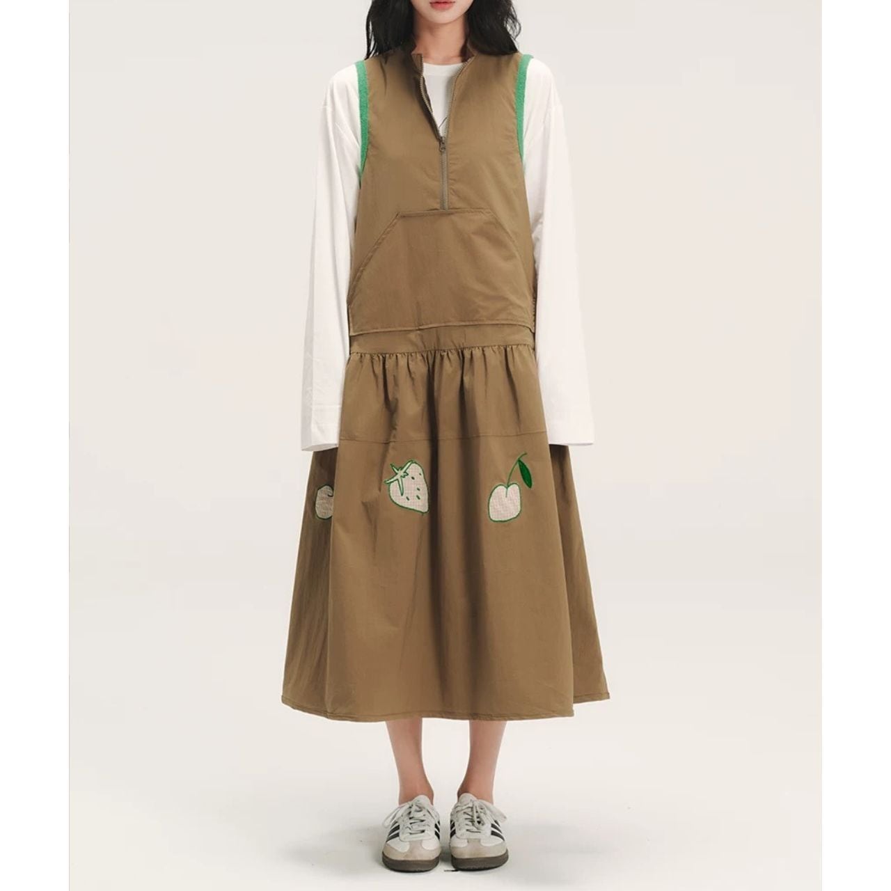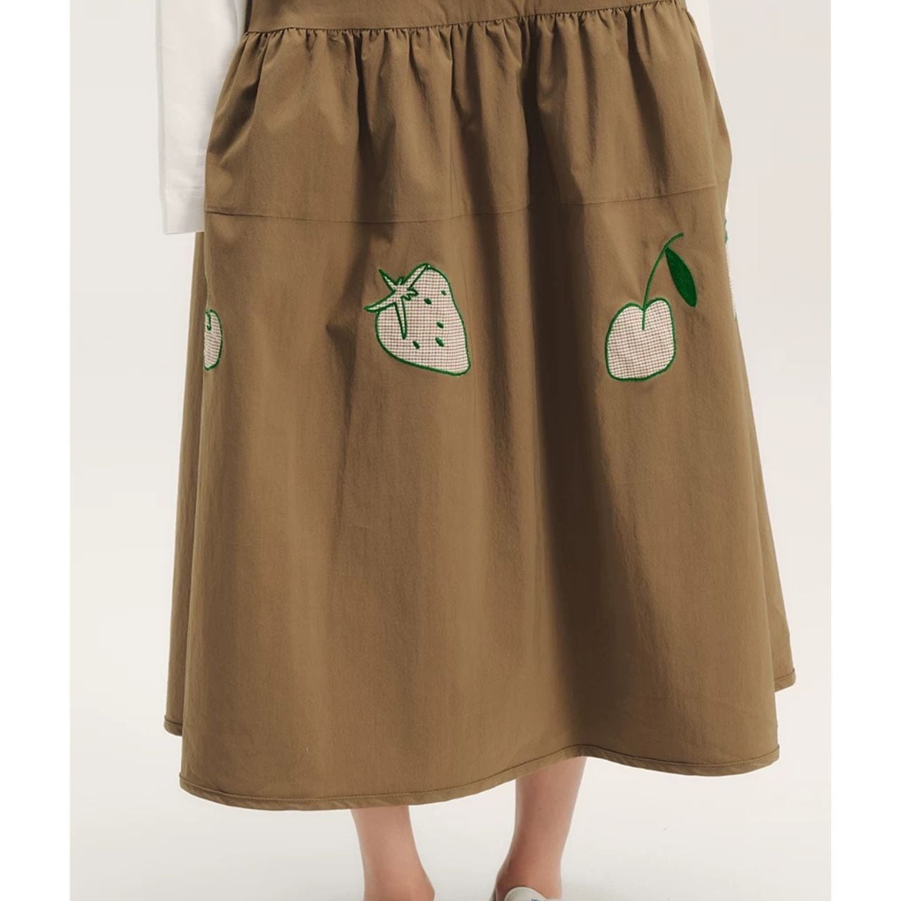 手描き風のフルーツ刺繍をあしらったロングワンピース。