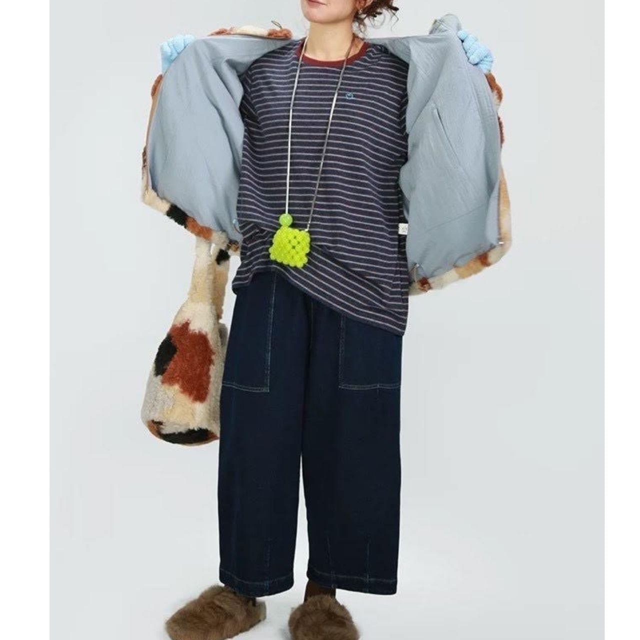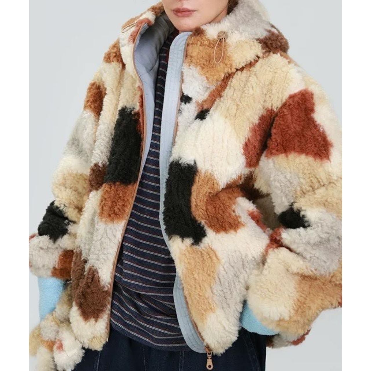 ボリューム感たっぷりのフェイクボア素材で、
