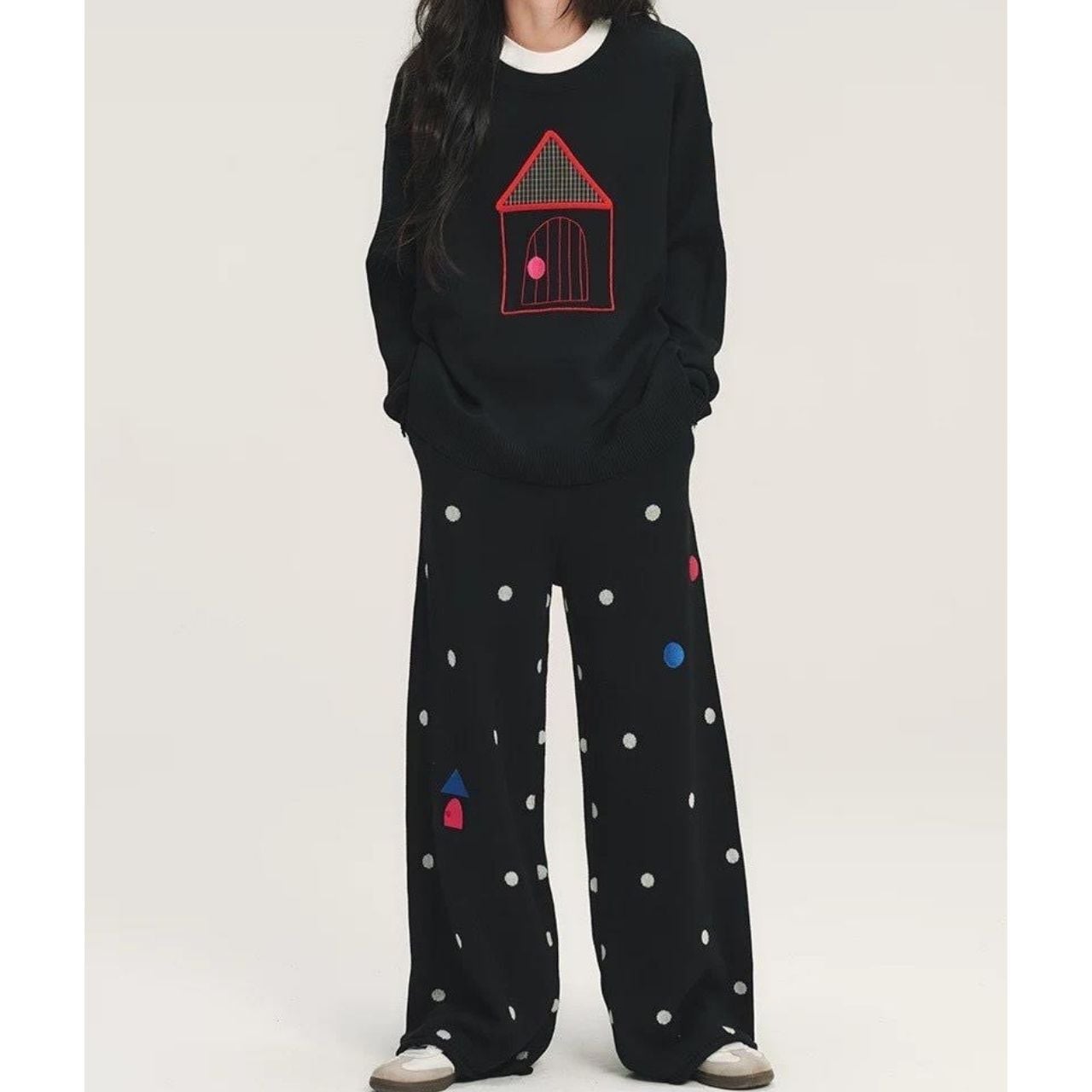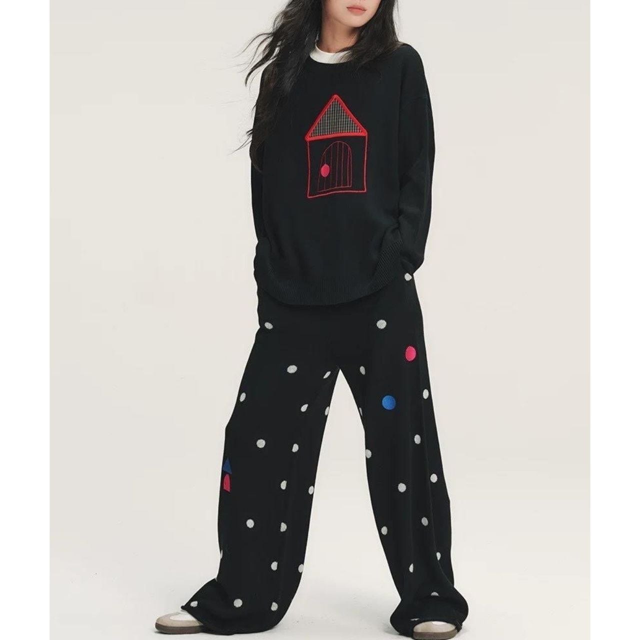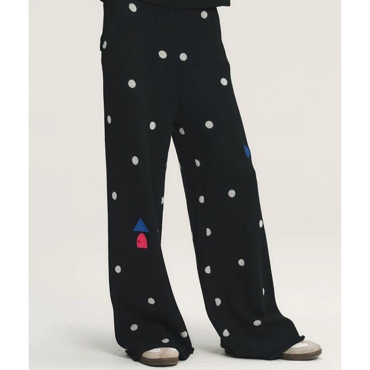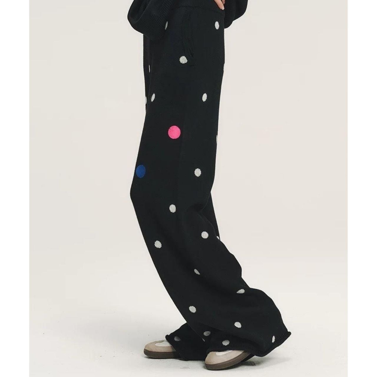 柔らかなニット素材にランダムなドット柄をあしらった、