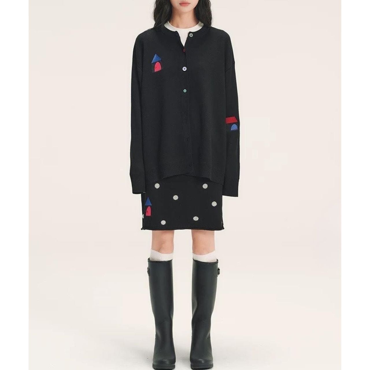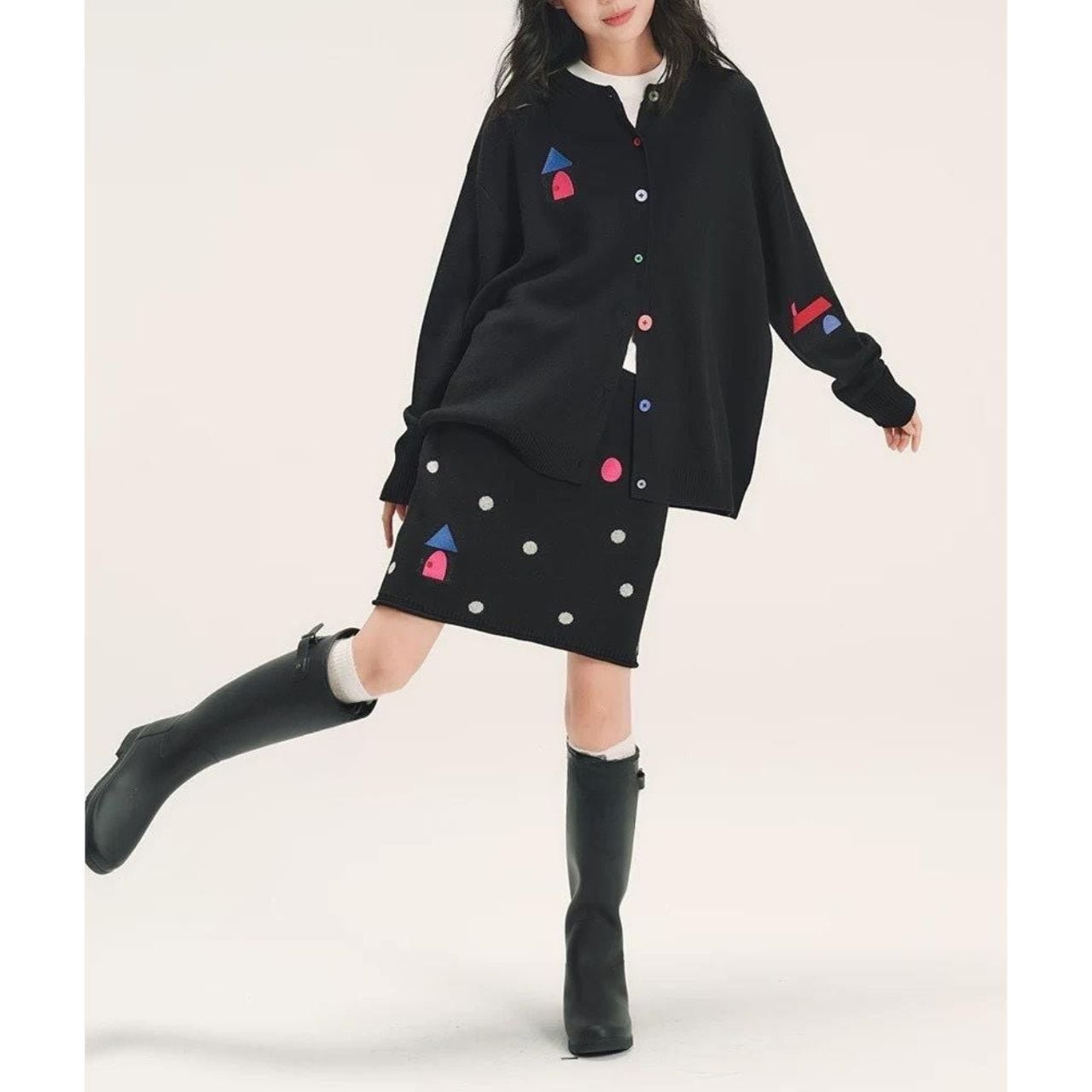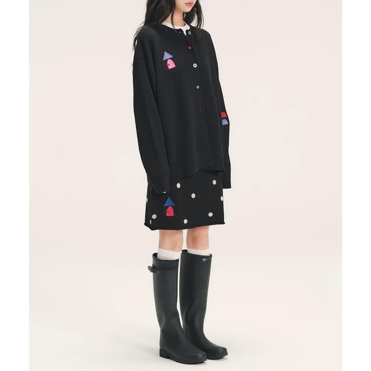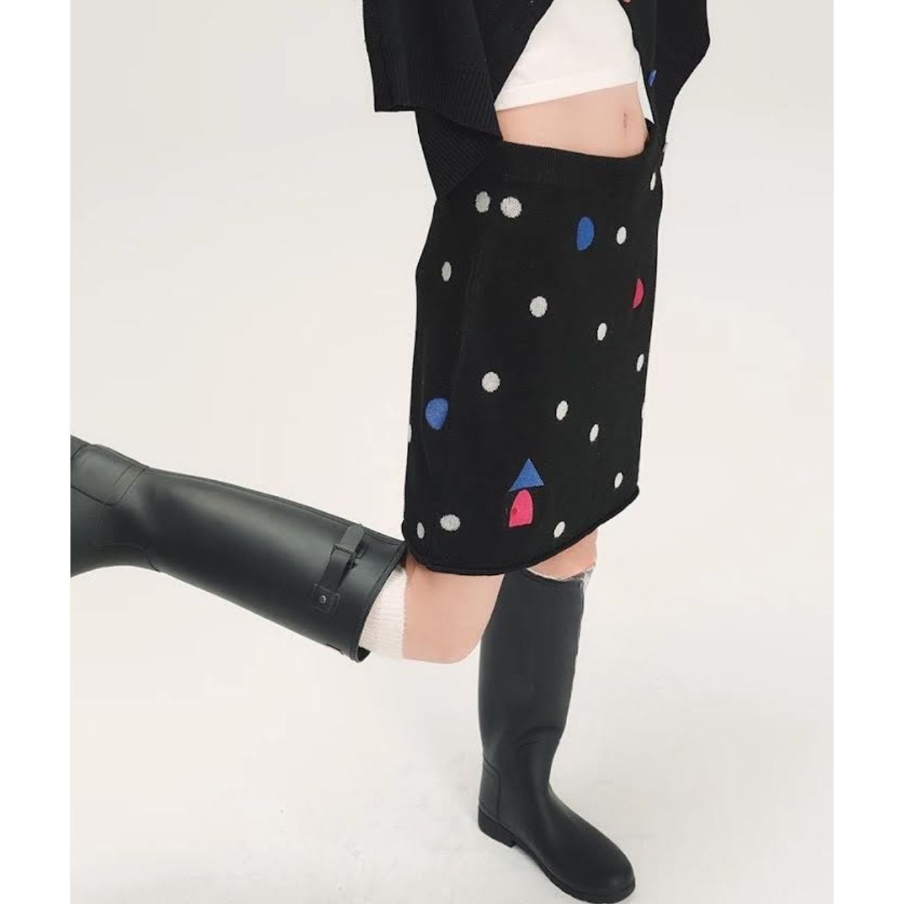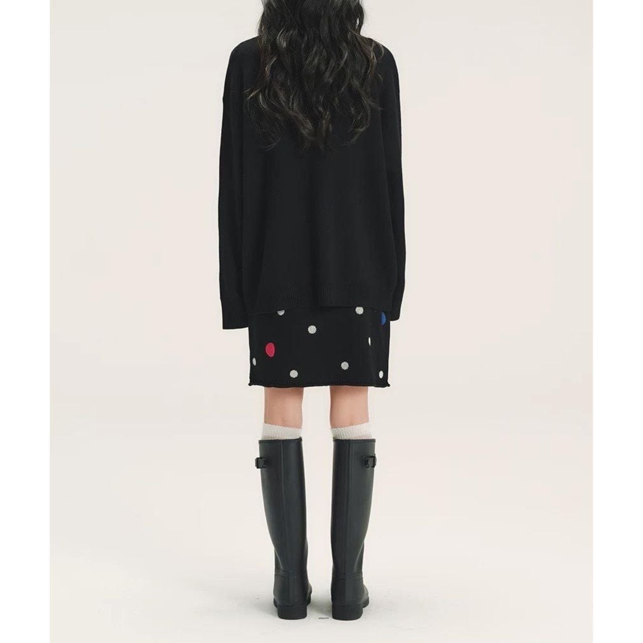 ワンポイントカラーが印象的なニットスカート。