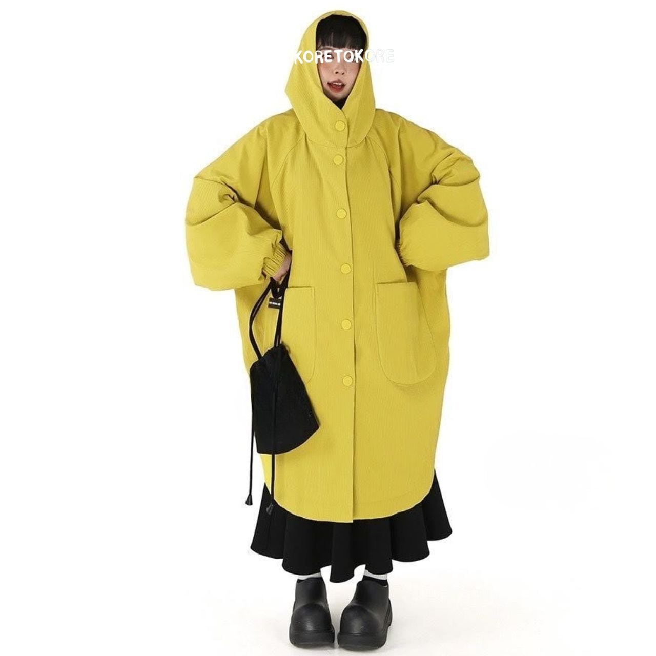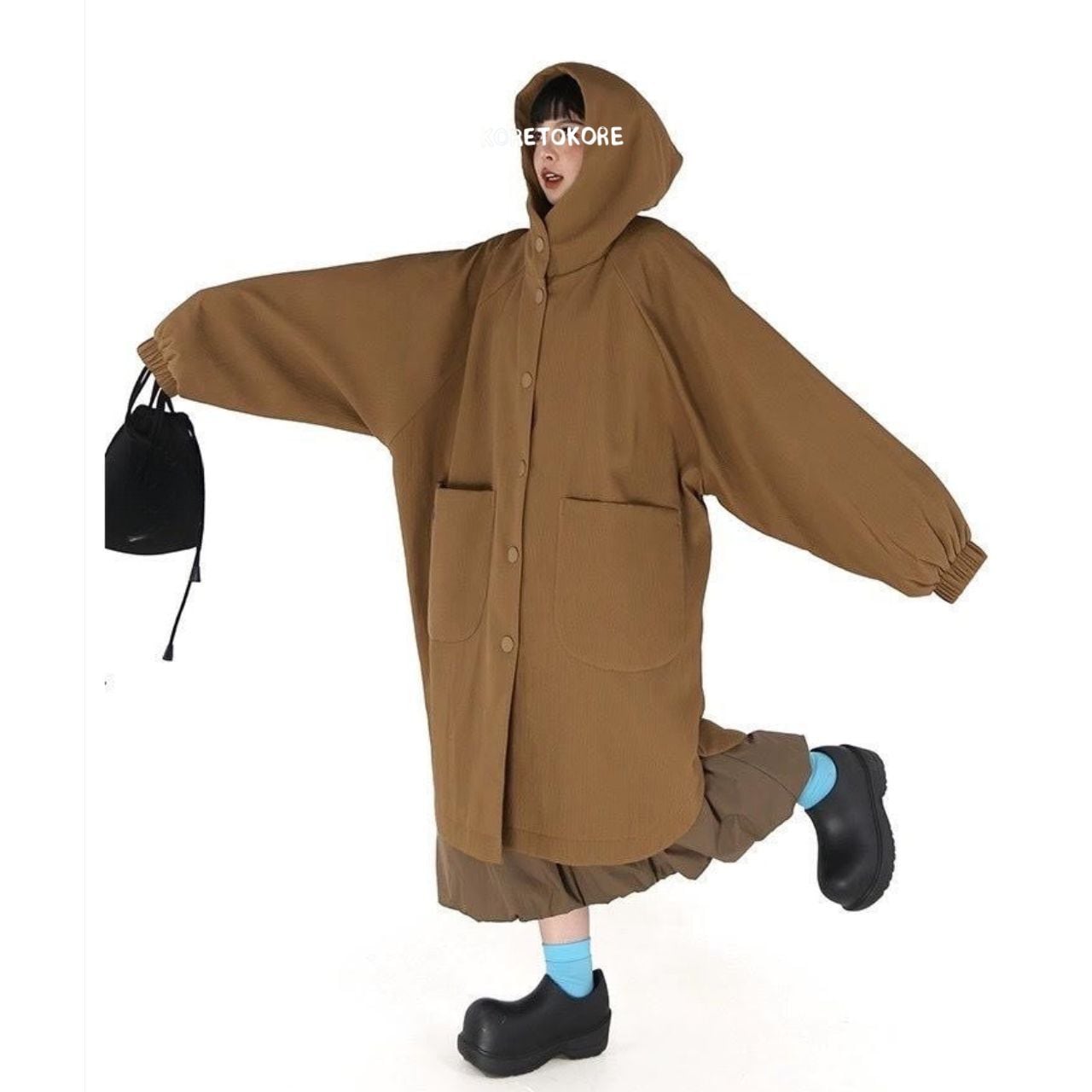 大きめのフード&丸みのある袖がポイントで、