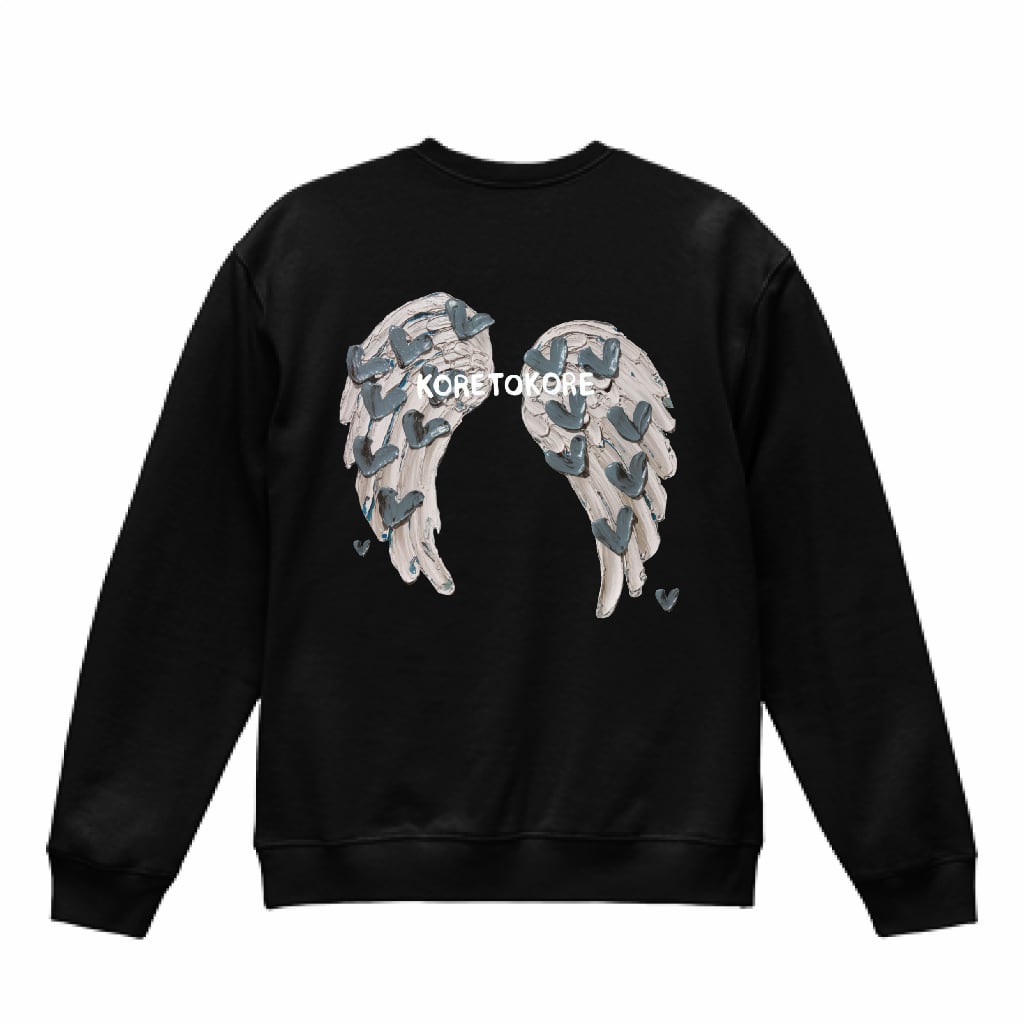 天使の羽 × ハートモチーフ を厚塗りタッチで描いた、