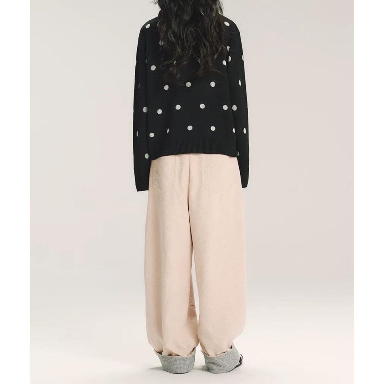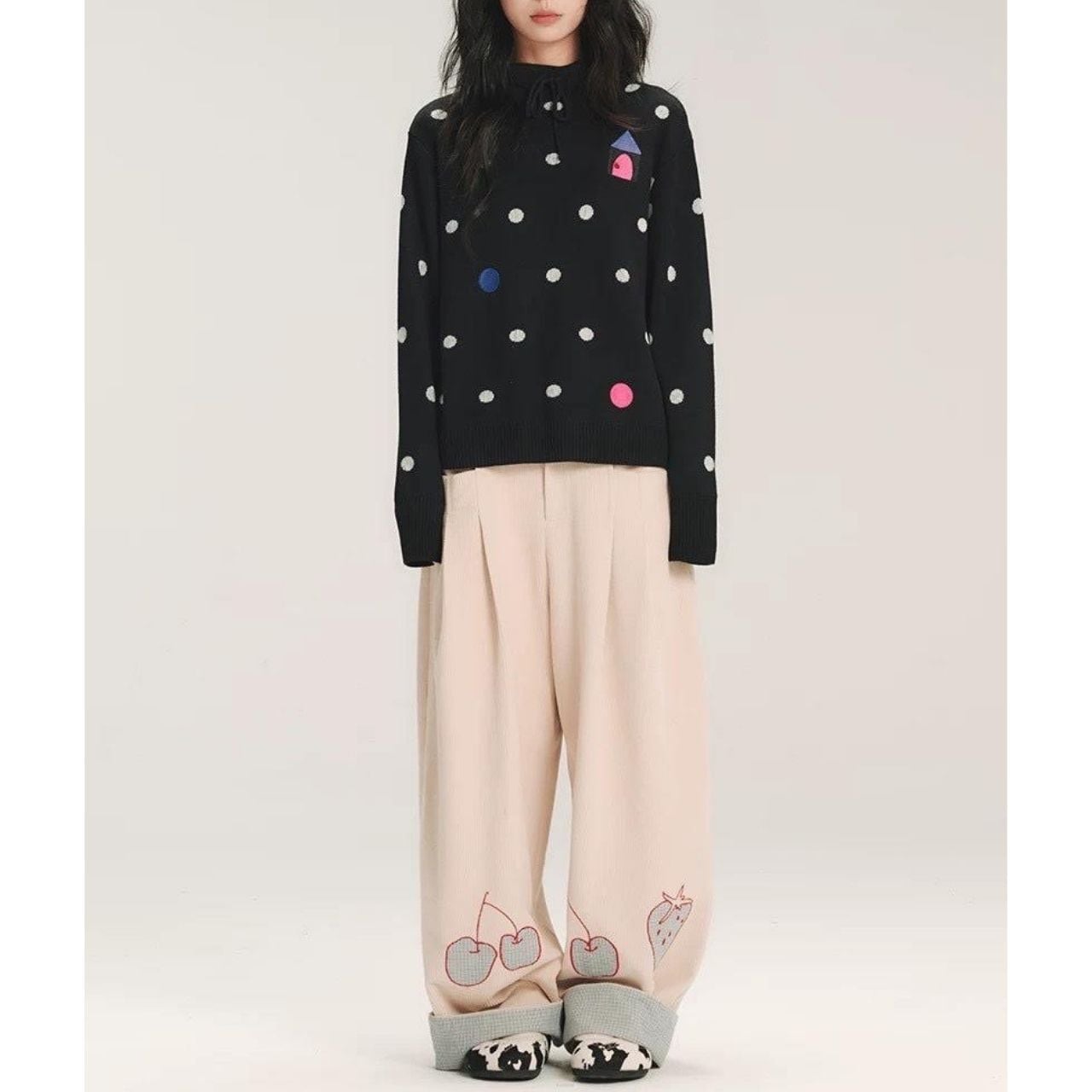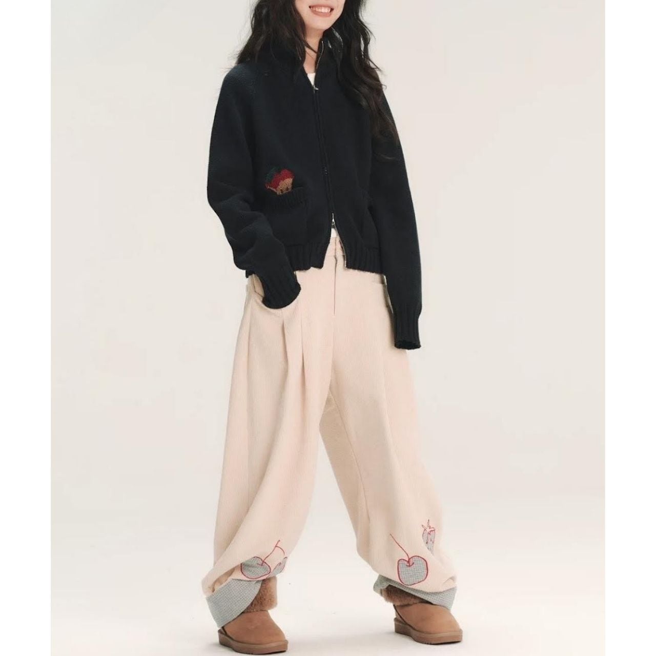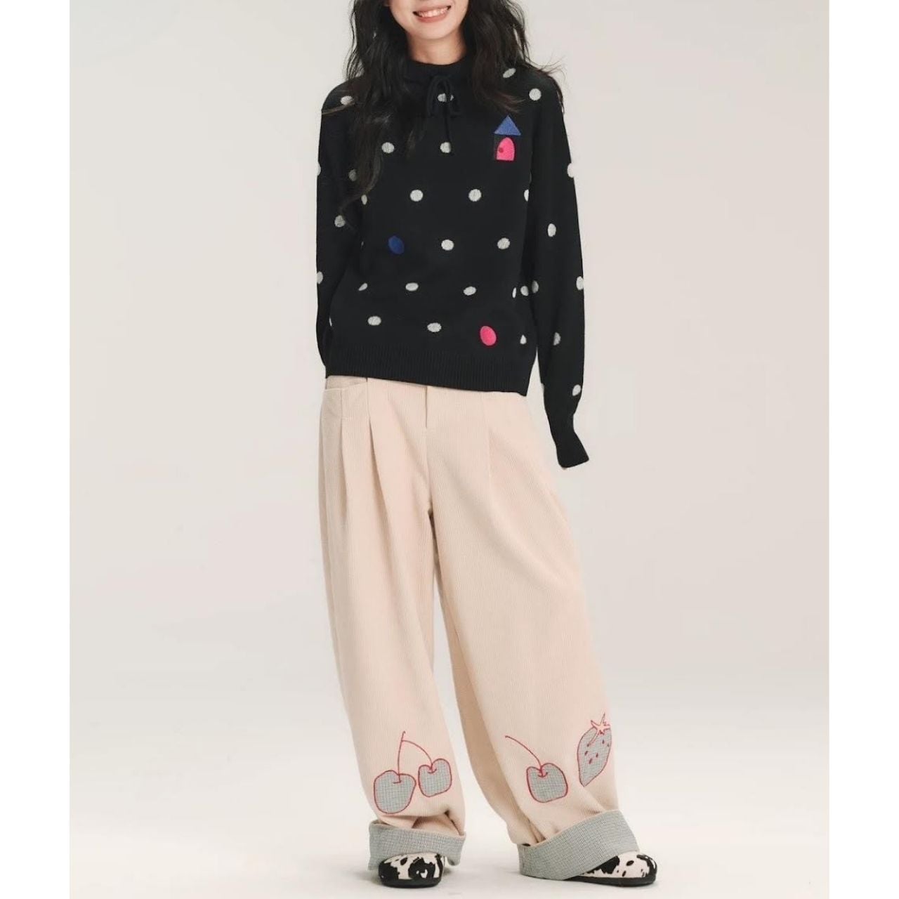 手描きフルーツ風アップリケがポイントのワイドパンツ。
