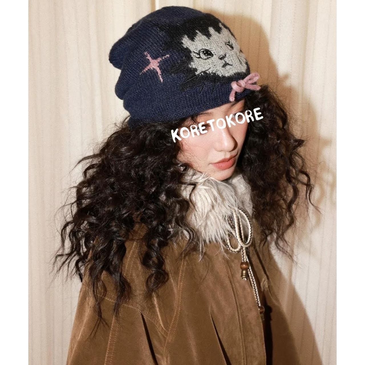 愛らしい“泣き顔小猫”がデザインされた冬の主役アイテム。