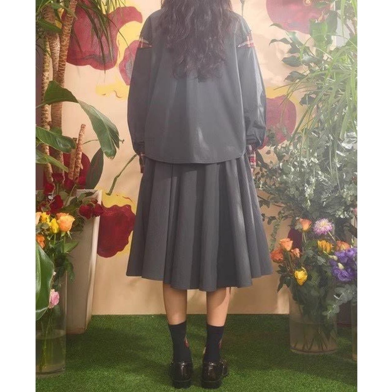 上品で遊び心のあるシャツ×スカートのセットアップです。