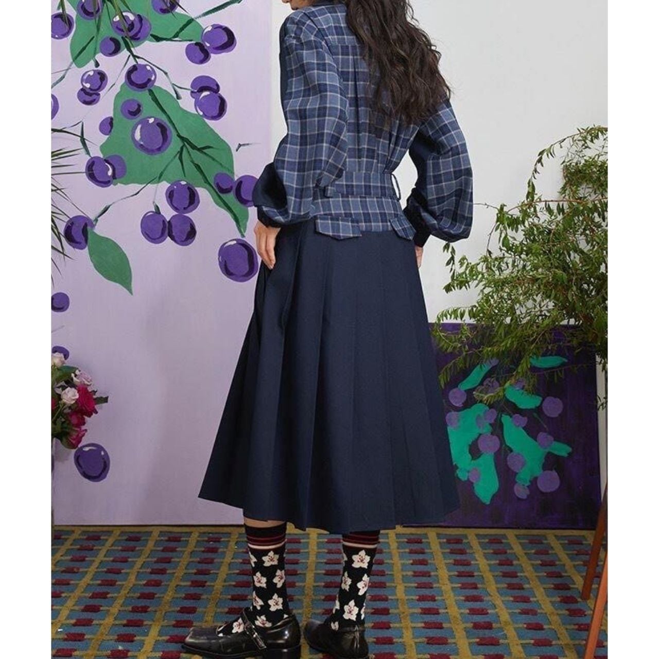 Sakura Navy Check Set-Up A1085