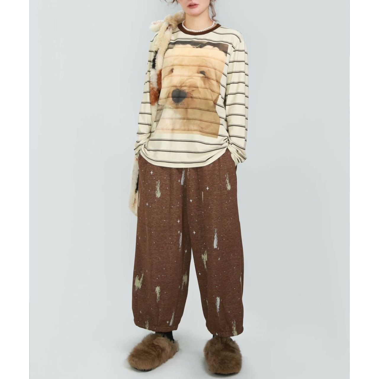 冬に大活躍の、ゆったりジョガーパンツ。