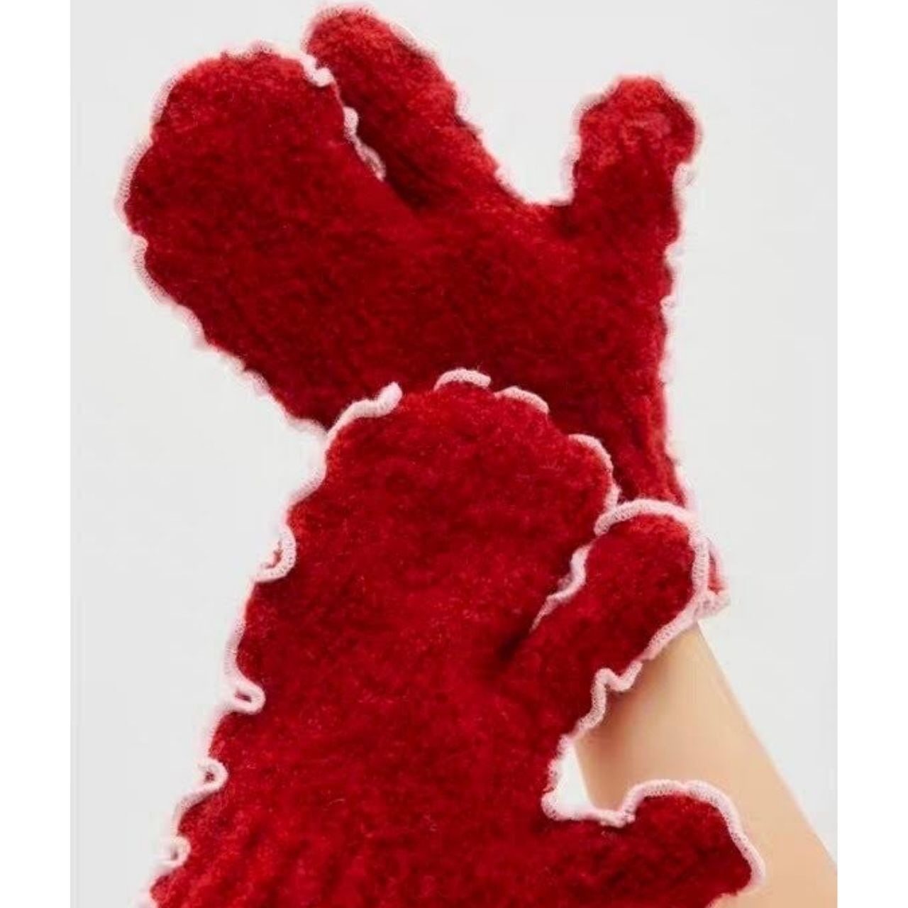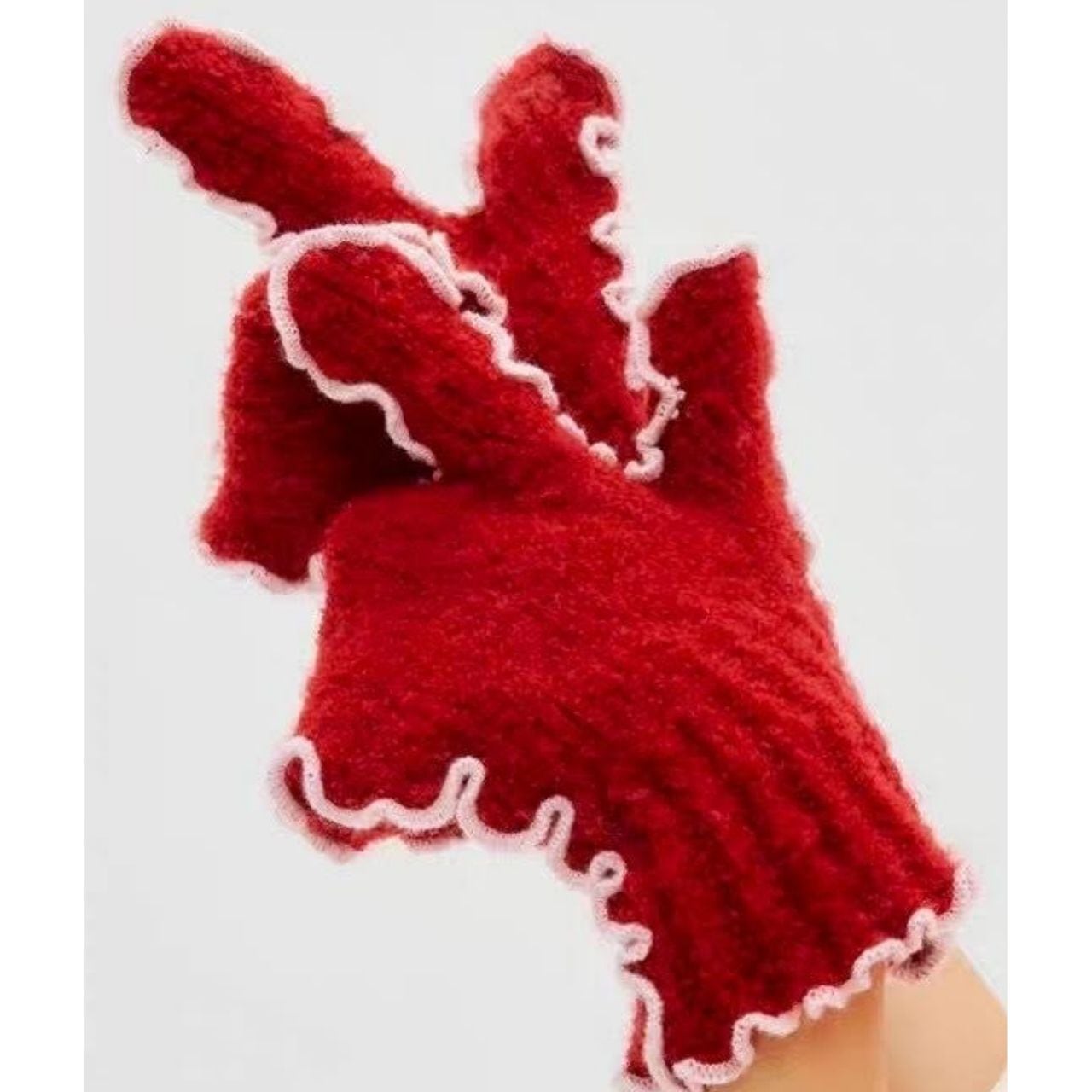 くるんとした縁取りが可愛いニット手袋。