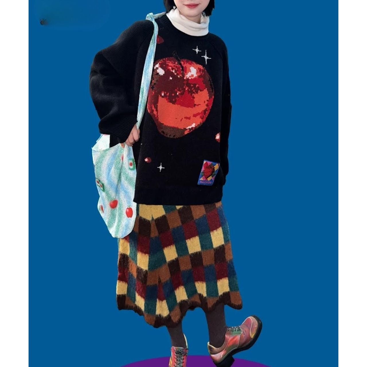 立体感のある編み柄で表現されたアップルは、