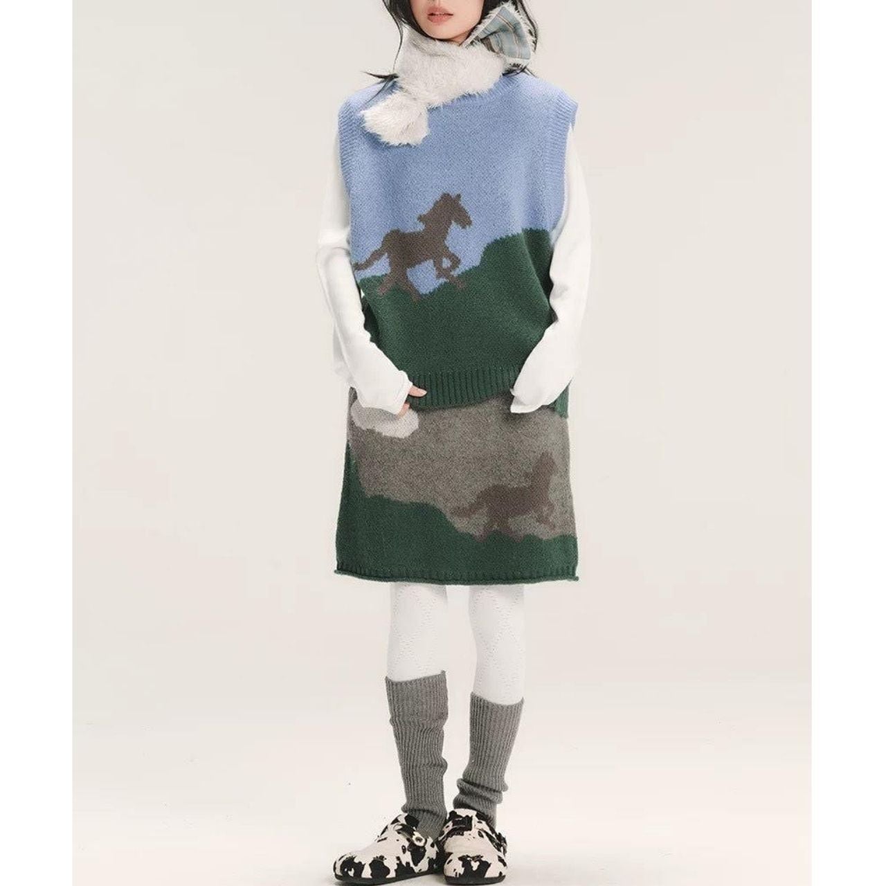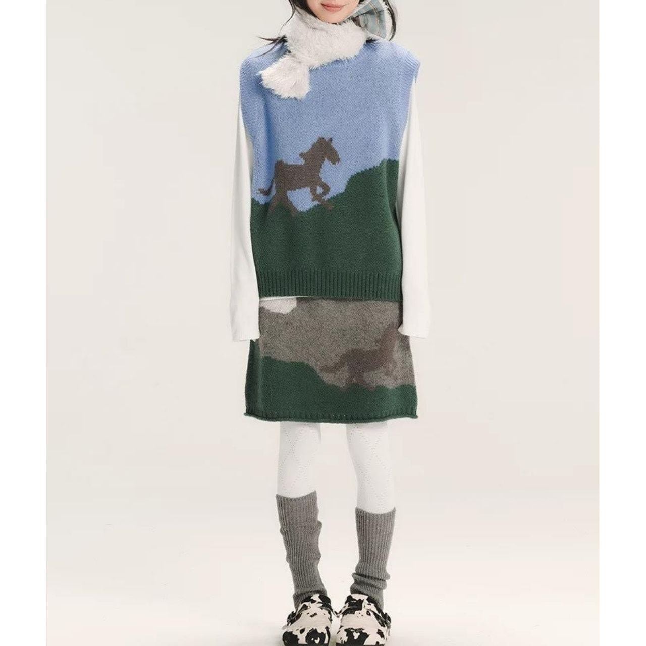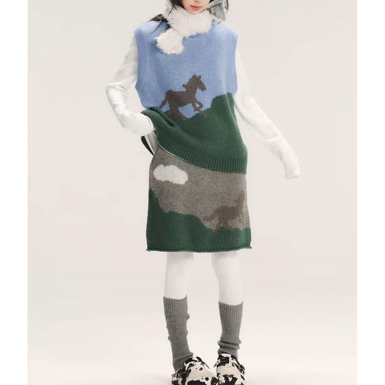 Cloud Landscape Knit Skirt A1097