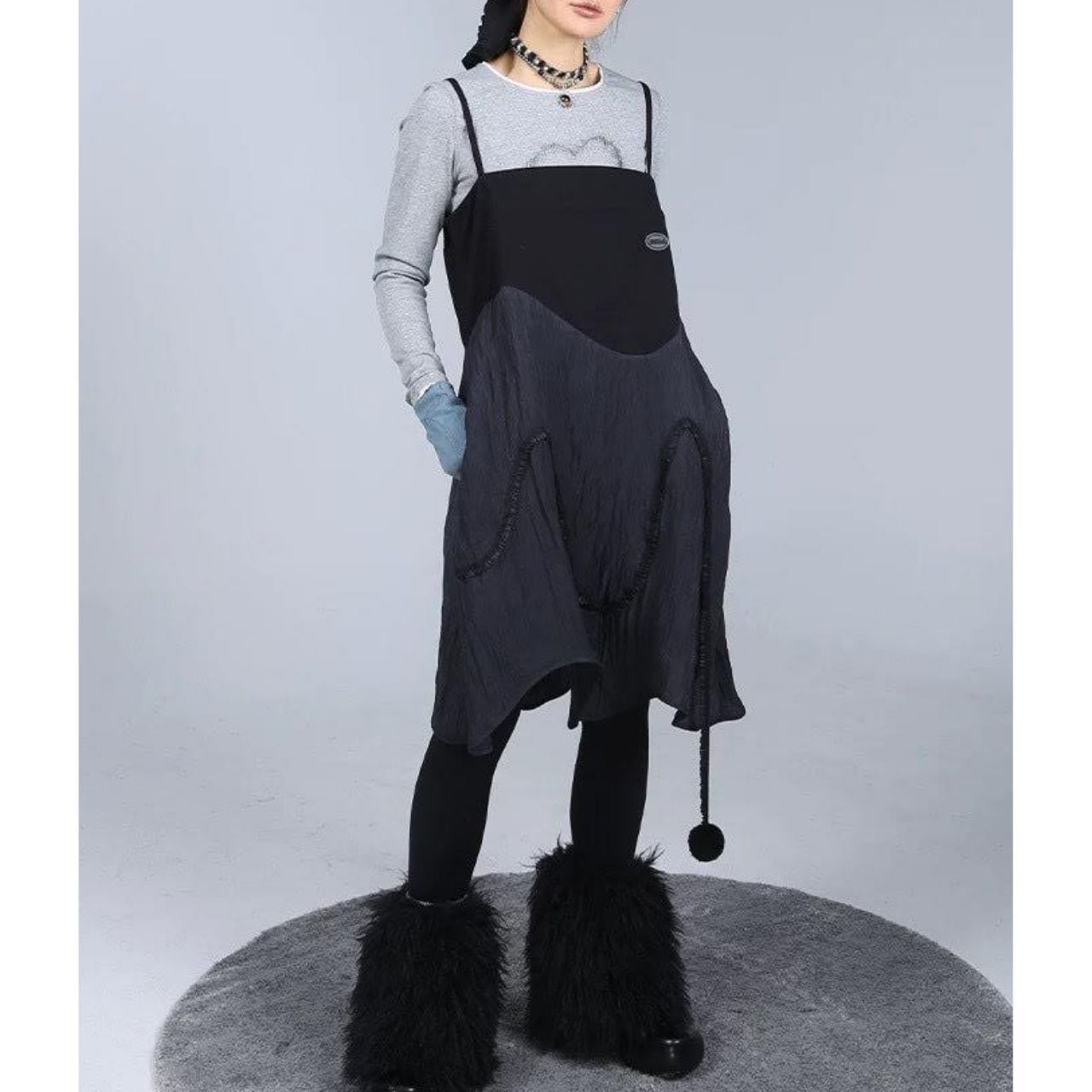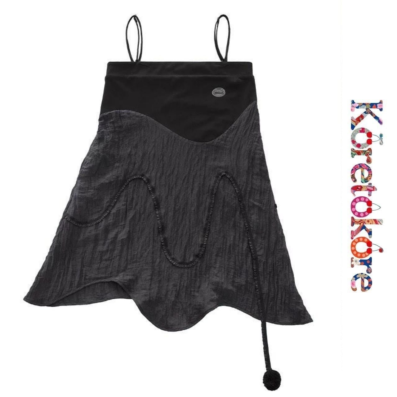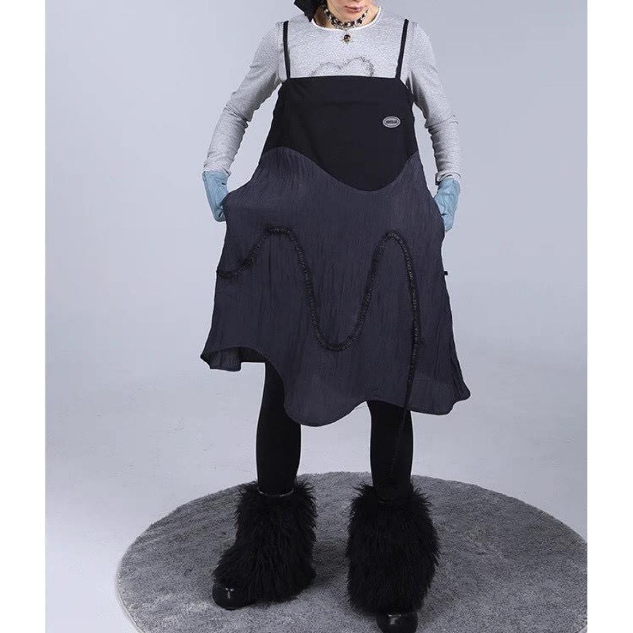 アシンメトリーなヘムラインと立体的な切り替えが印象的な、