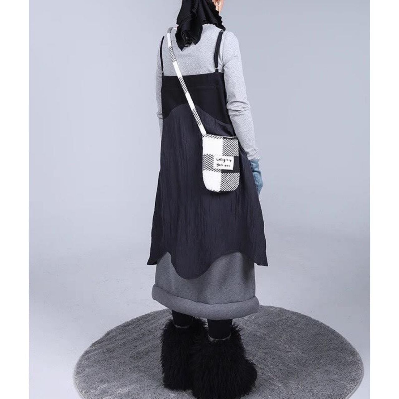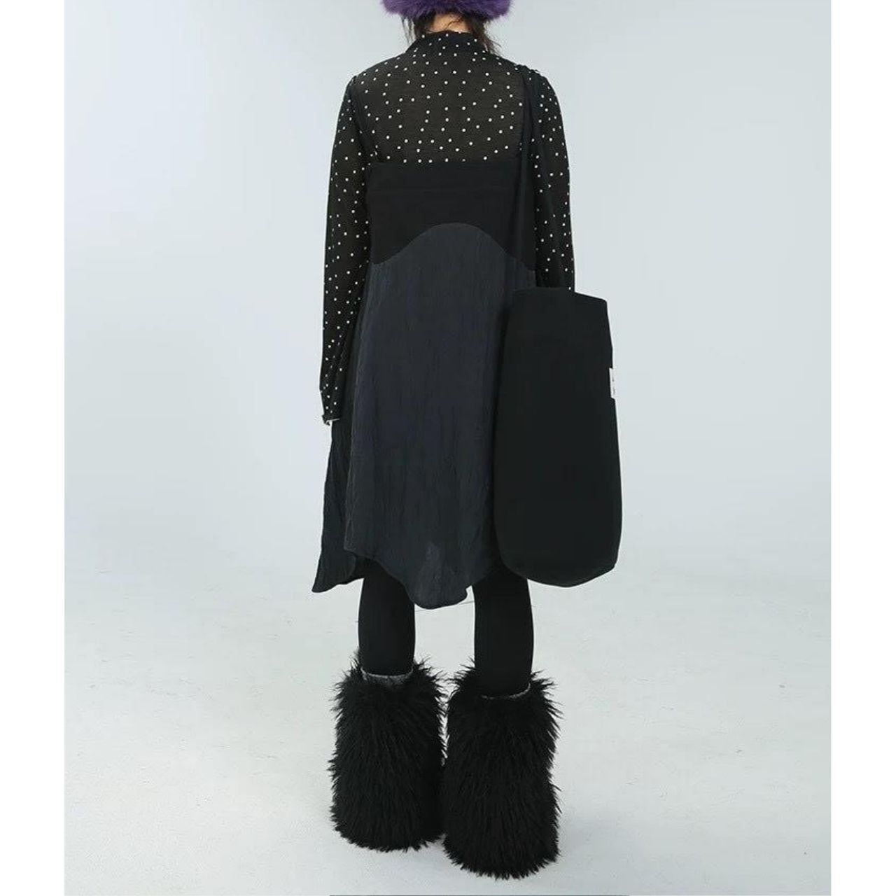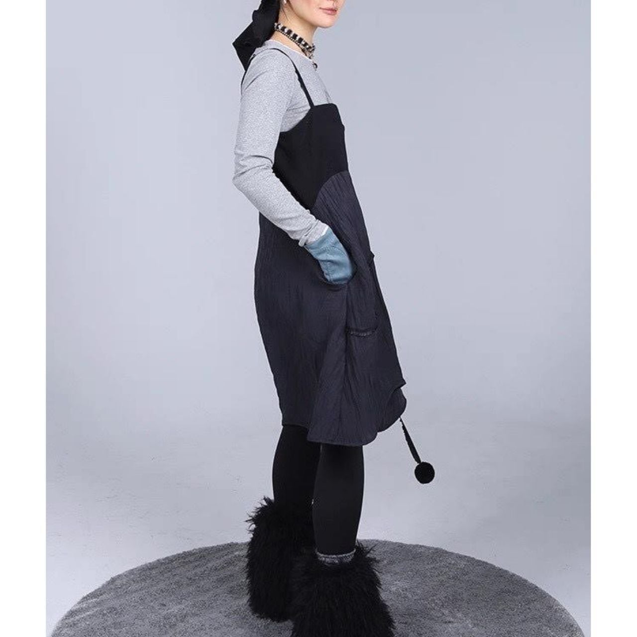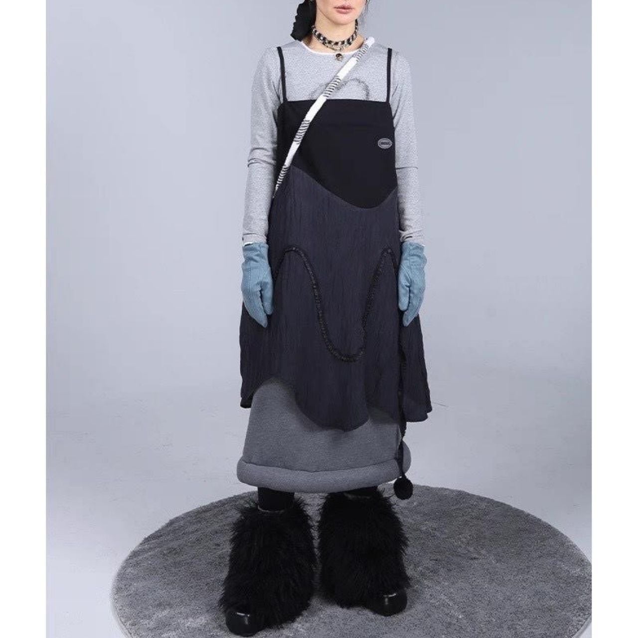 アシンメトリーなヘムラインと立体的な切り替えが印象的な、