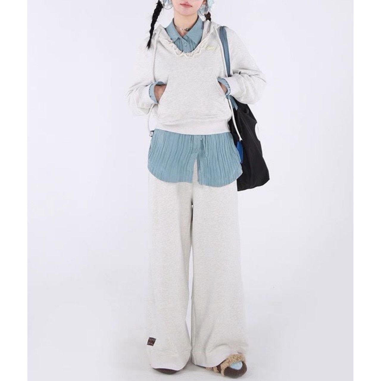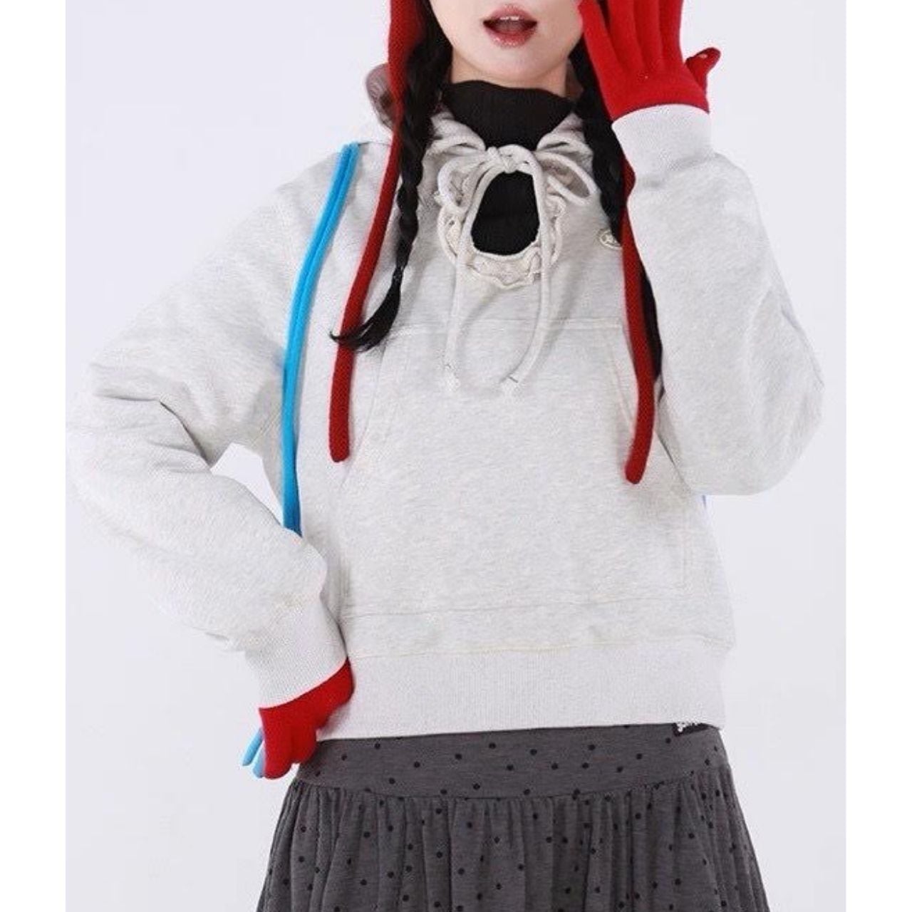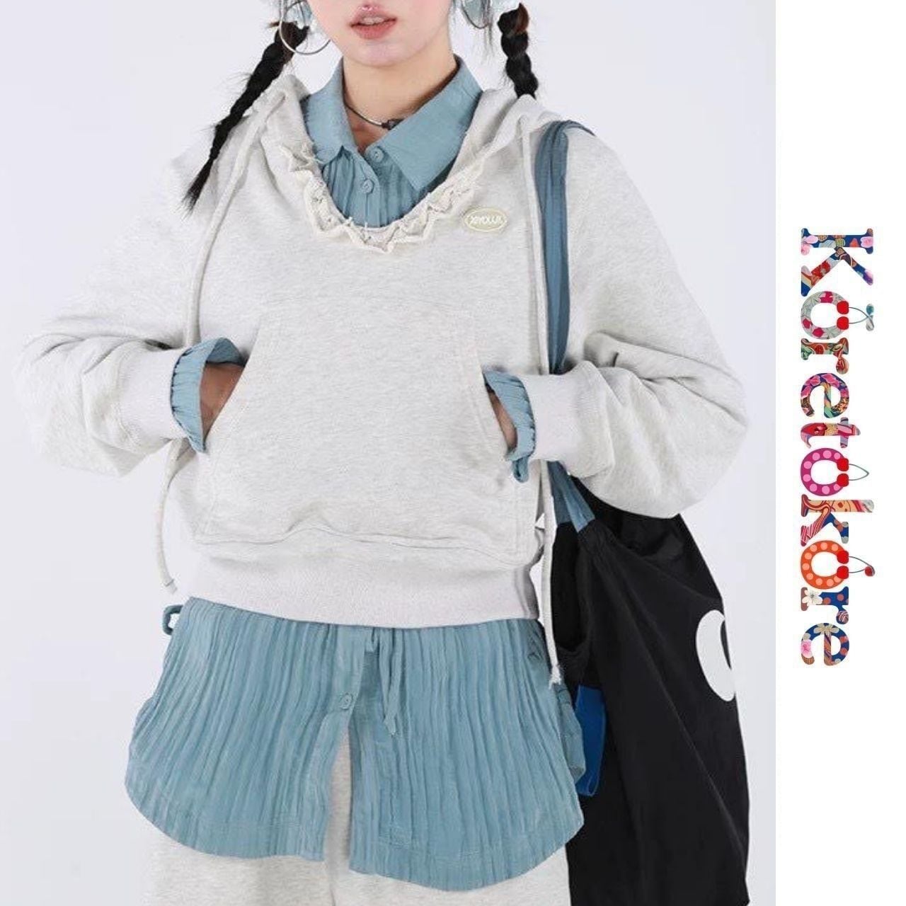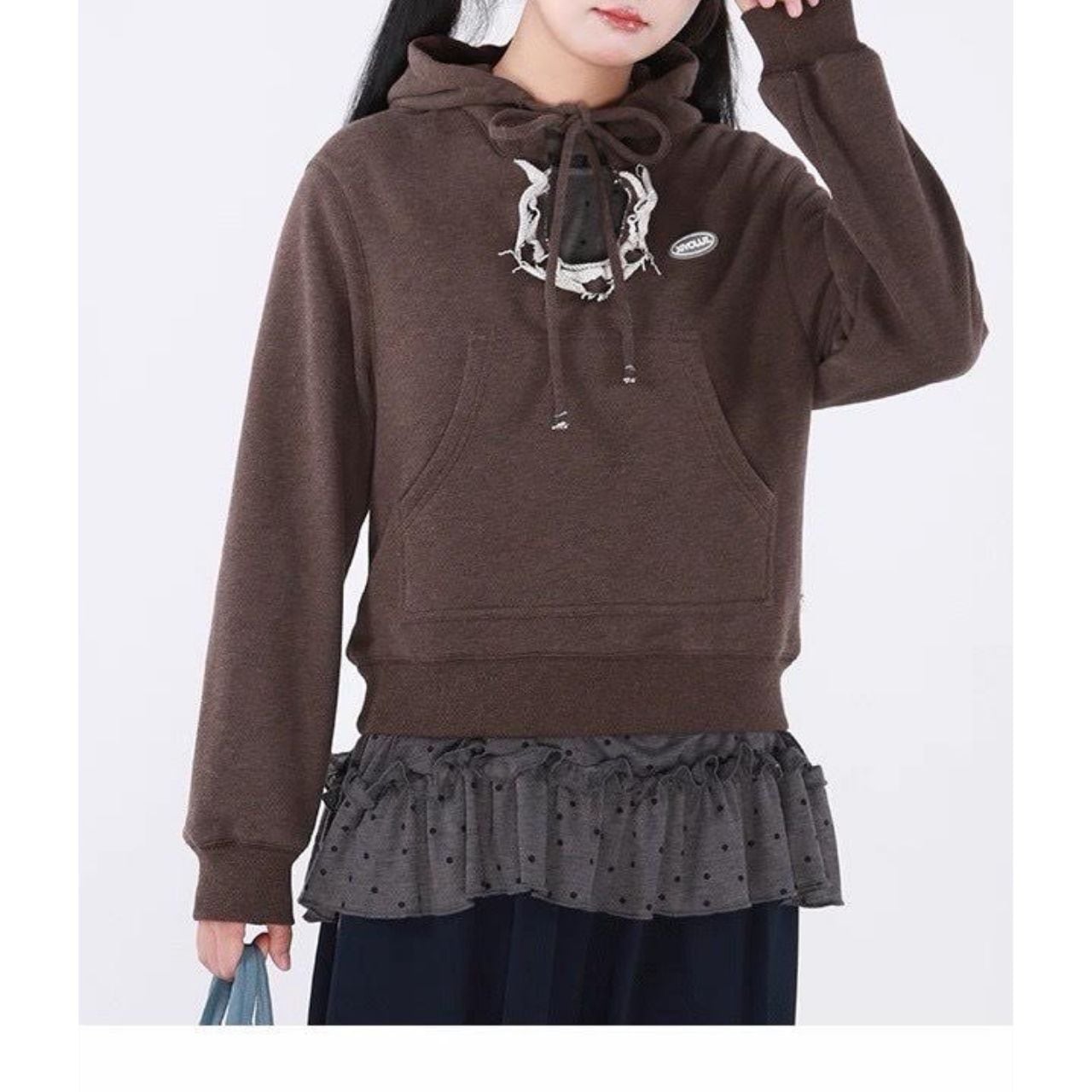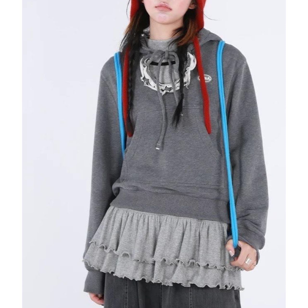 Frill Neck Hoodie Sweatshirt A0222