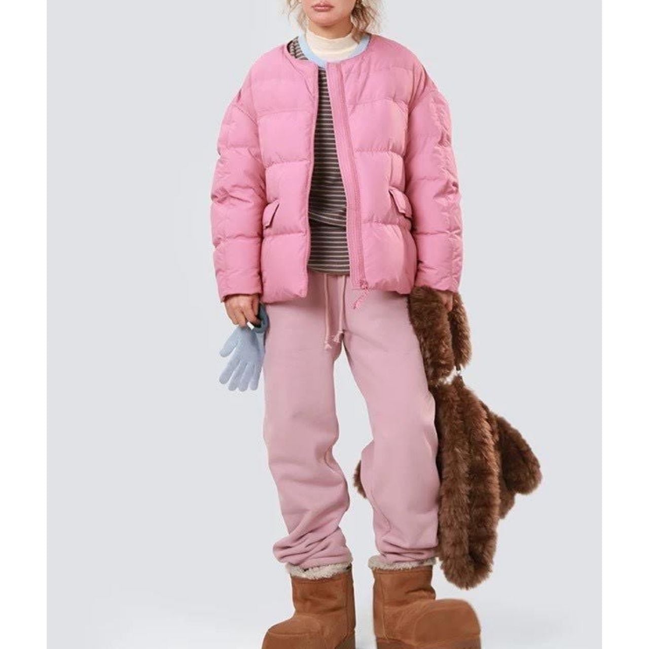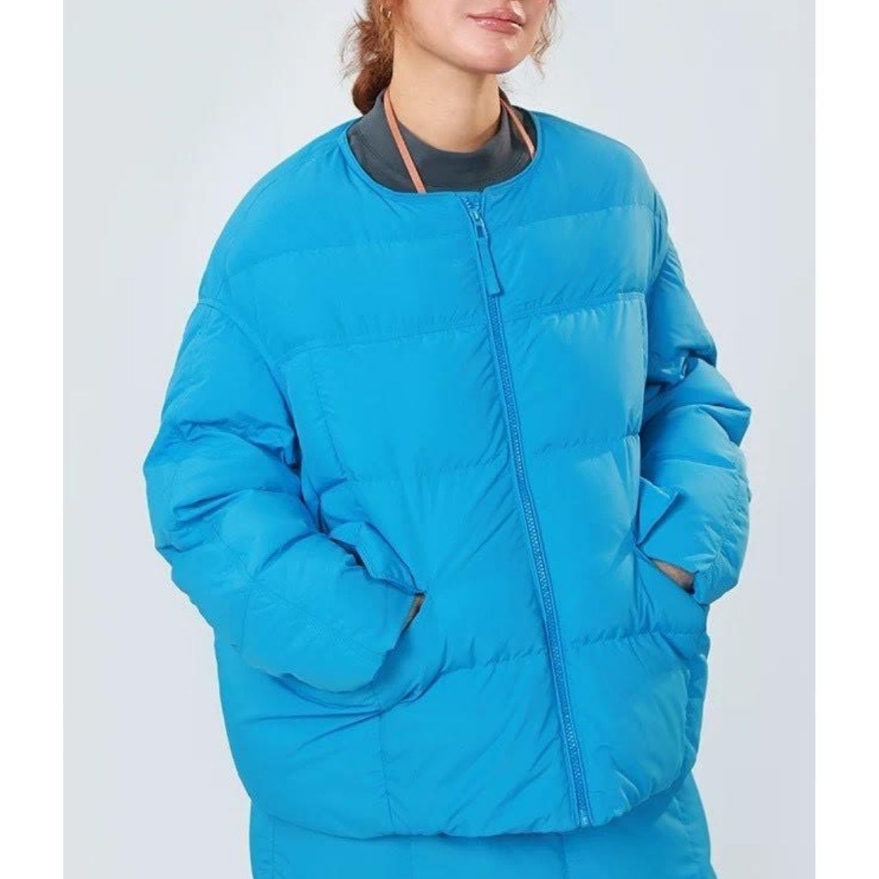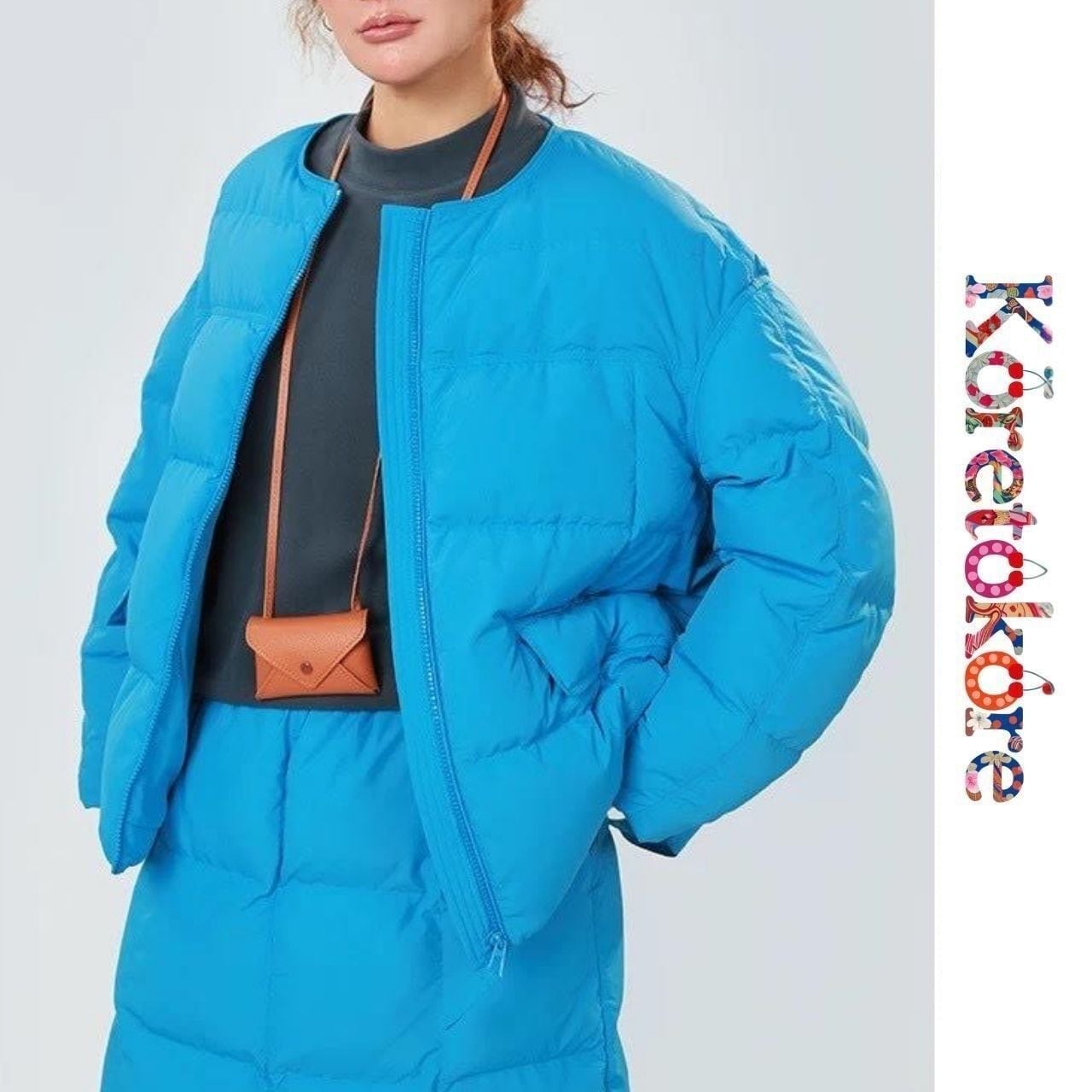 90%ホワイトグースダウン使用のノーカラーダウンジャケット。