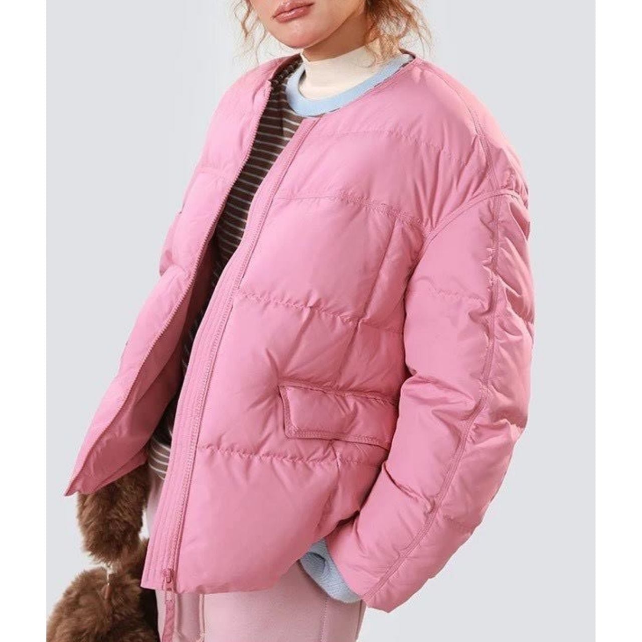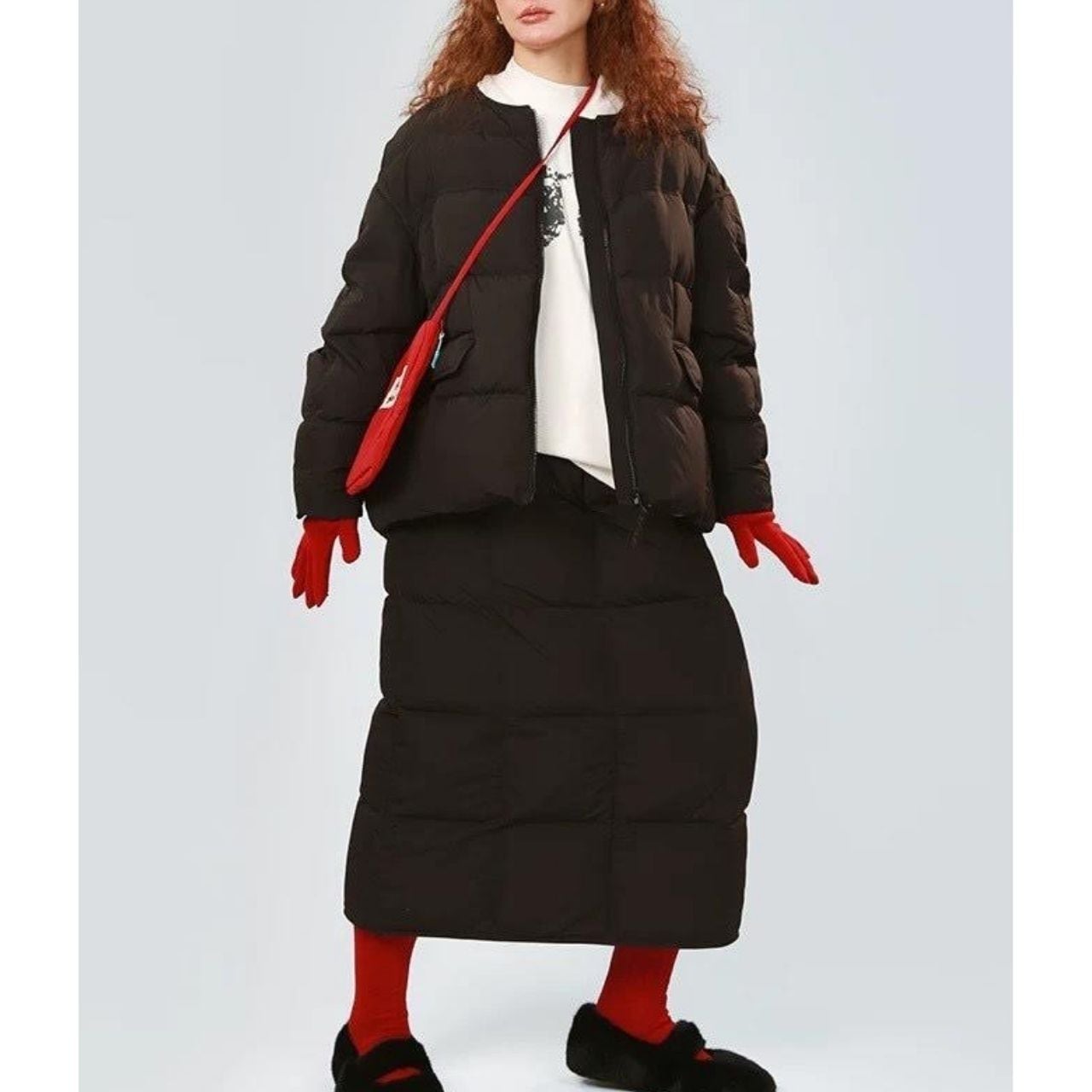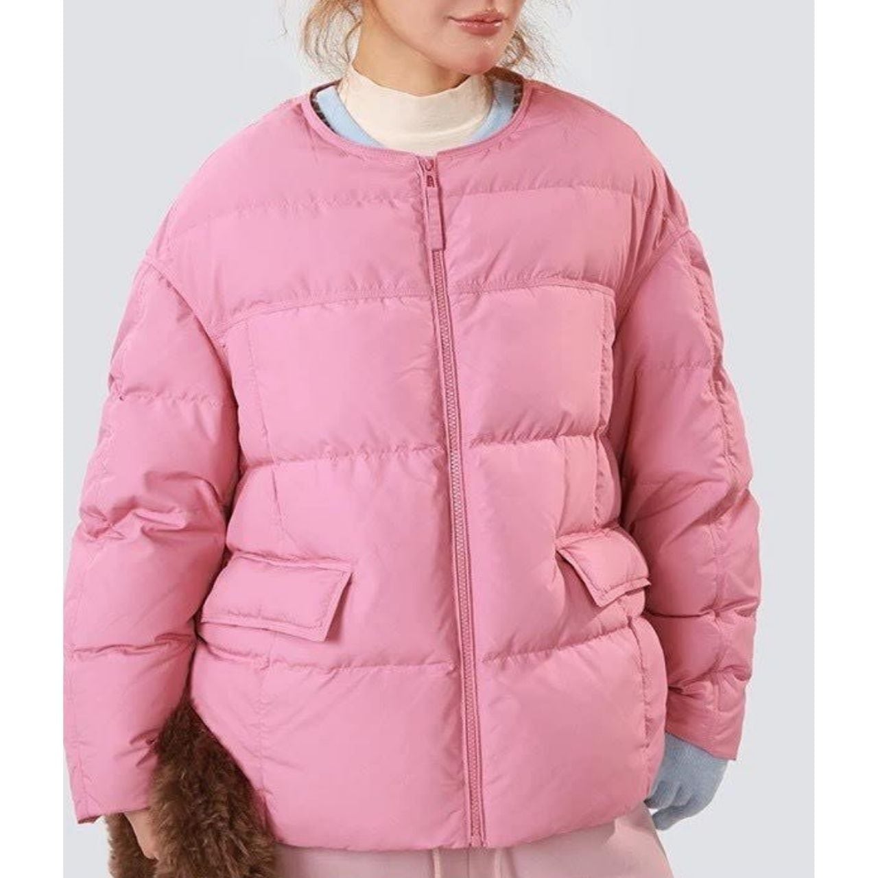 90%ホワイトグースダウン使用のノーカラーダウンジャケット。