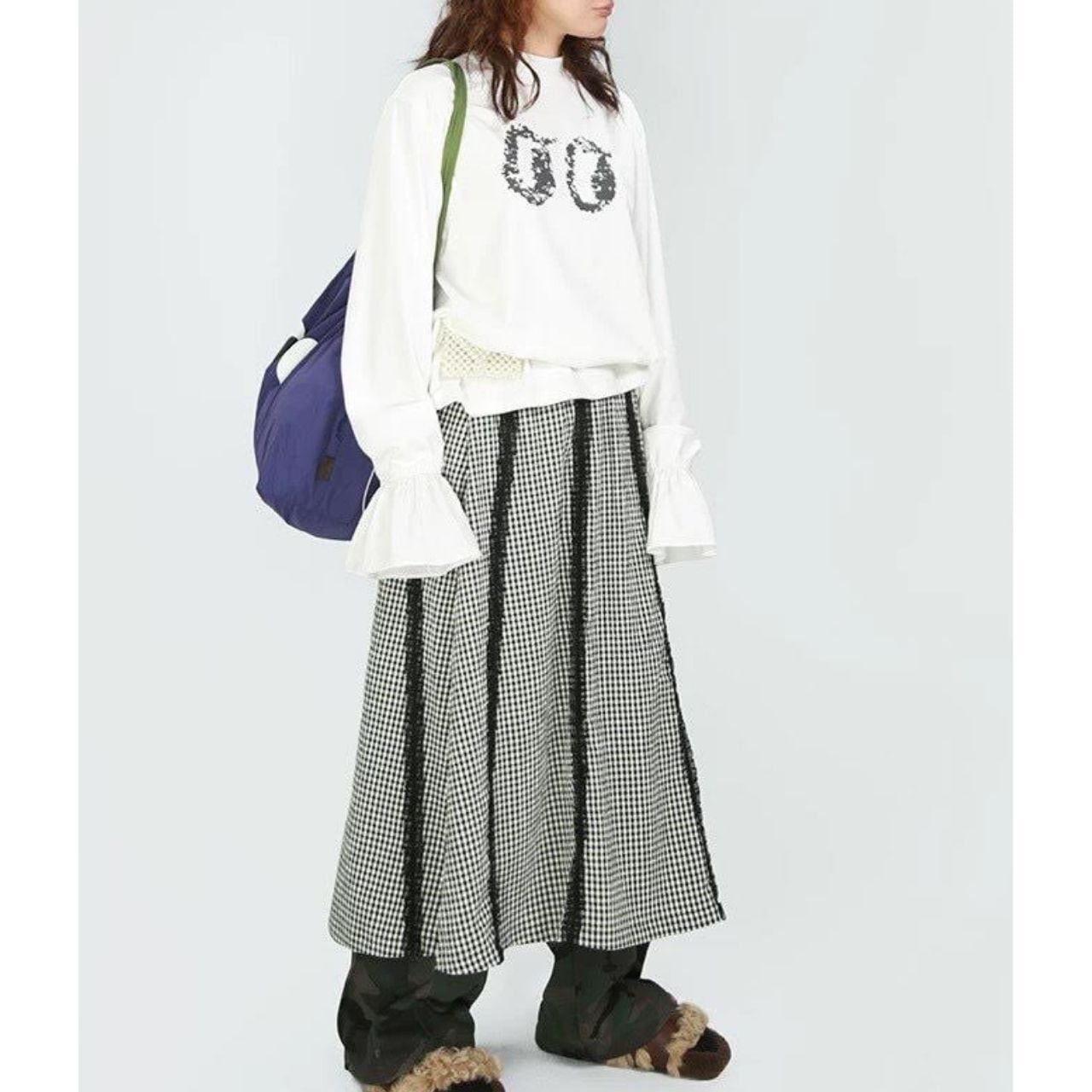 スカート・パンツどちらにも合わせやすく、