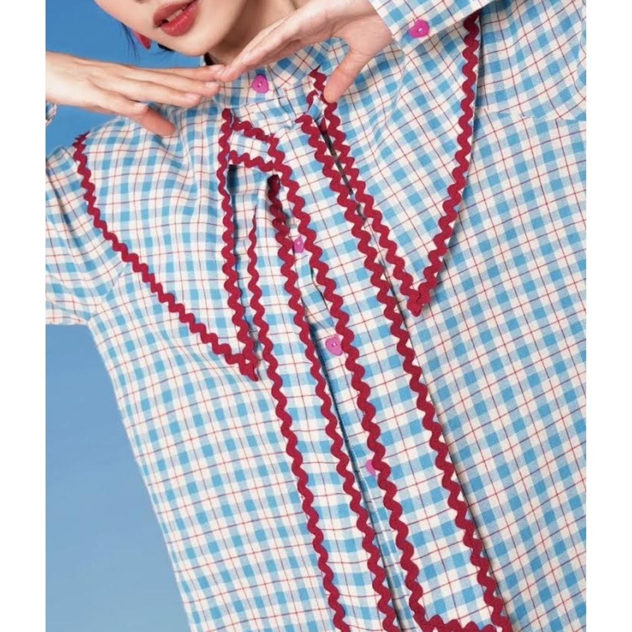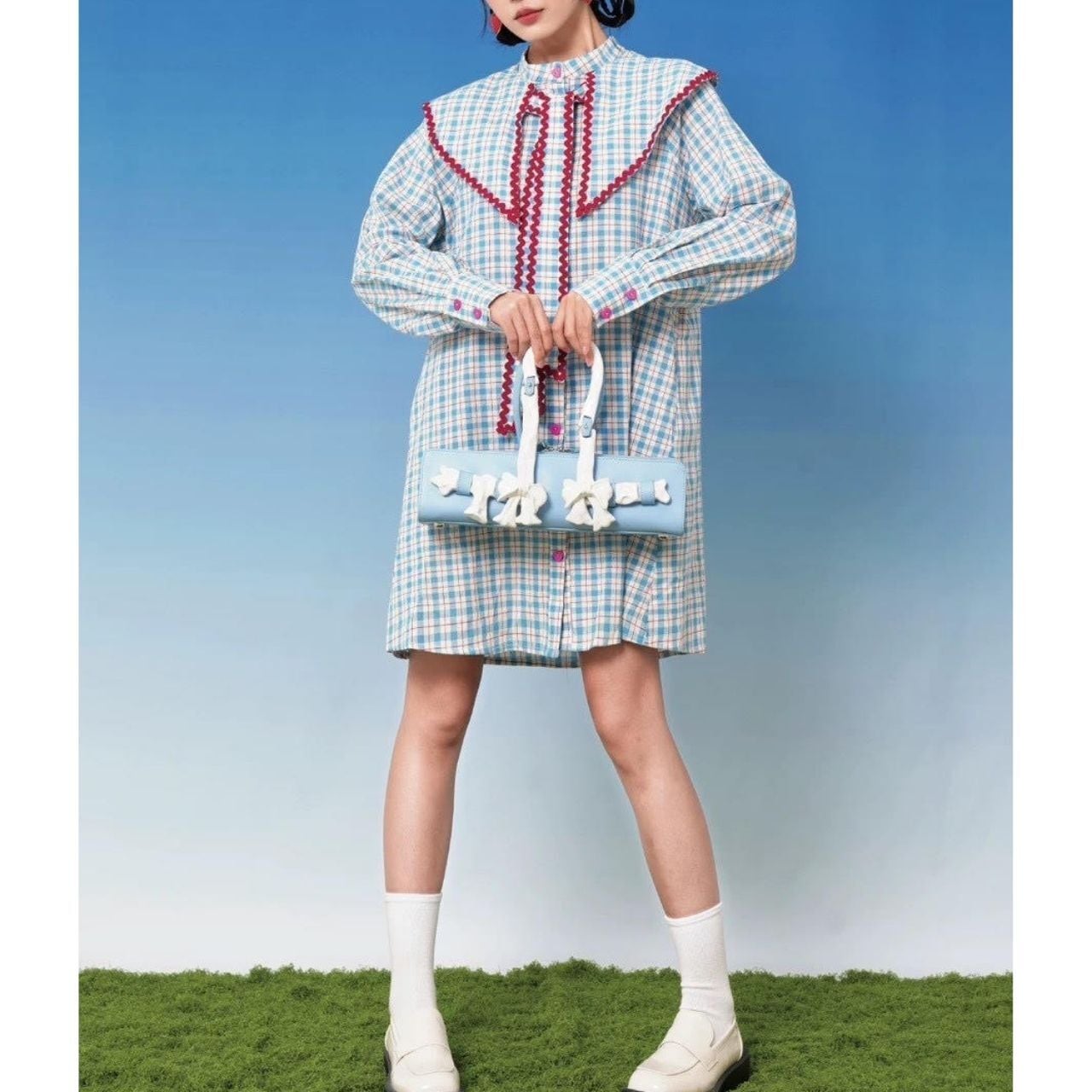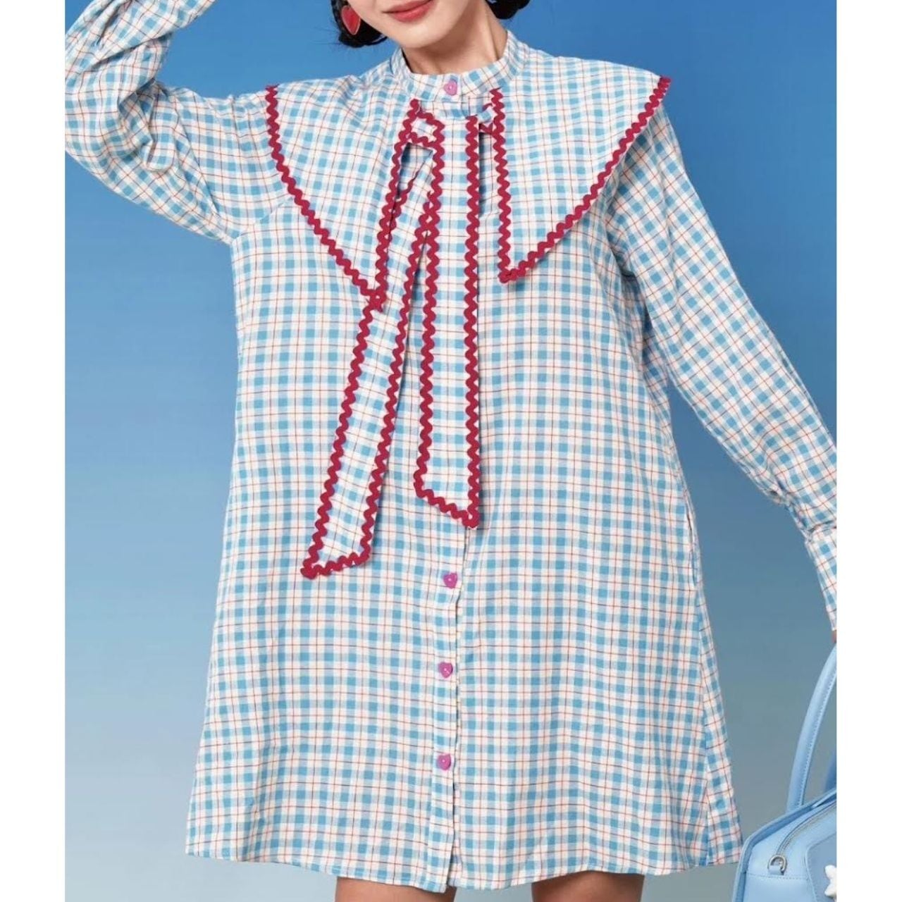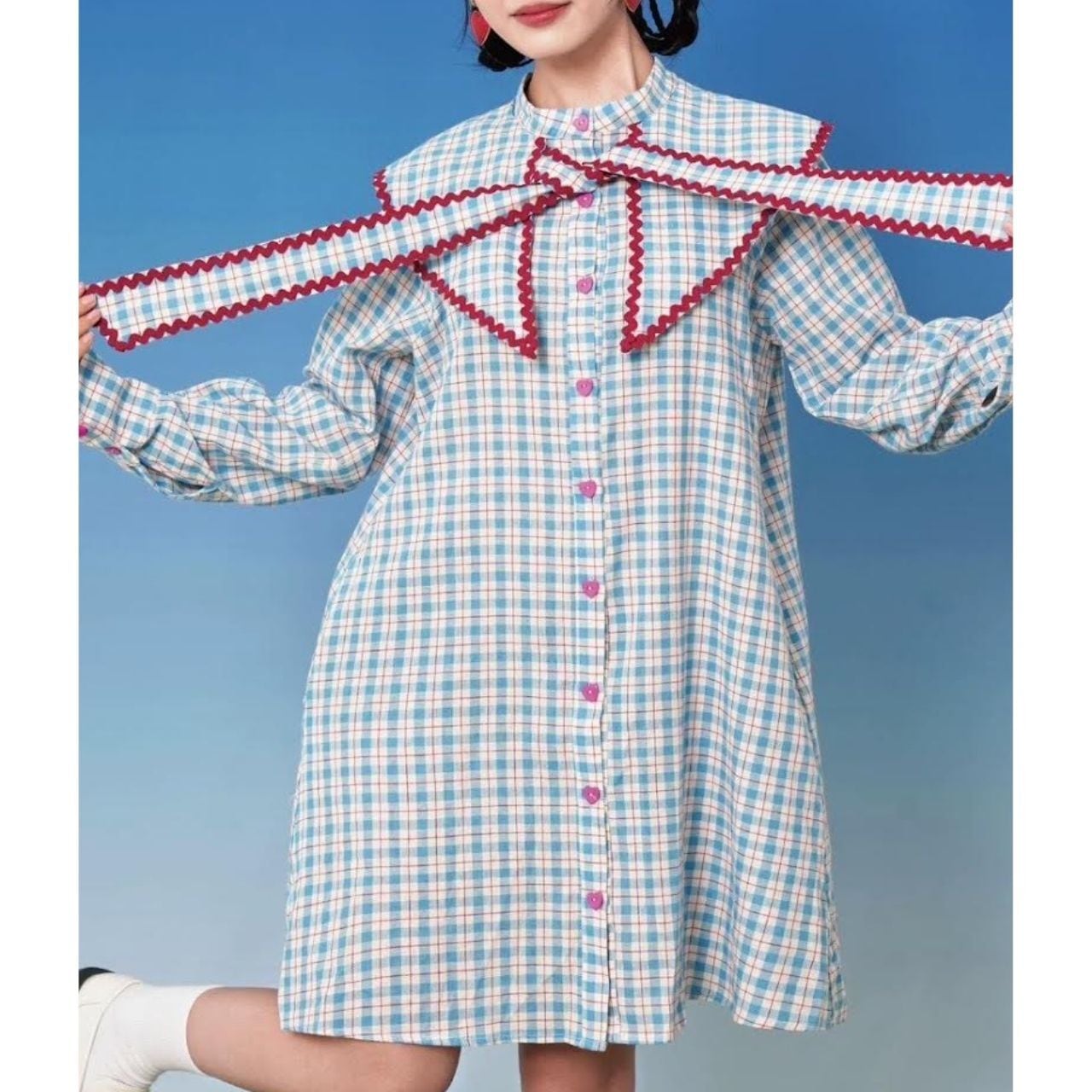 チェック柄のシャツワンピース。