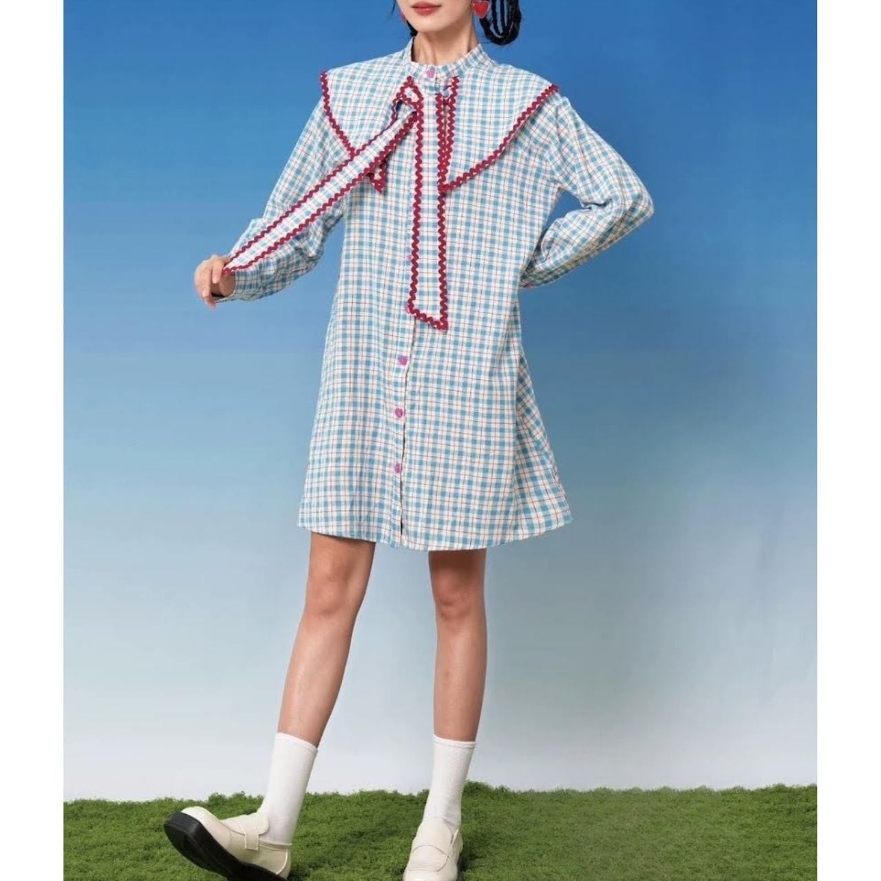Checked Sailor Collar Dress A1102