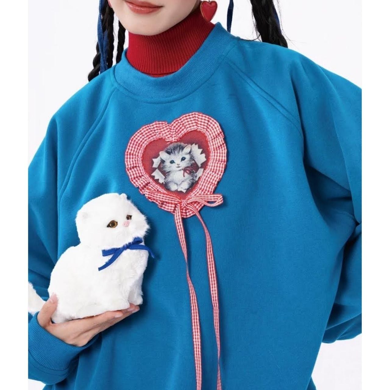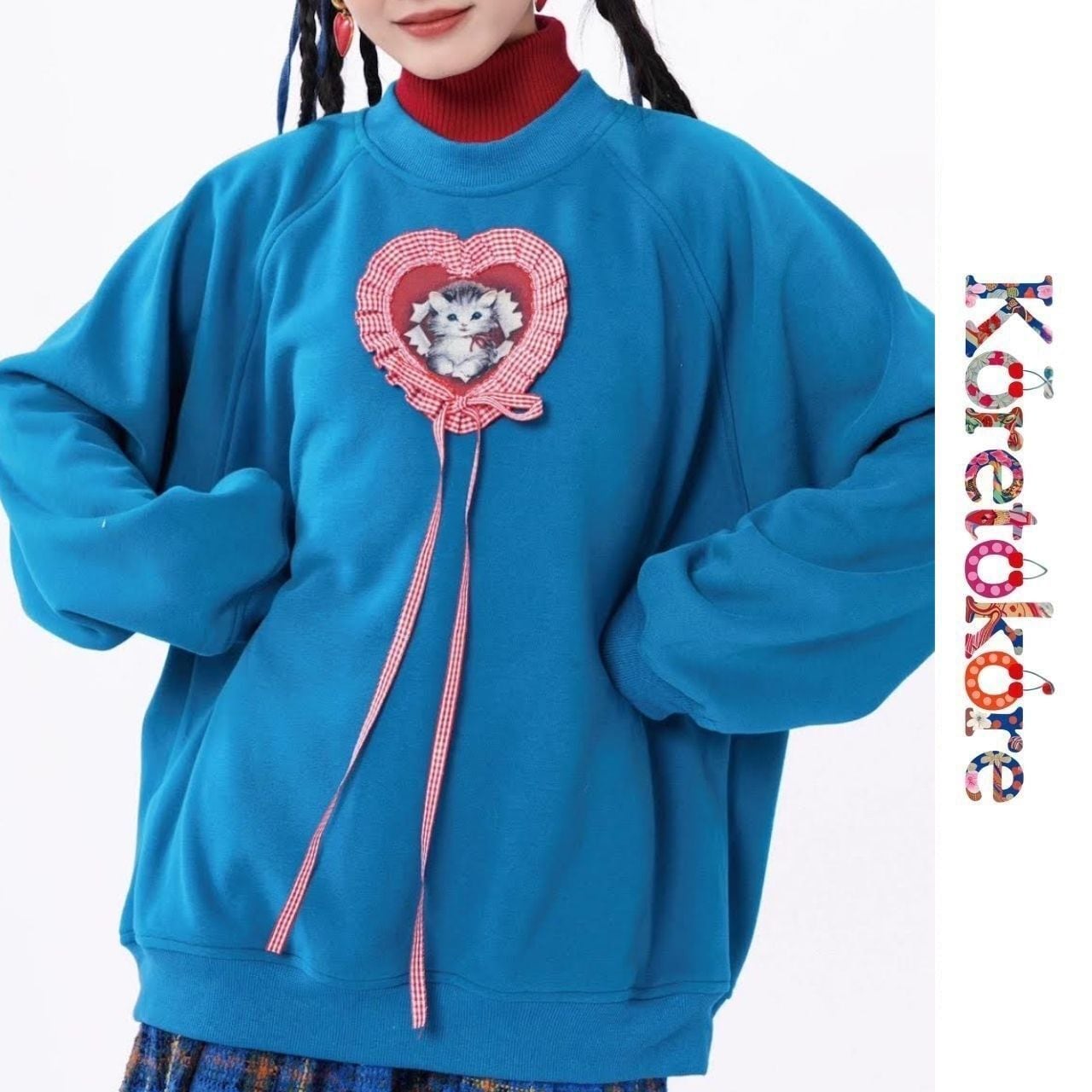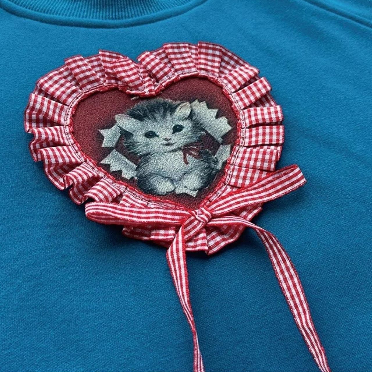 ハートモチーフの中に描かれた子猫が印象的な、