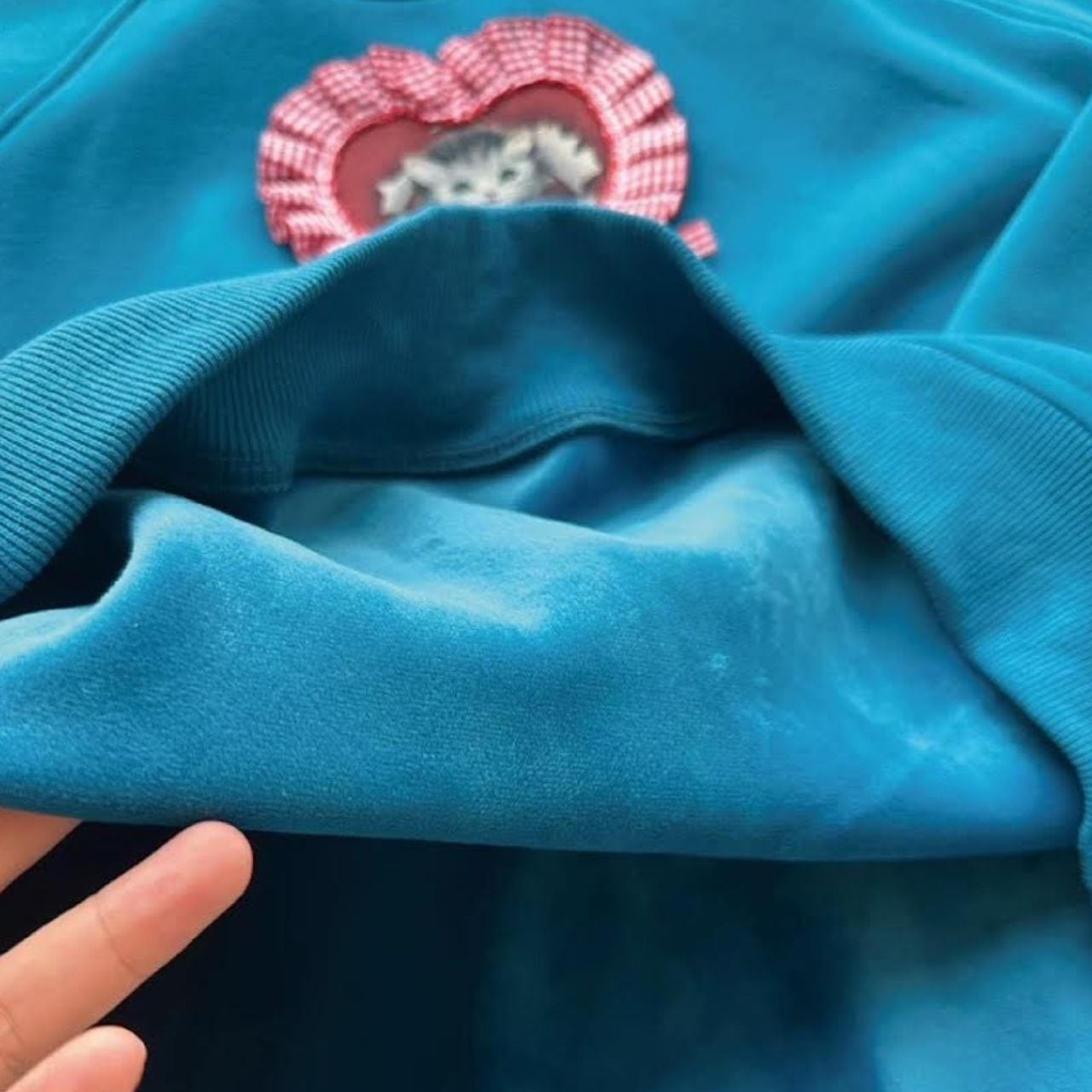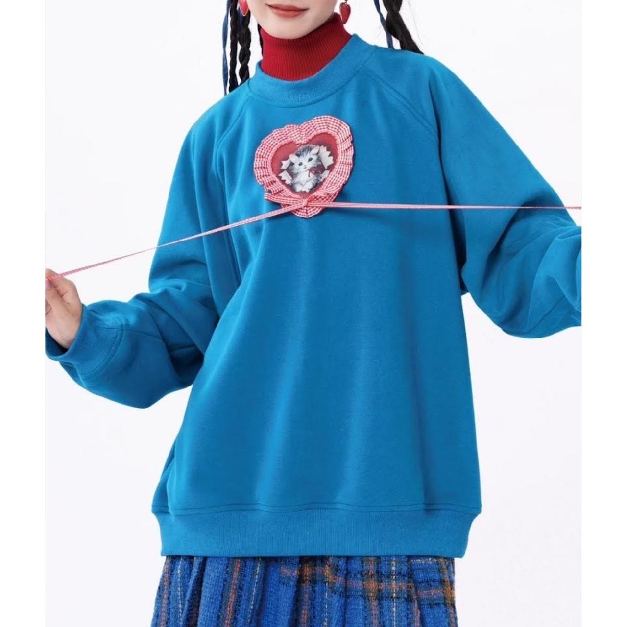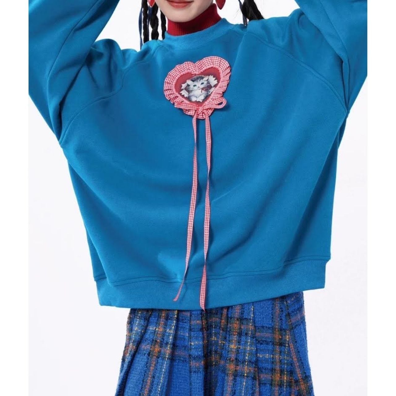 ハートモチーフの中に描かれた子猫が印象的な、