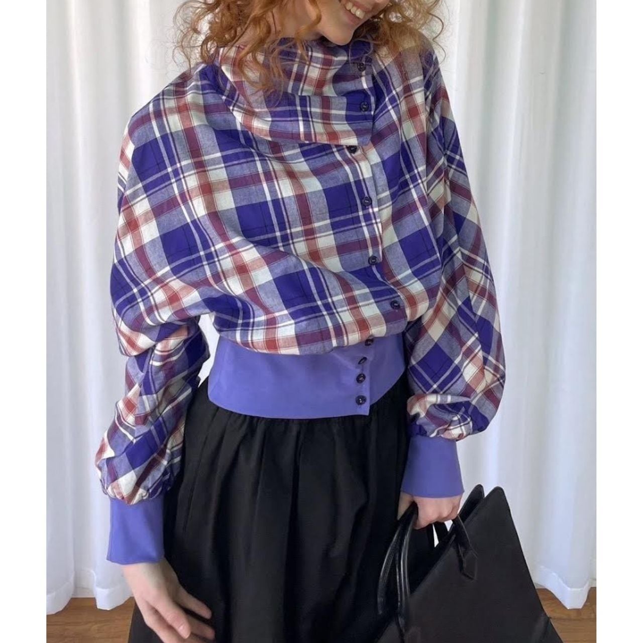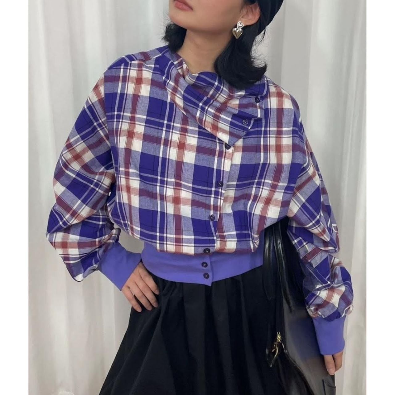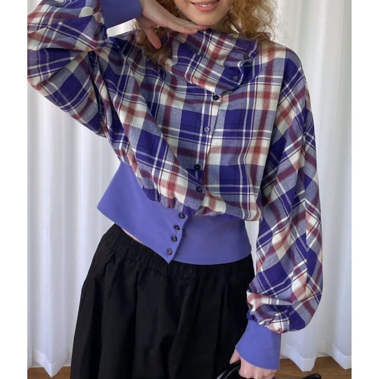 Purple Plaid Layered Crop Shirt A0234