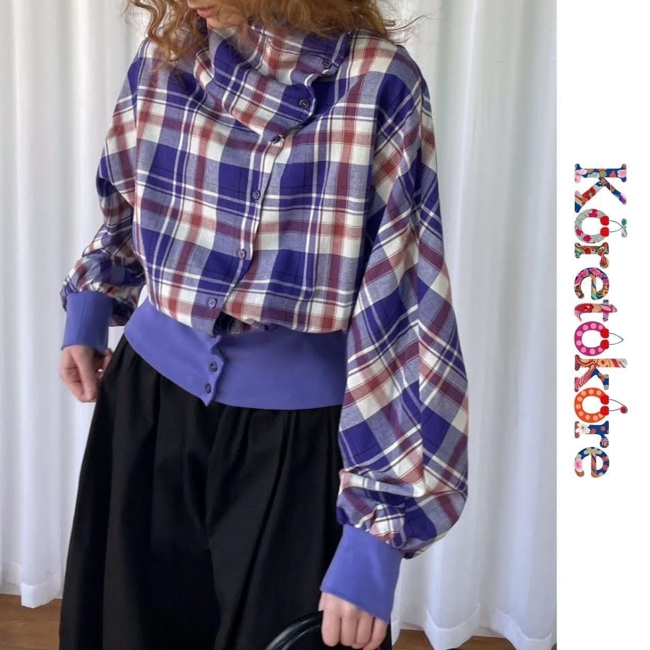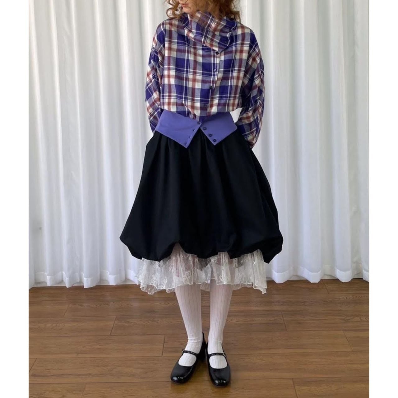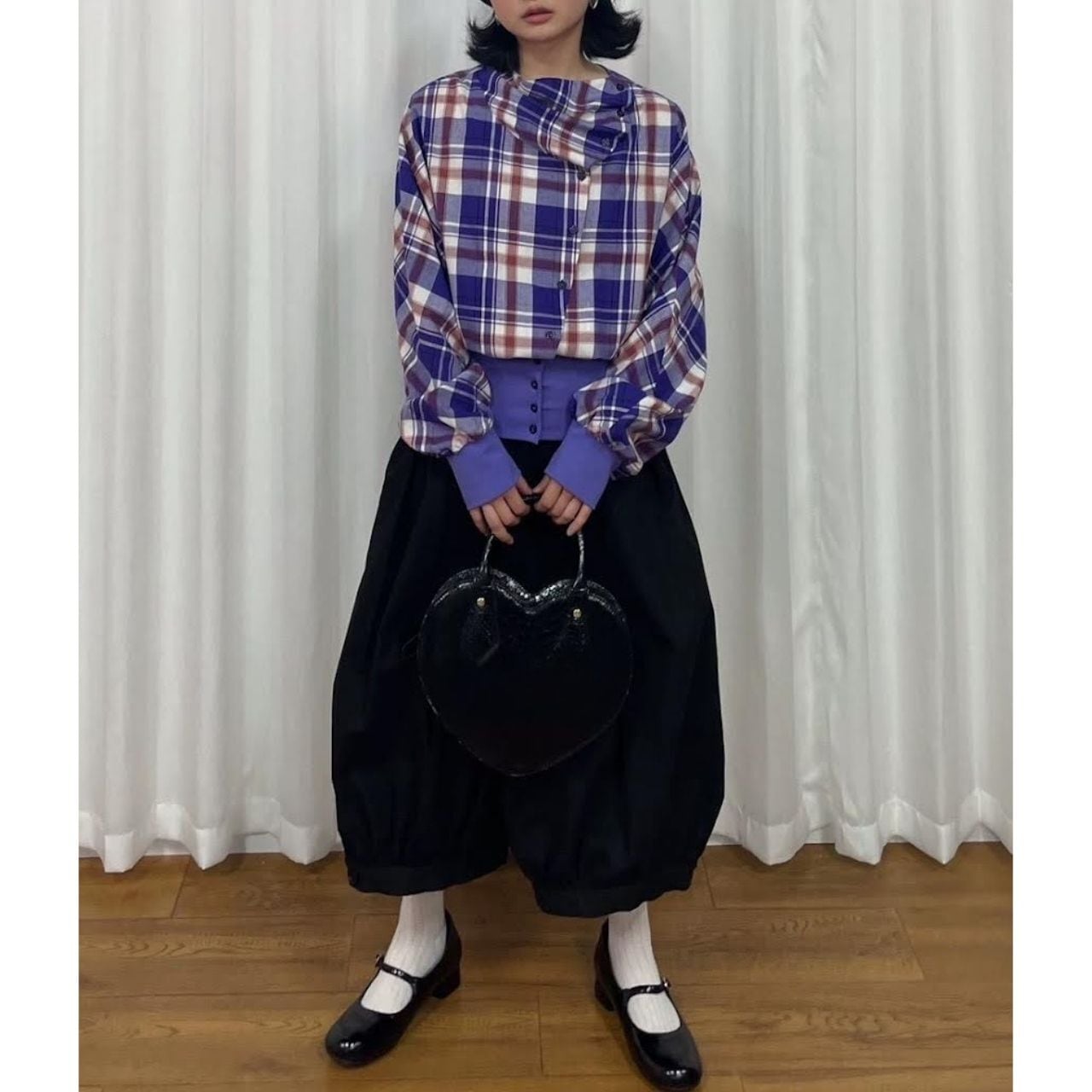 Purple Plaid Layered Crop Shirt A0234