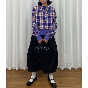 レイヤード風デザインのクロップドシャツ。