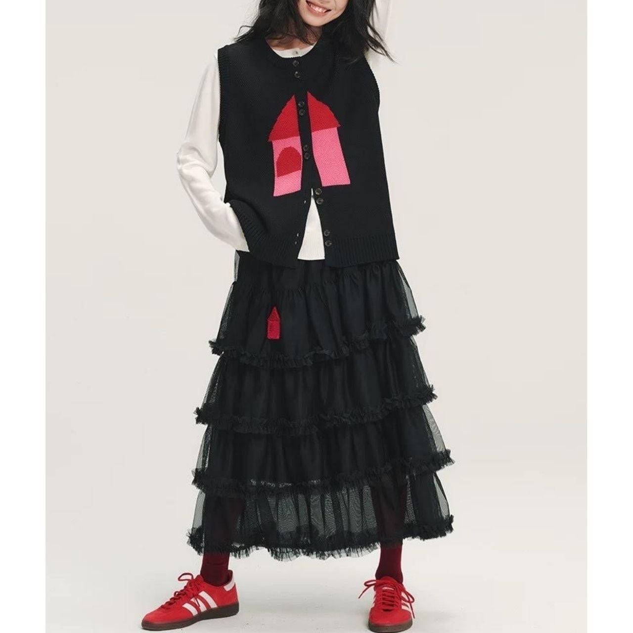Black Tulle Skirt with House A1118