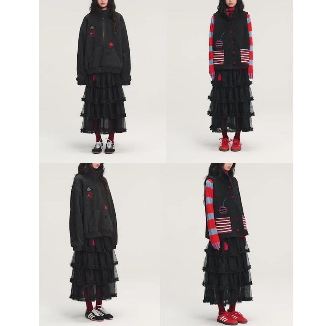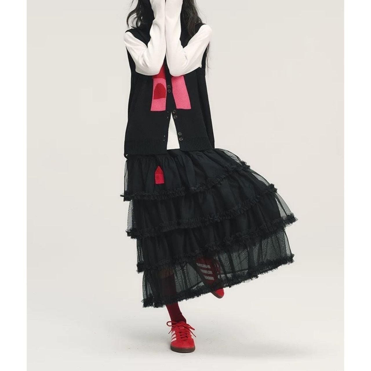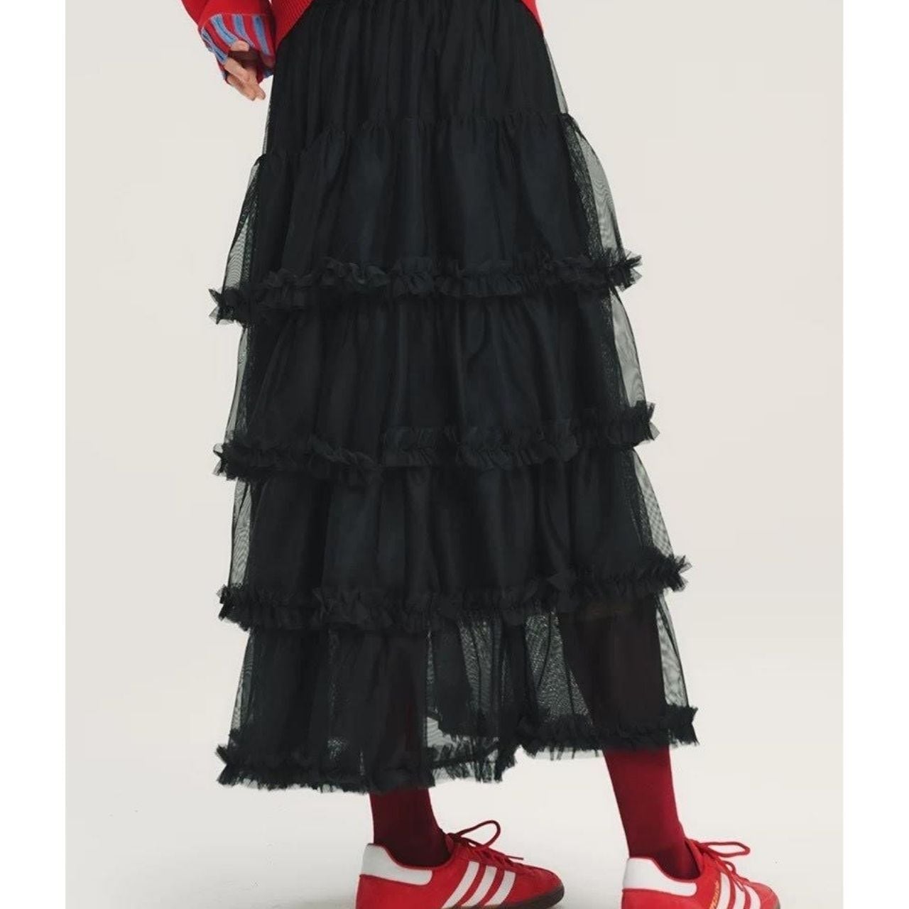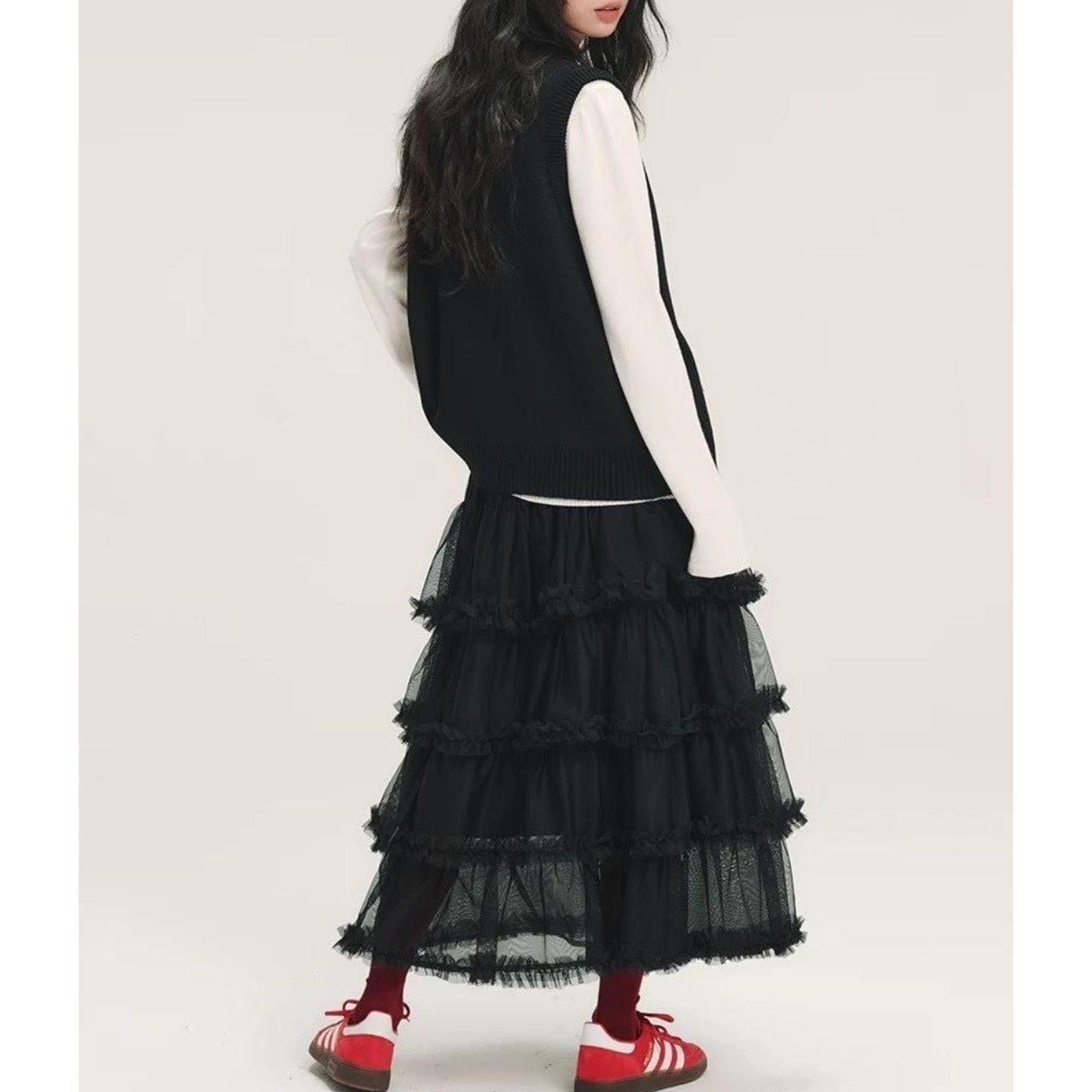 立体感のあるブラックチュールスカート。