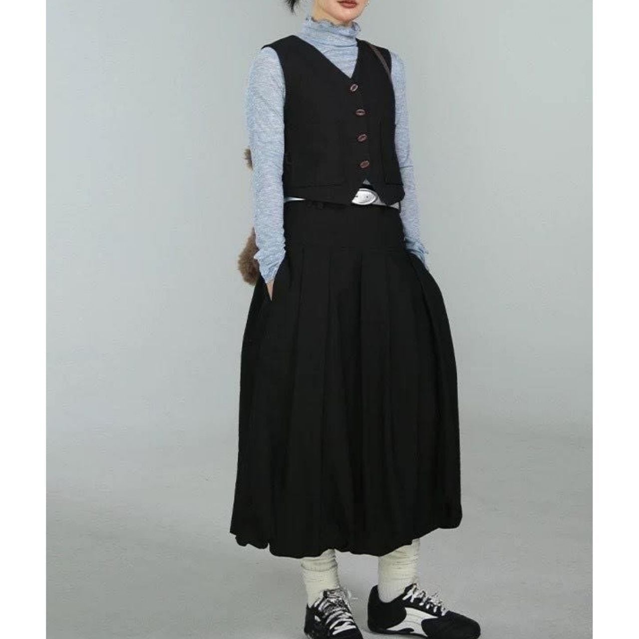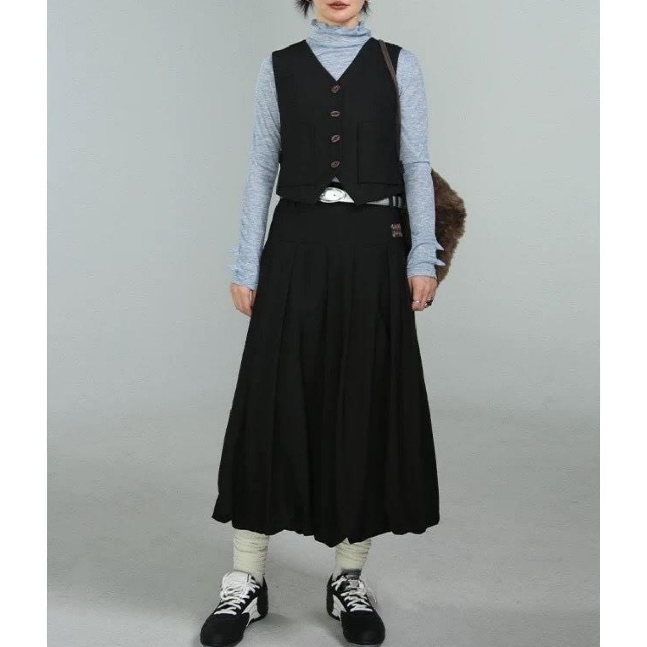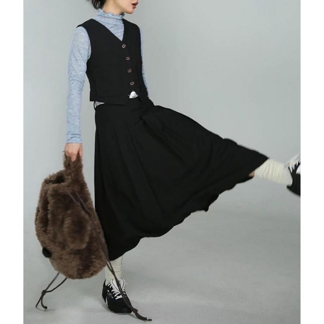 モードにもカジュアルにも振れるブラックスカート。