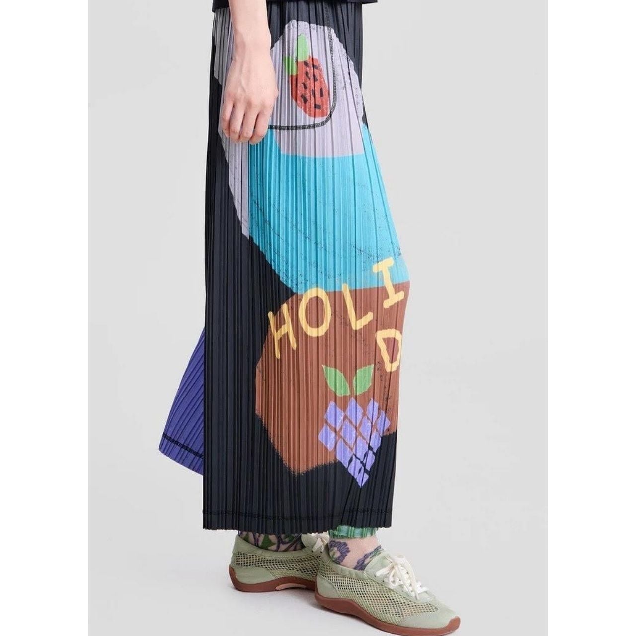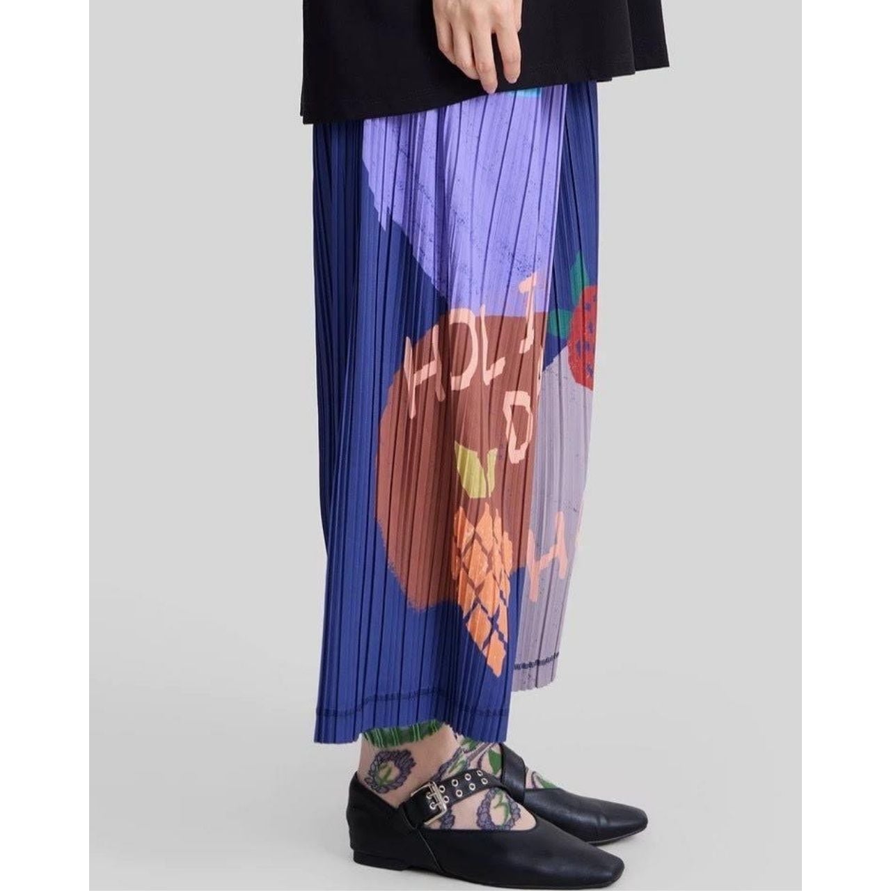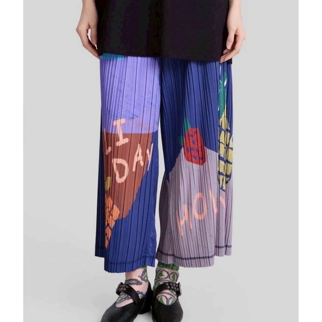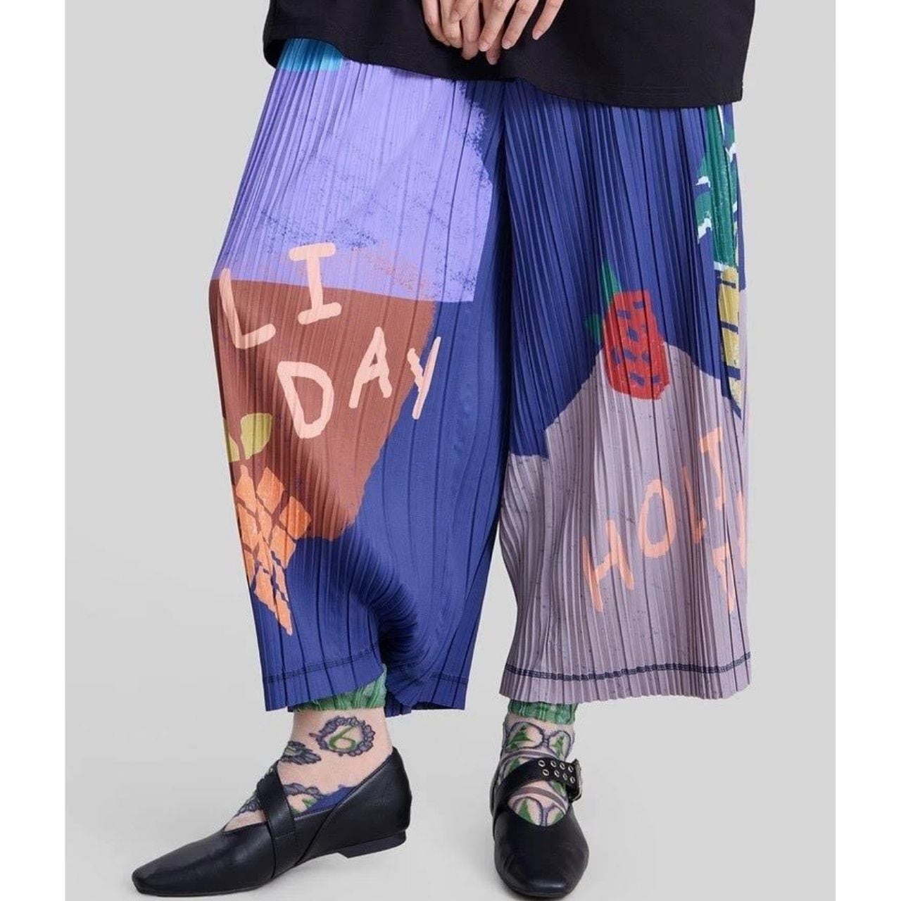 リゾートムードたっぷりのプリーツワイドパンツ。
