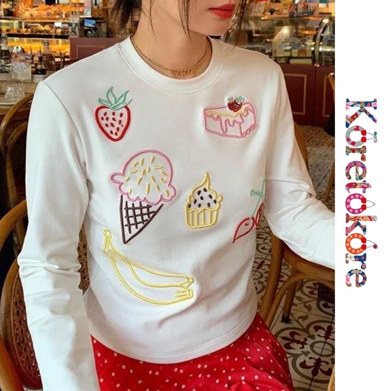 スイーツモチーフ刺繍。