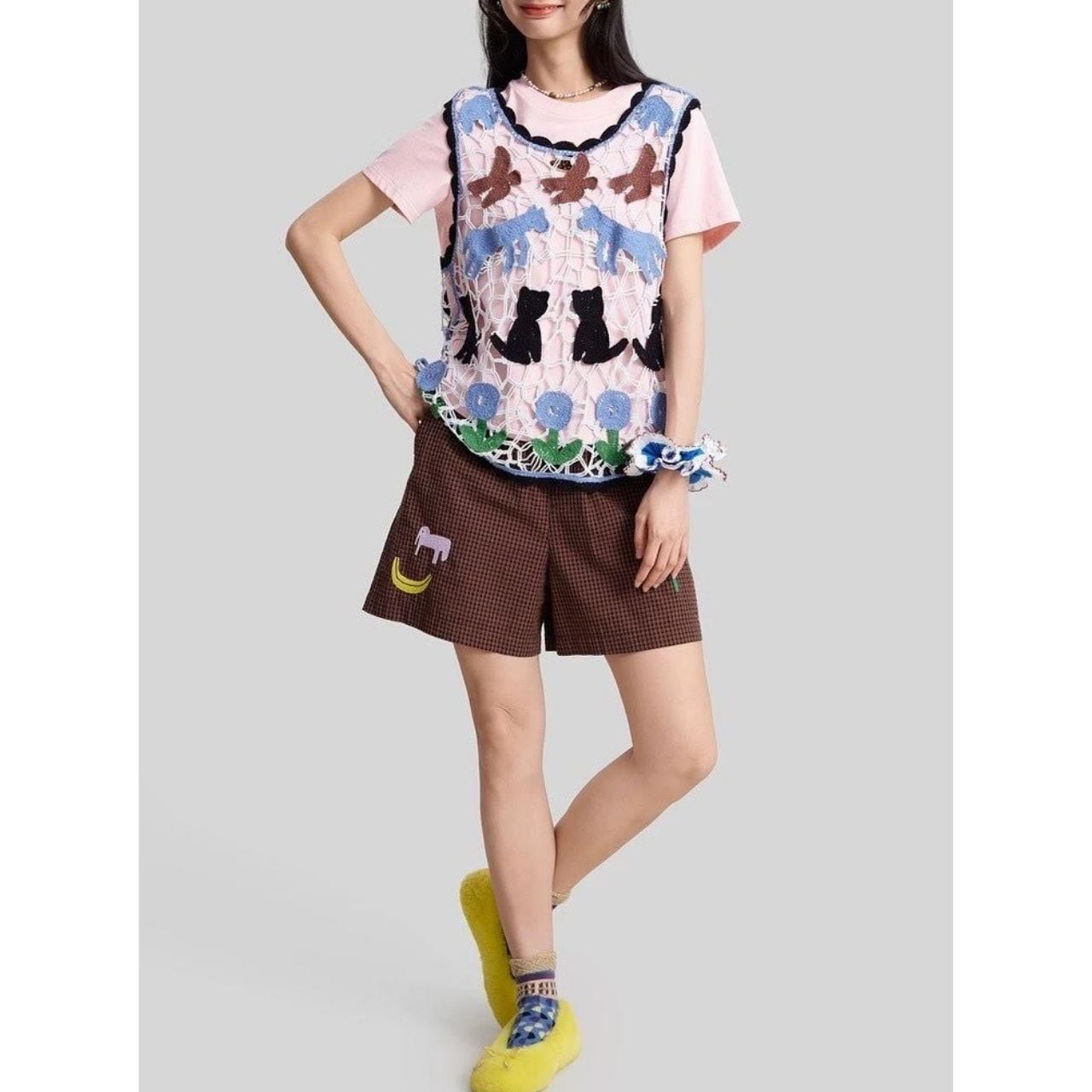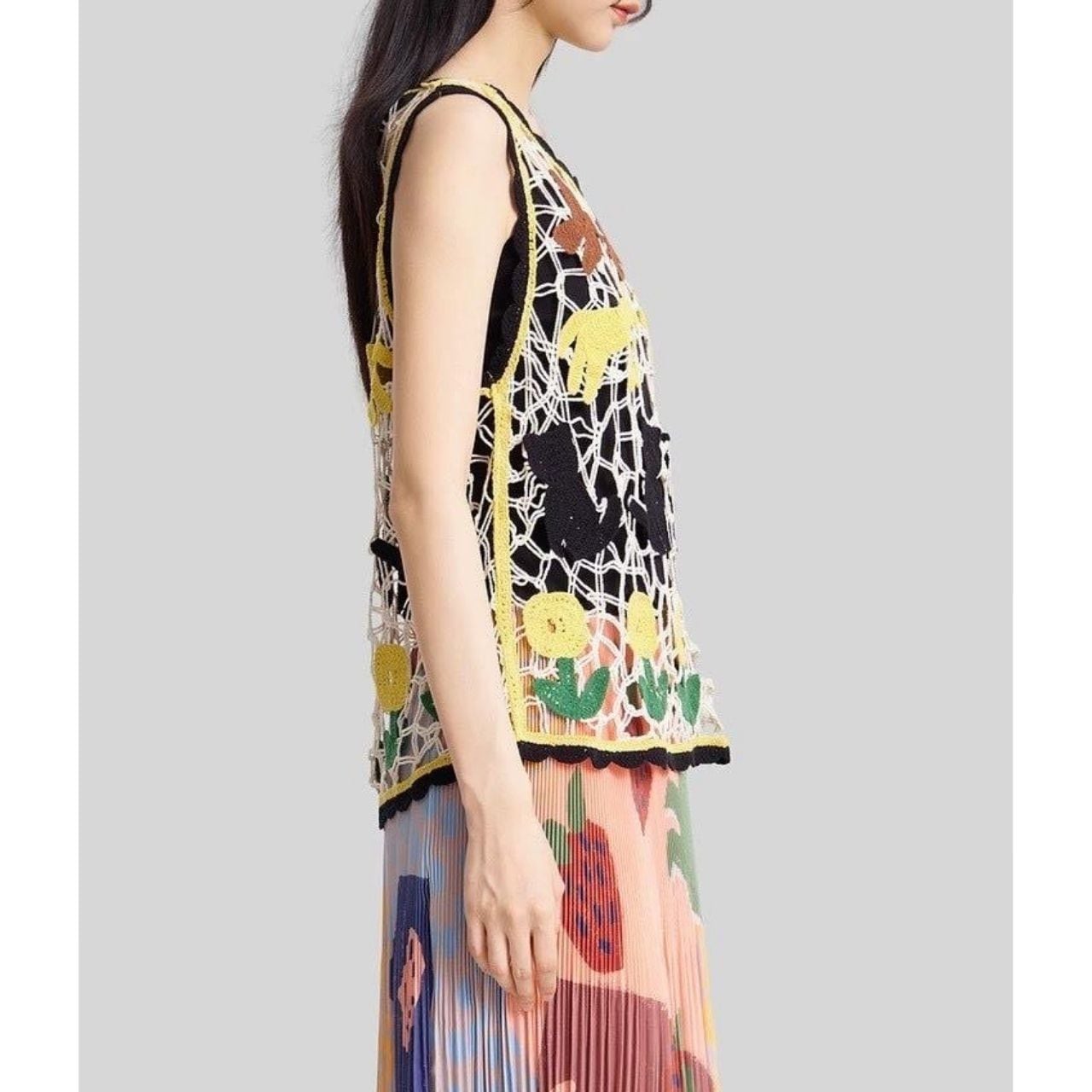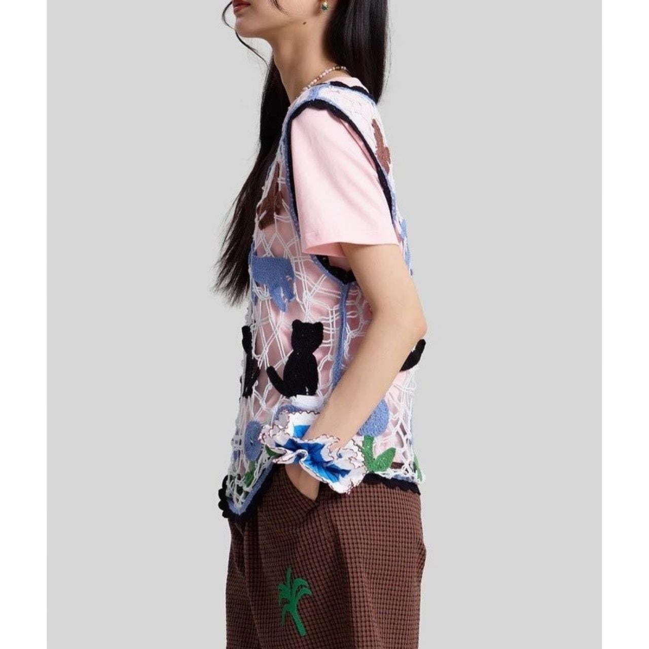 遊び心たっぷりのクロシェメッシュベスト。