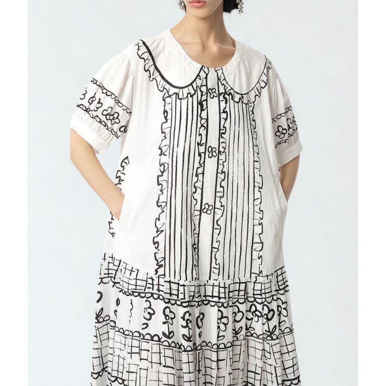 アート感たっぷりのコットンワンピース。